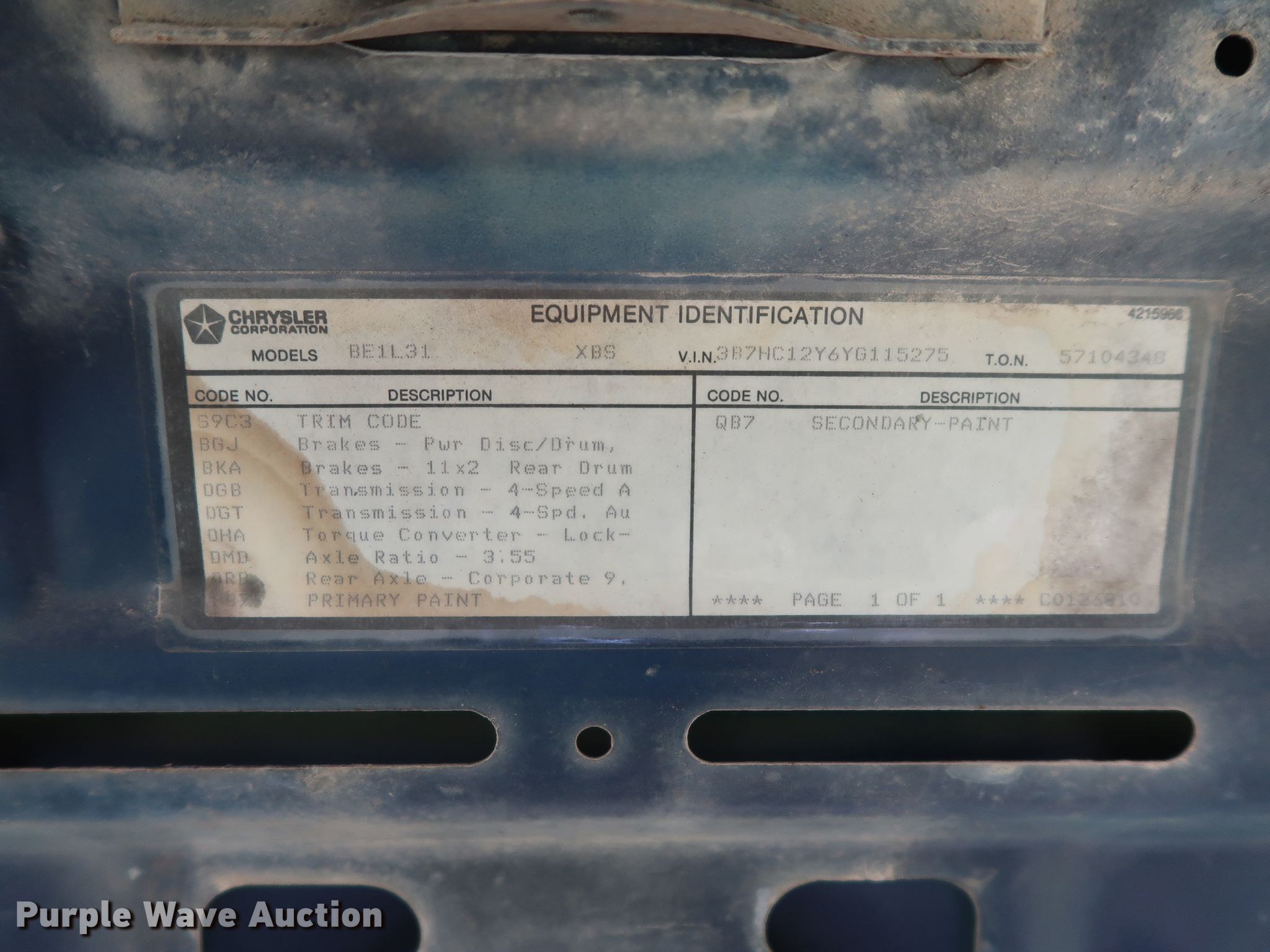 Purple Wave is selling a used 1/2 Ton Pickup or Van in Oklahoma. This item is a 2000 Dodge Ram 1500 Club Cab pickup truck with the following: 111,299 miles on odometer