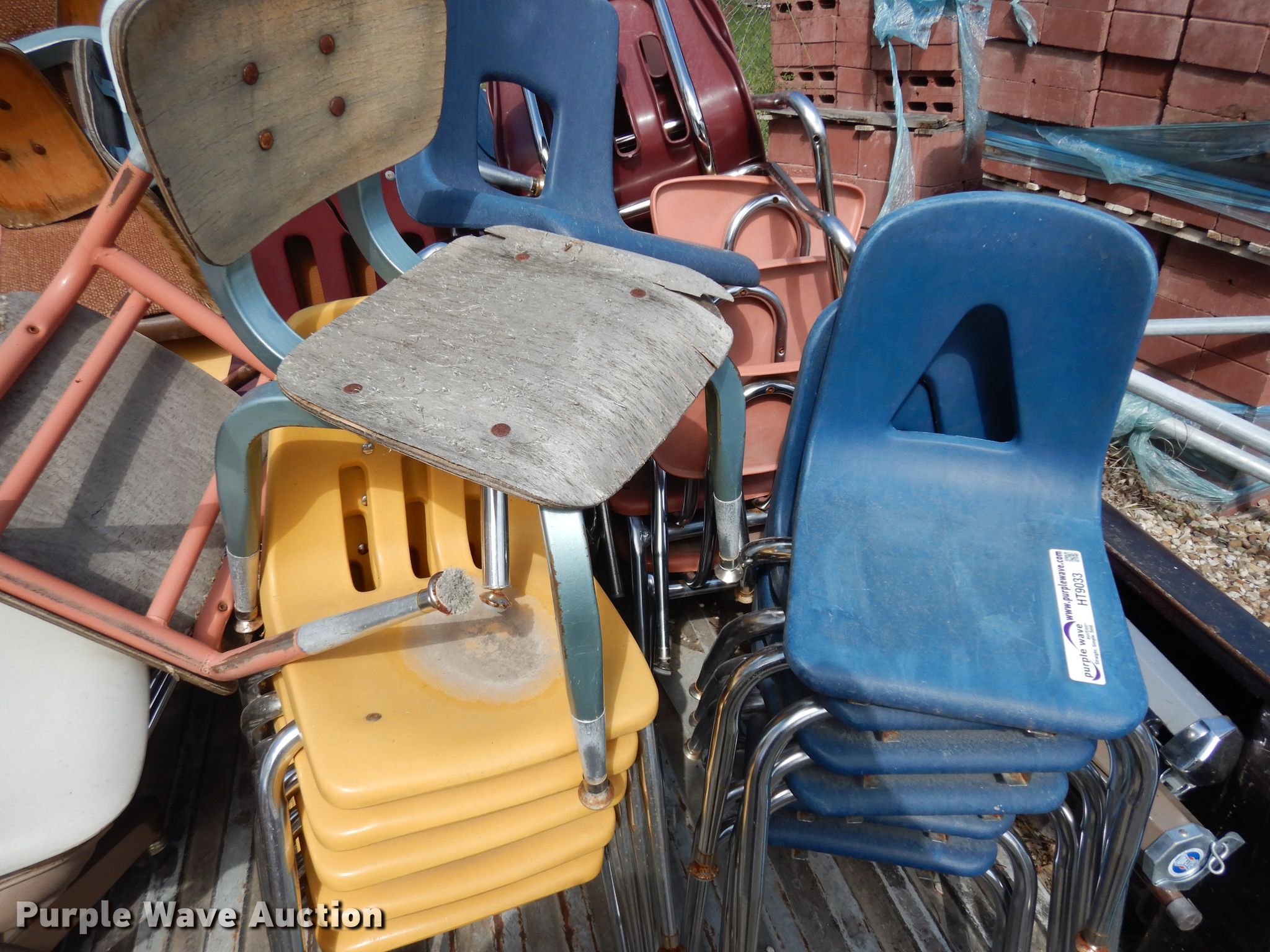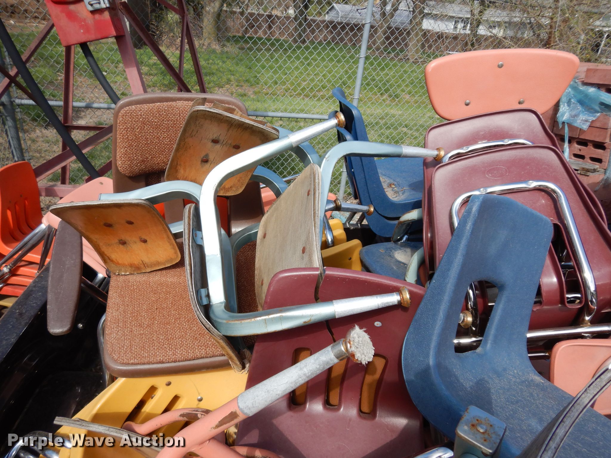 Purple Wave is selling a used Furniture in Kansas. This item is a (100) chairs with the following: Stored outside