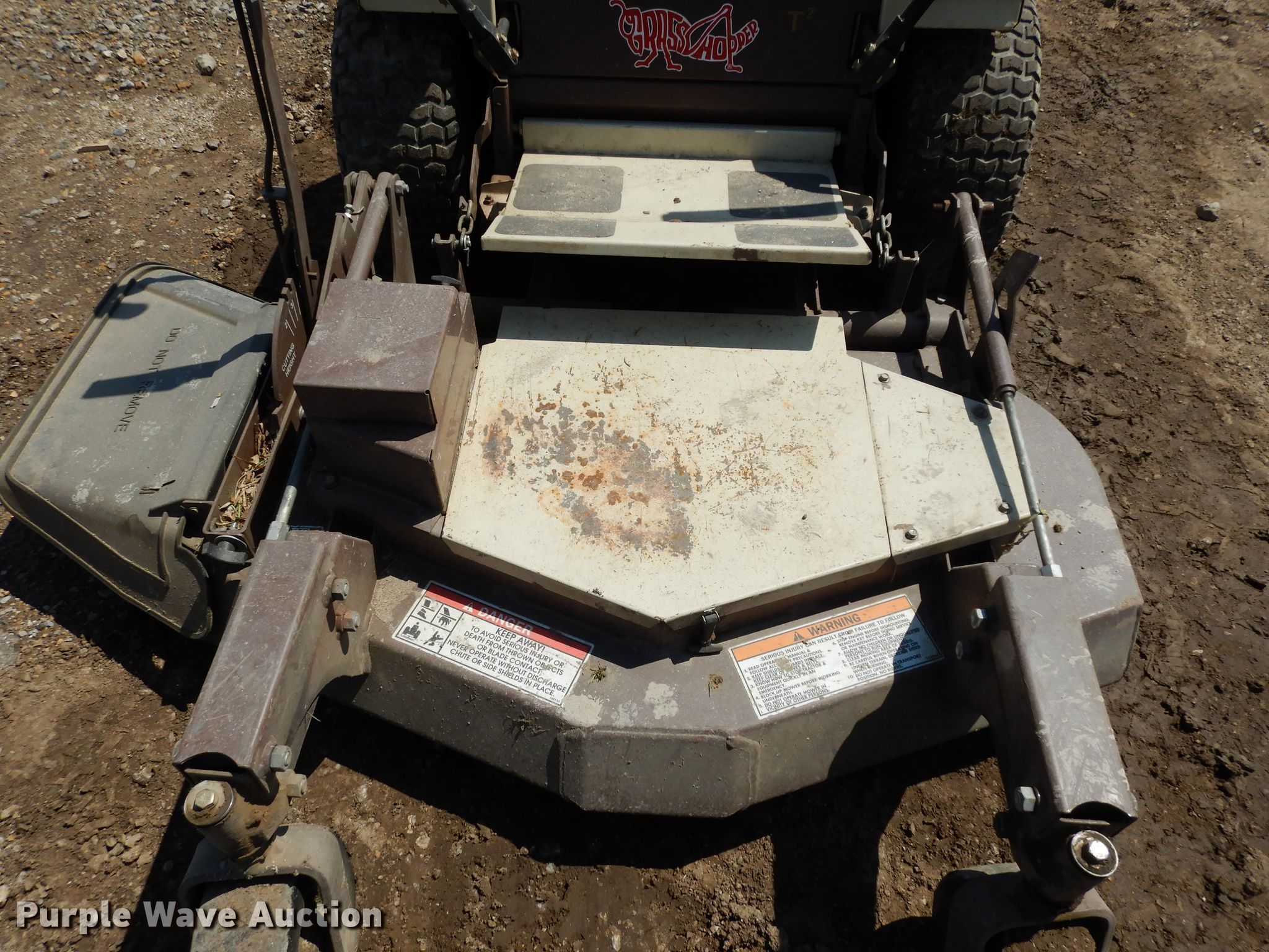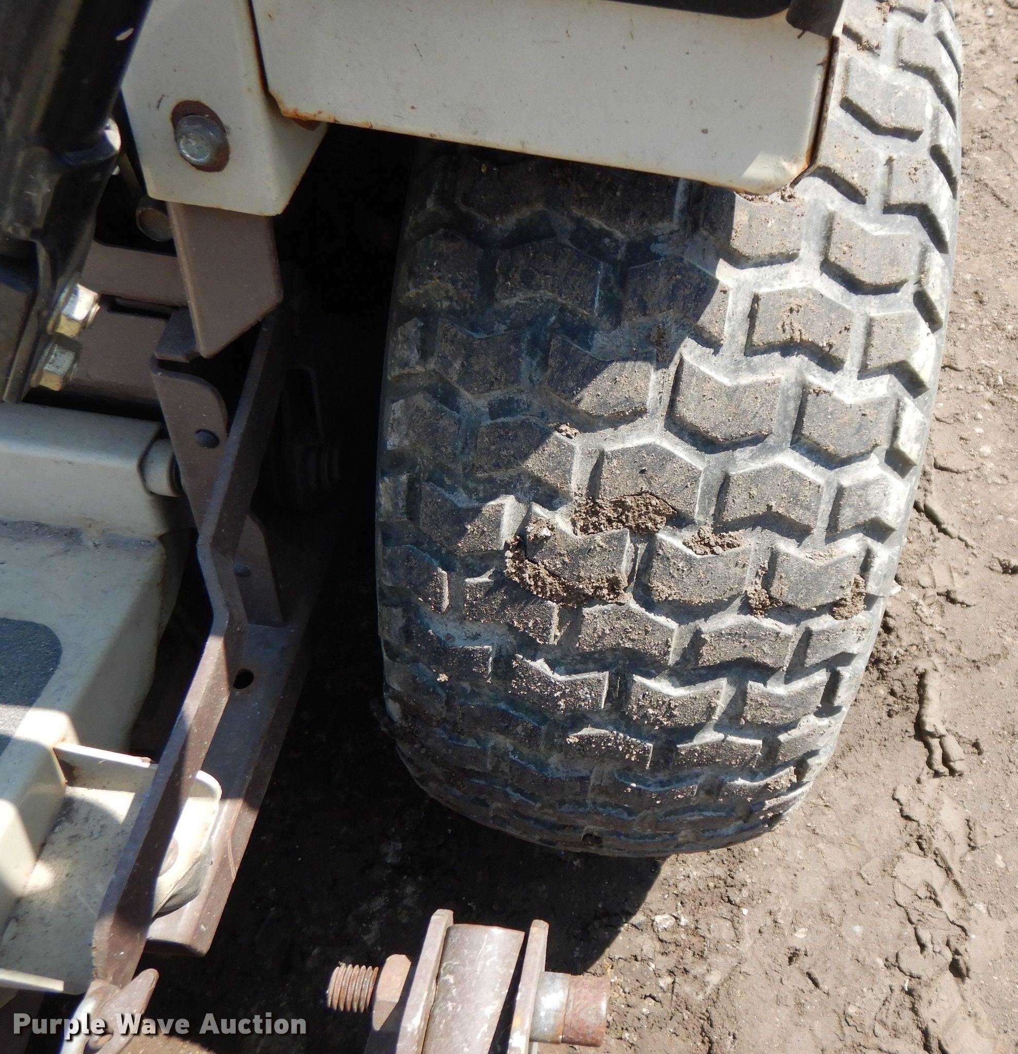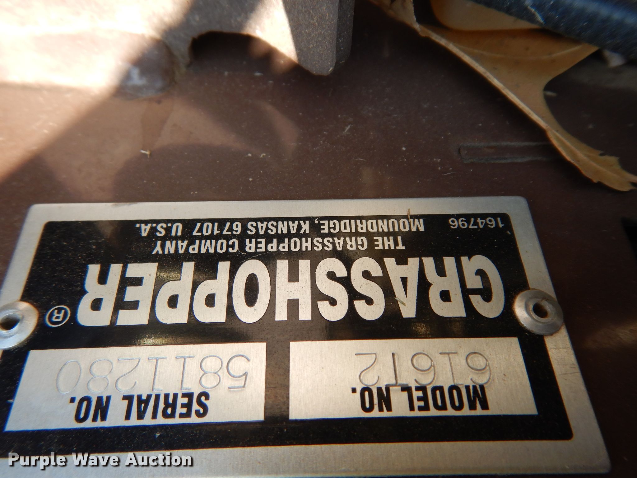 Purple Wave is selling a used Lawn Mower in Kansas. This item is a Grasshopper 616T2 lawn mower with the following: 42" cutting width, Briggs & Stratton two cylinder gas engine, 16 HP, Additional 48" blade, Model 480, Serial 5571153, Bagger, Kenda 20 x 8.00-8 front tires, Kenda 13 x 6.50-6 rear tires, Hole in bagger, Serial 5811280