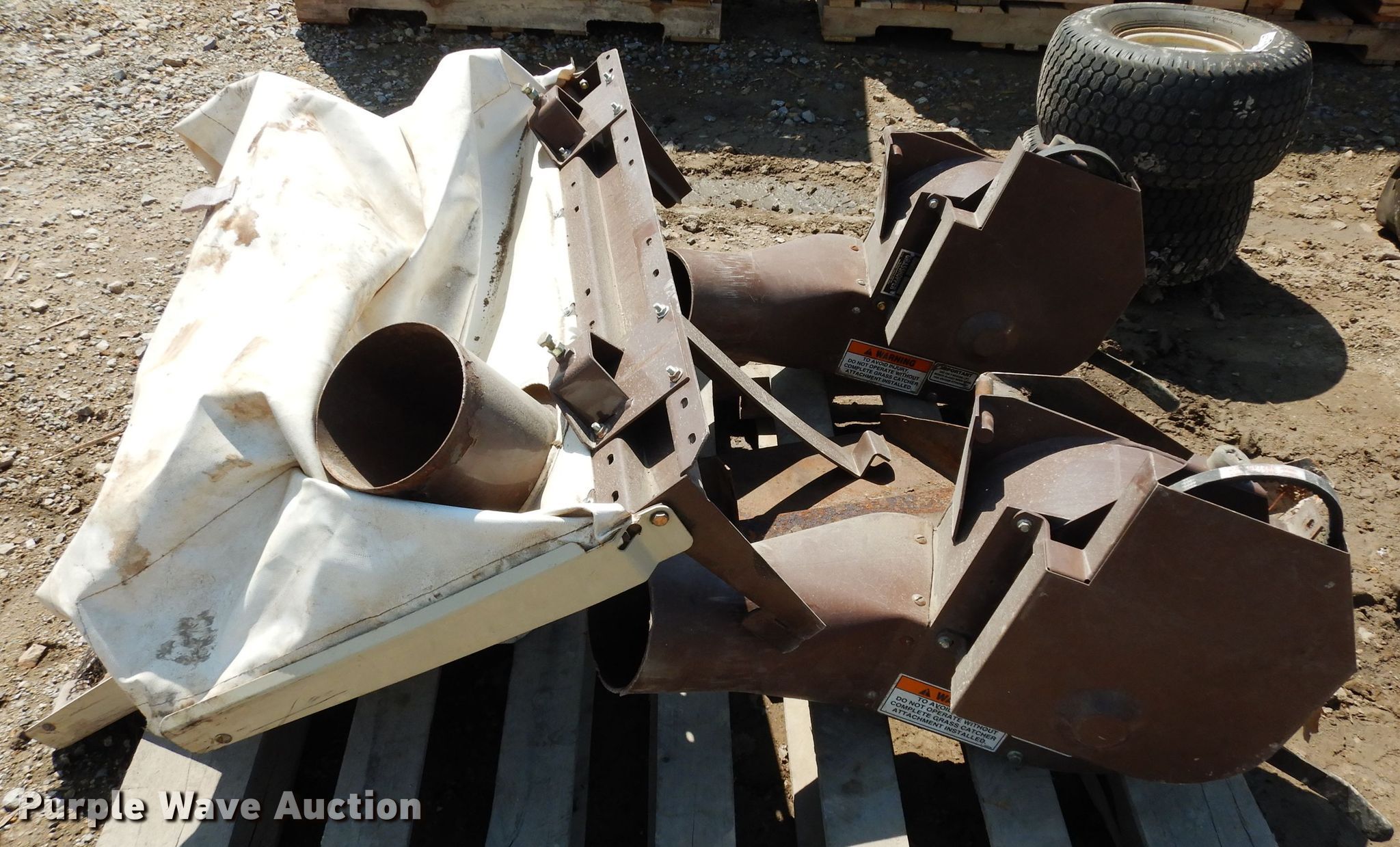 Grasshopper 616T2 lawn mower. 42" cutting width, Briggs & Stratton two cylinder gas engine 16 HP, Additional 48" blade Model 480, Serial 5571153, Bagger, Kenda 20 x 8.00-8 front tires, Kenda 13 x 6.50-6 rear tires, Hole in bagger, Serial 5811280. Holton, KS 66436