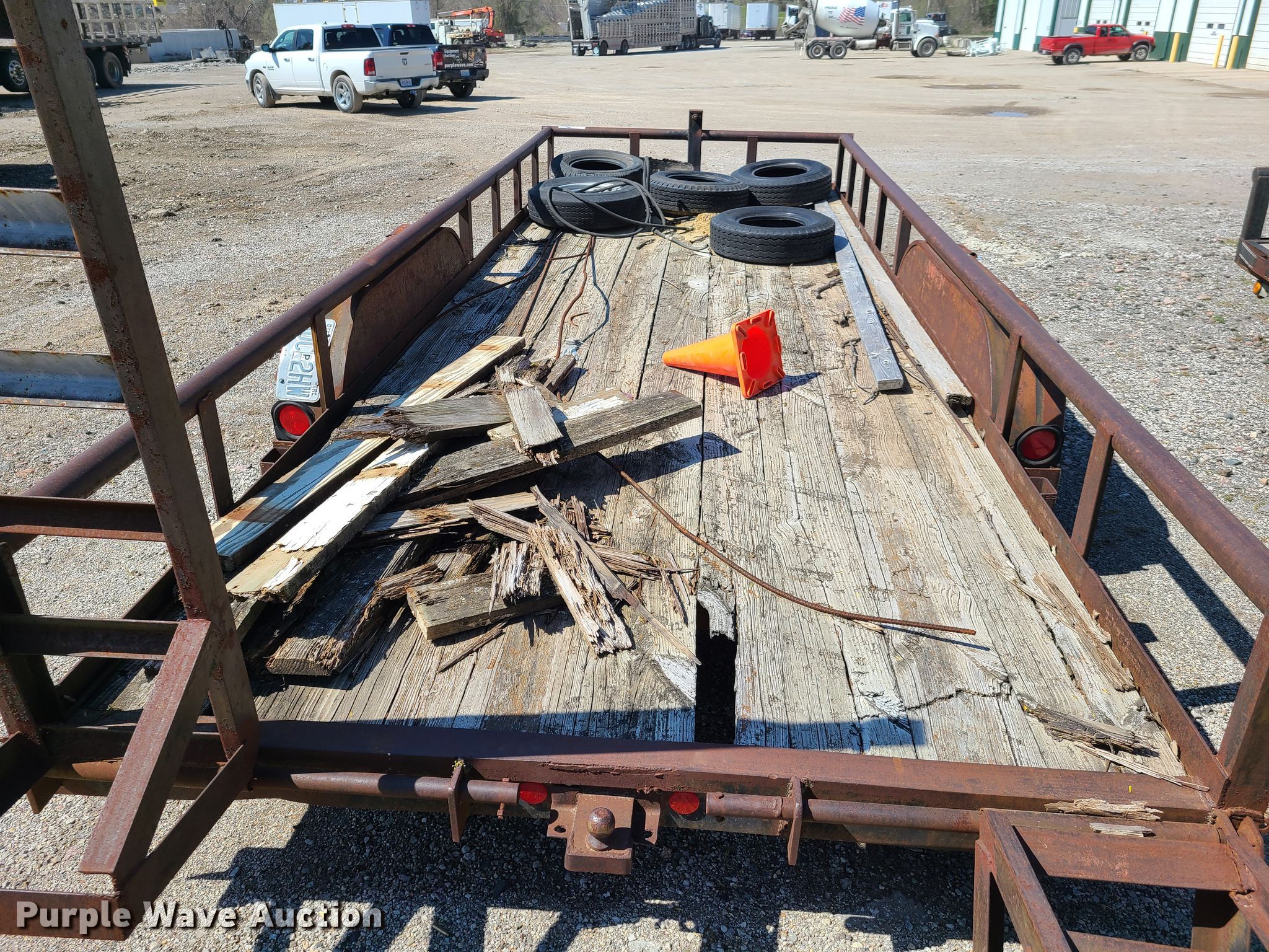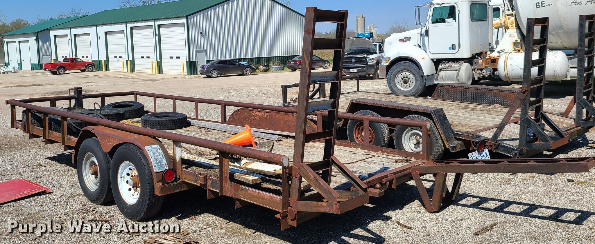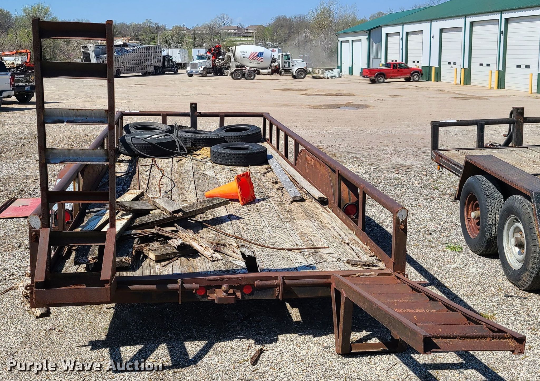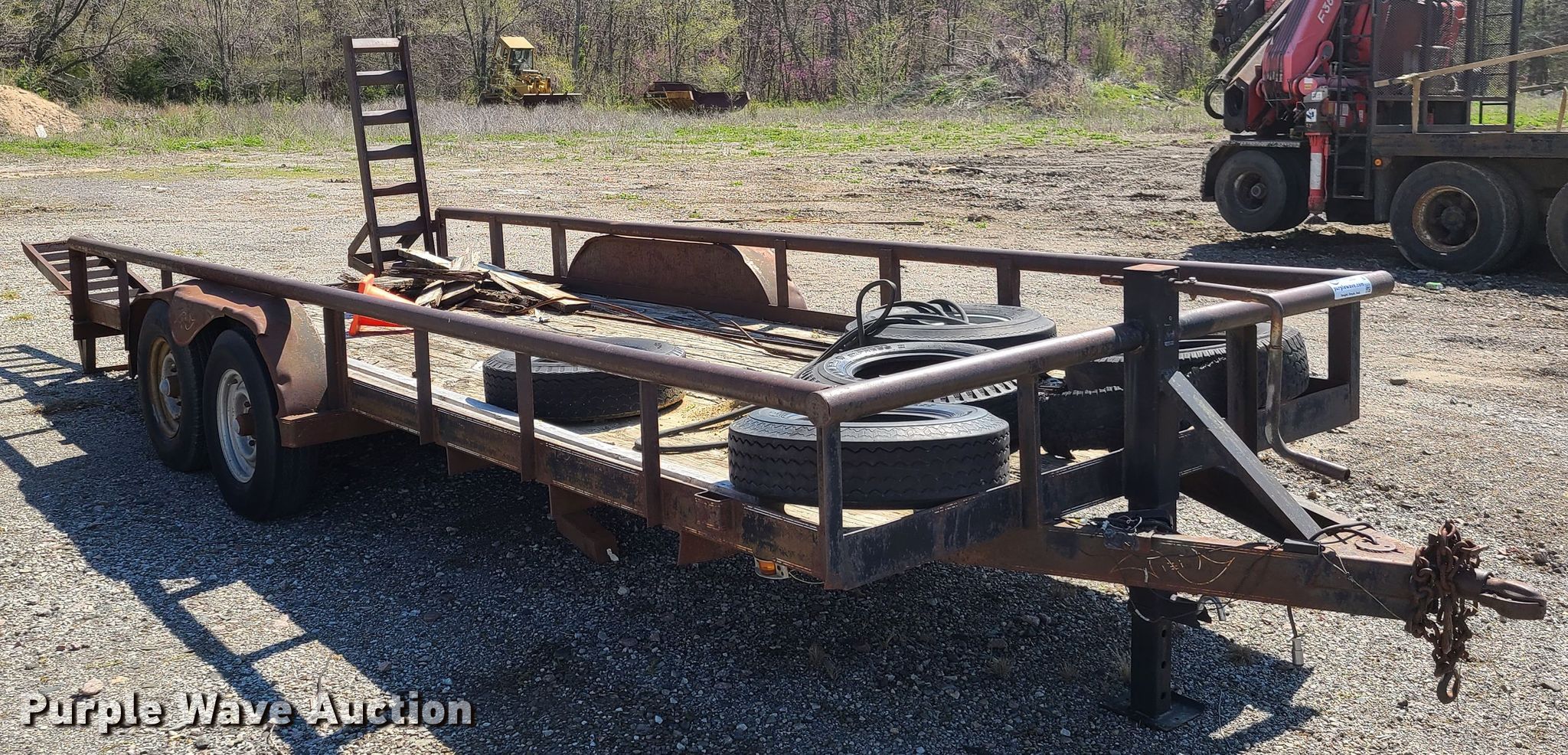 Purple Wave is selling a used Car or Utility Trailer in Missouri. This item is a 1993 Texas Bragg utility trailer with the following: 23'L x 102"W overall, 20'L x 82"W deck, 5'L ramps, Wood deck, Single leg landing gear, Spring suspension, Electric brakes, Tandem axle, 235/85R16 tires, GVWR 12,000 lbs, GAWR 6,000 lbs, Contents not included, Left rear tire and wheel not included, will be replaced with matching wheel