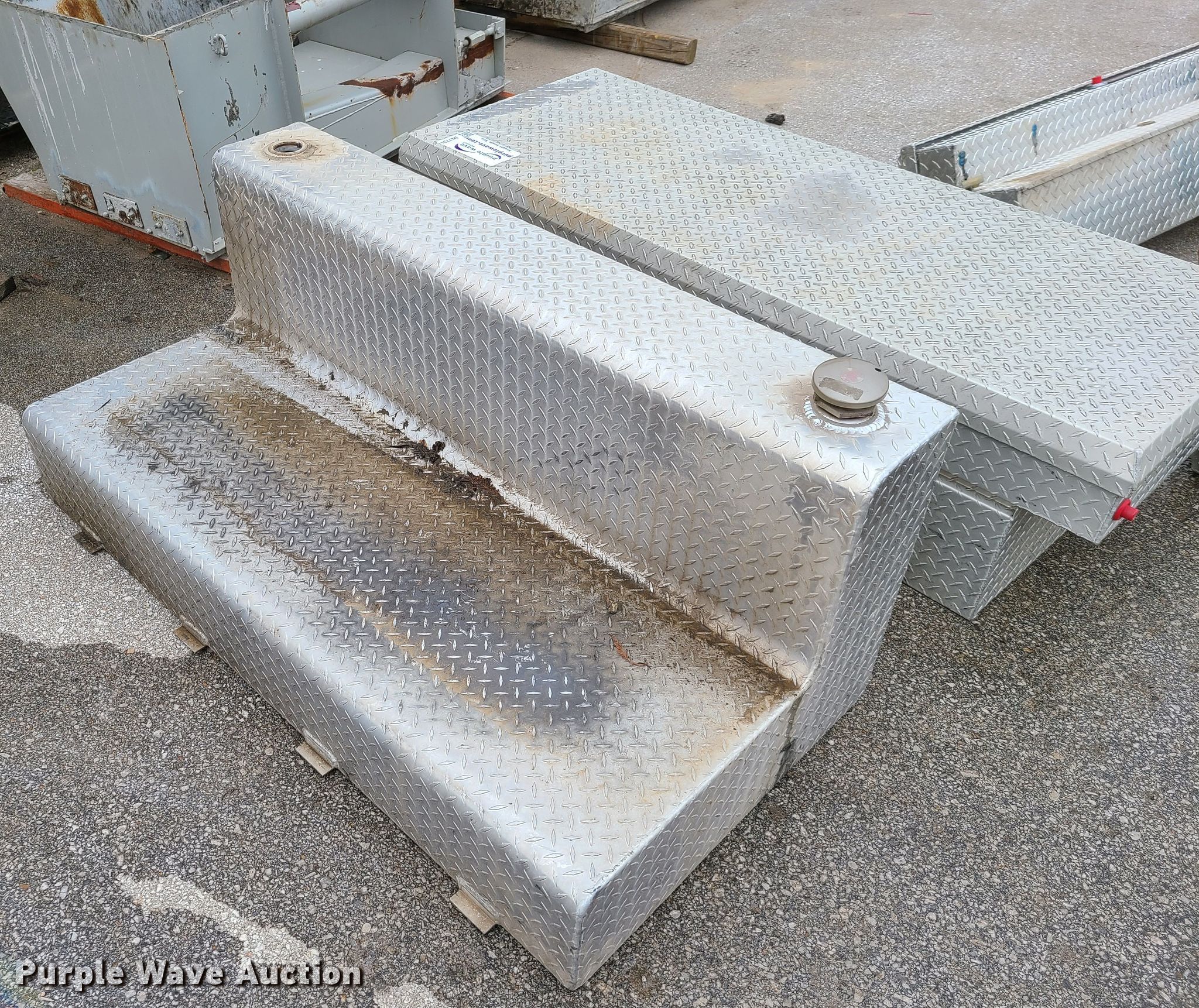 Purple Wave is selling a used Automotive Parts or Acces. in Missouri. This item is a Weatherguard aluminum toolboxes and auxiliary fuel tank with the following: 95 gallon auxiliary fuel tank, Keys included