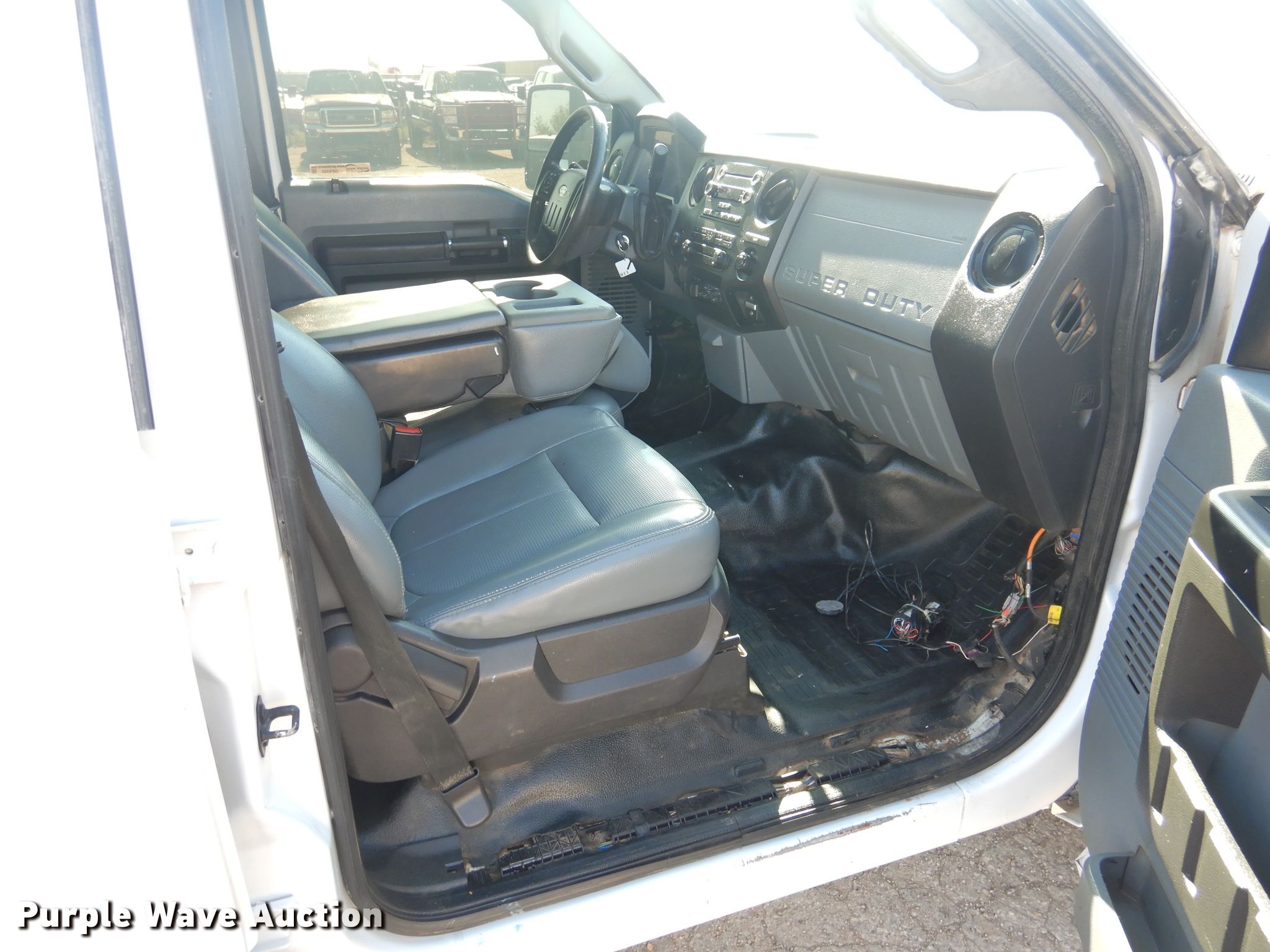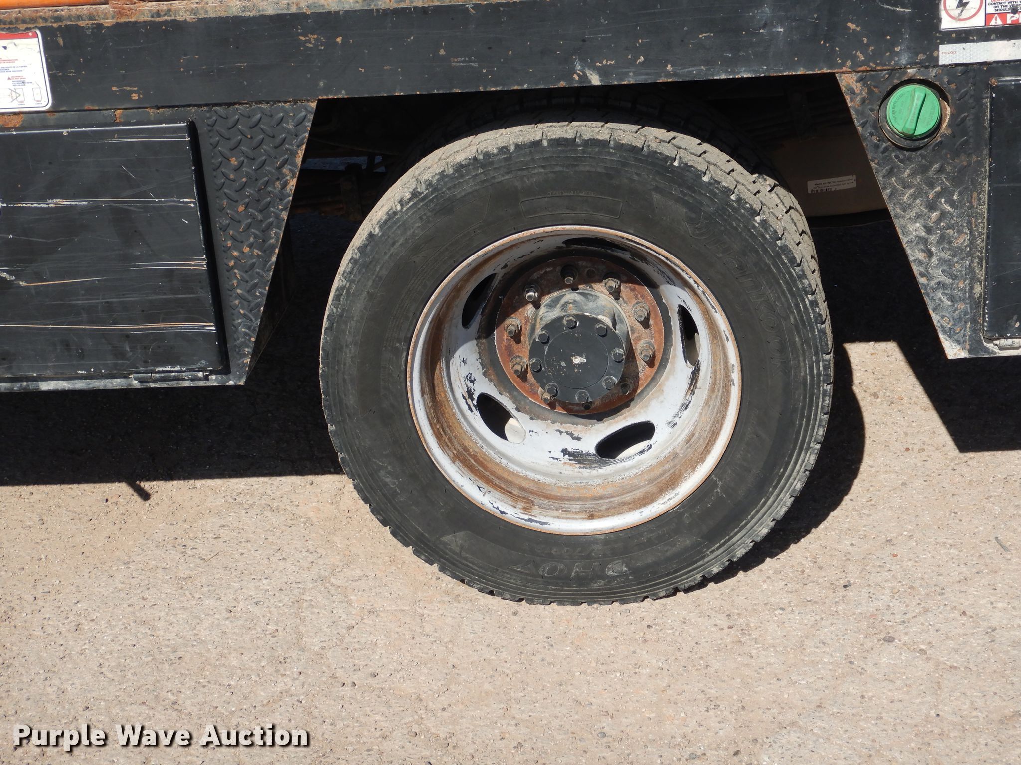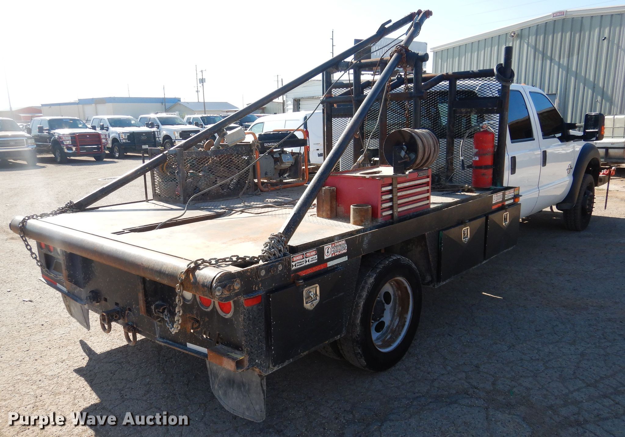 Purple Wave is selling a used Oilfield Truck in Texas. This item is a 2015 Ford F550 Super Duty winch truck with the following: 179,427 miles on odometer, 6.7L V8 OHV 16V diesel engine, Automatic transmission, Single axle, Four wheel drive, AC and heat, Power windows and locks, Flatbed, 11.5'L, 13'L gin poles, Spring suspension, Hydraulic brakes, 225/70R19.5 tires, GVWR 19,500 lbs, FAWR 7,000 lbs, RAWR 14,706 lbs