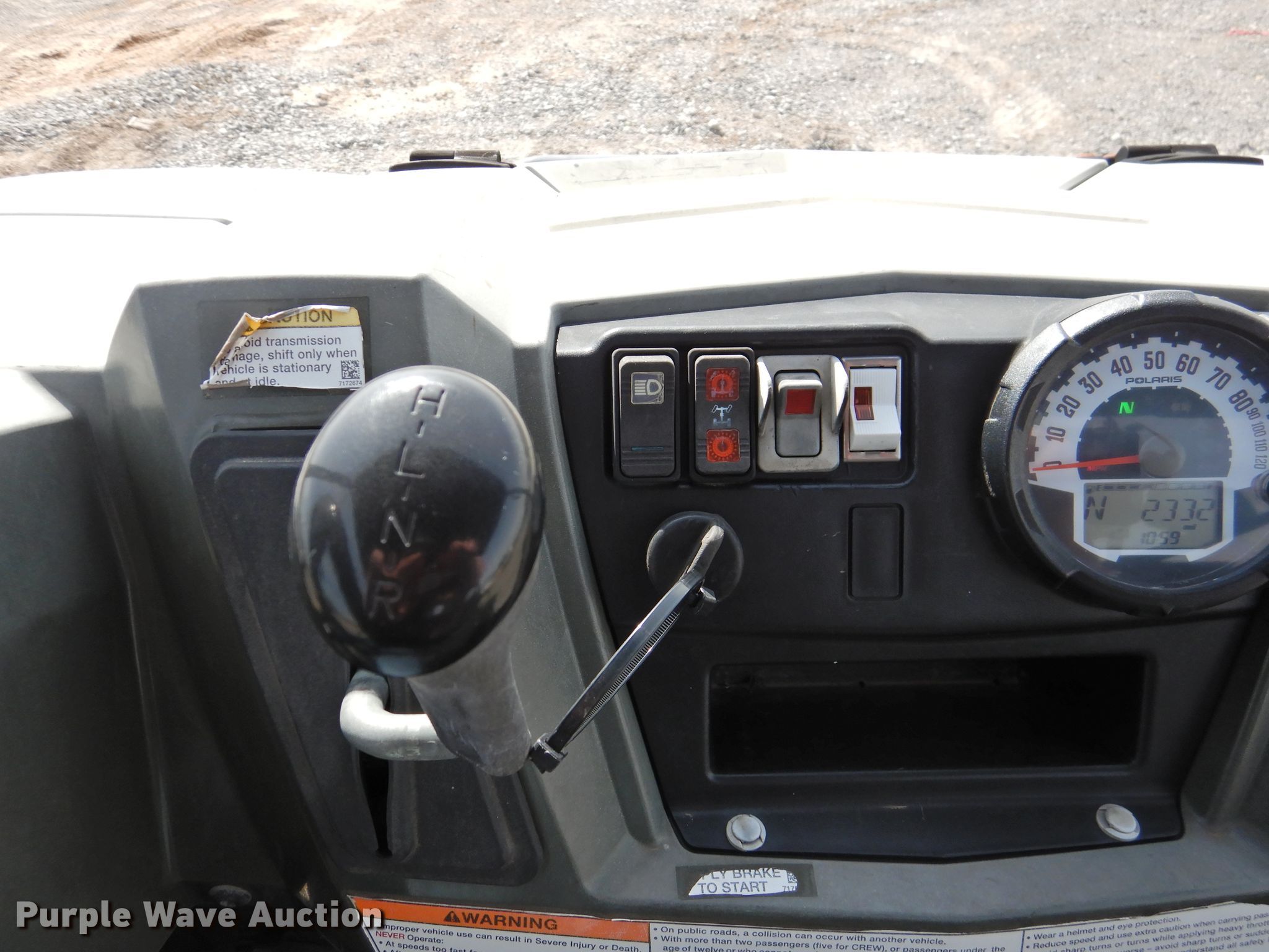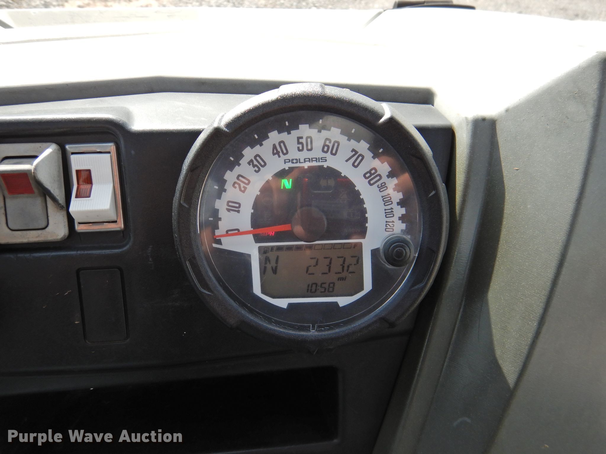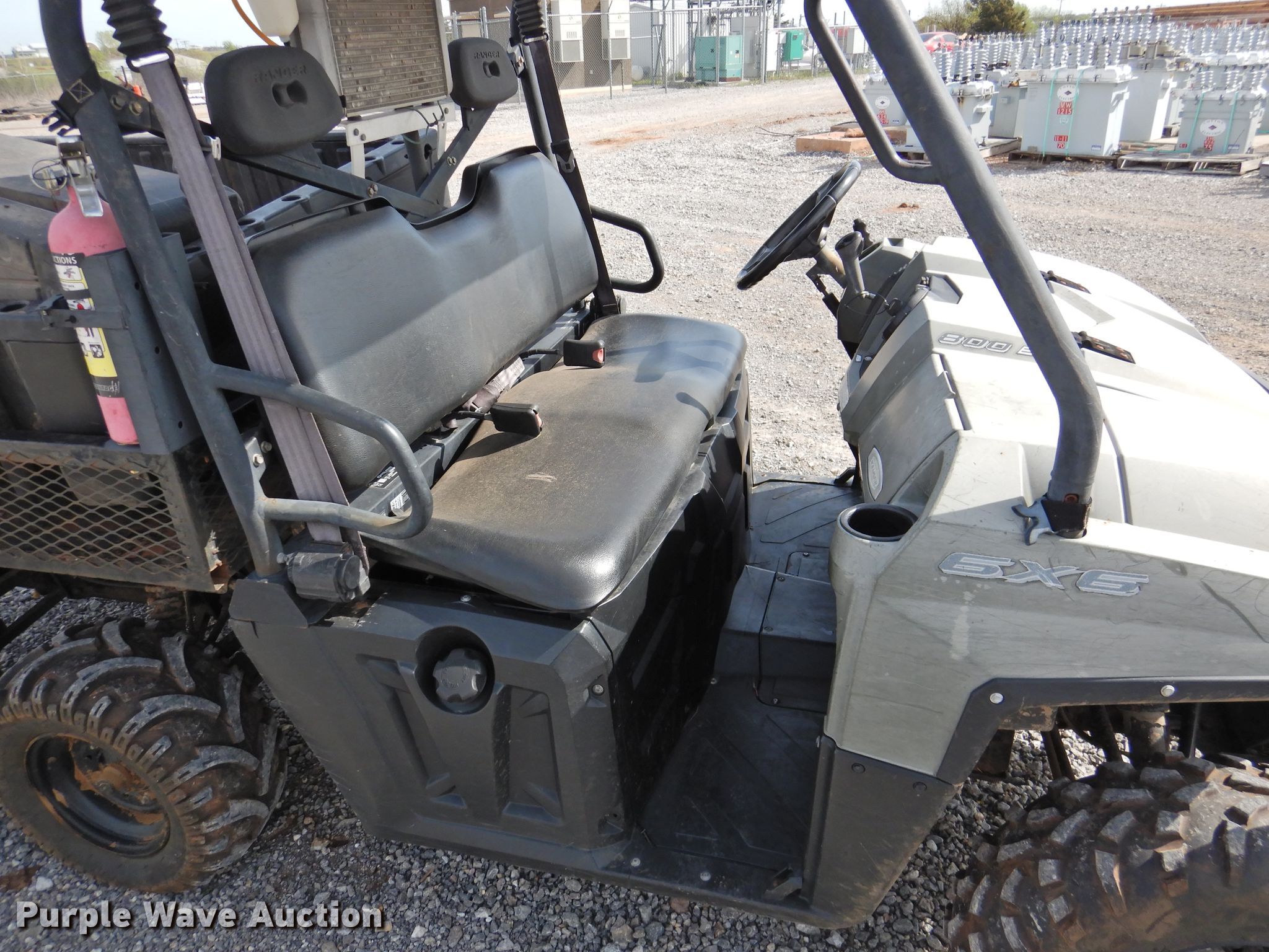 Purple Wave is selling a used Utility Vehicle in Oklahoma. This item is a 2011 Polaris Ranger utility vehicle with the following: 2,332 miles on odometer, 550 hours on meter, Polaris 800cc gas engine, Polaris CVT transmission, Six wheel drive, OROPS canopy, Three passenger capacity, Electric start, Grill guard, Winch, 54" x 42.5" x 11.5" dump bed, Manual dump, Receiver hitch, 25x10.00-12 front tires, AT25x11-12 rear tires