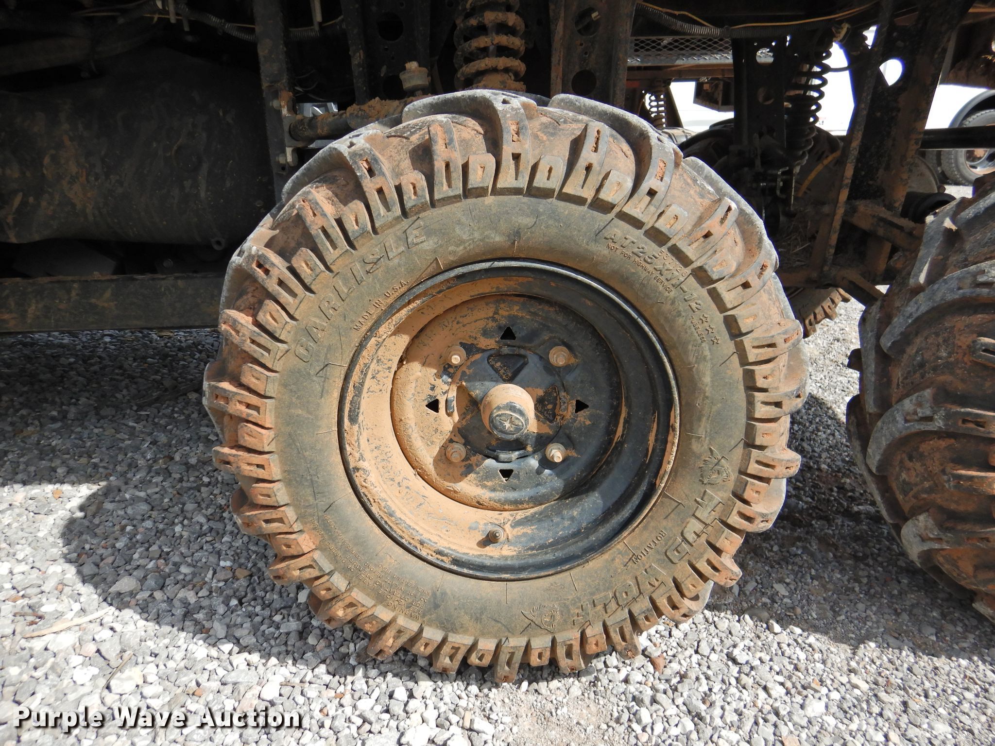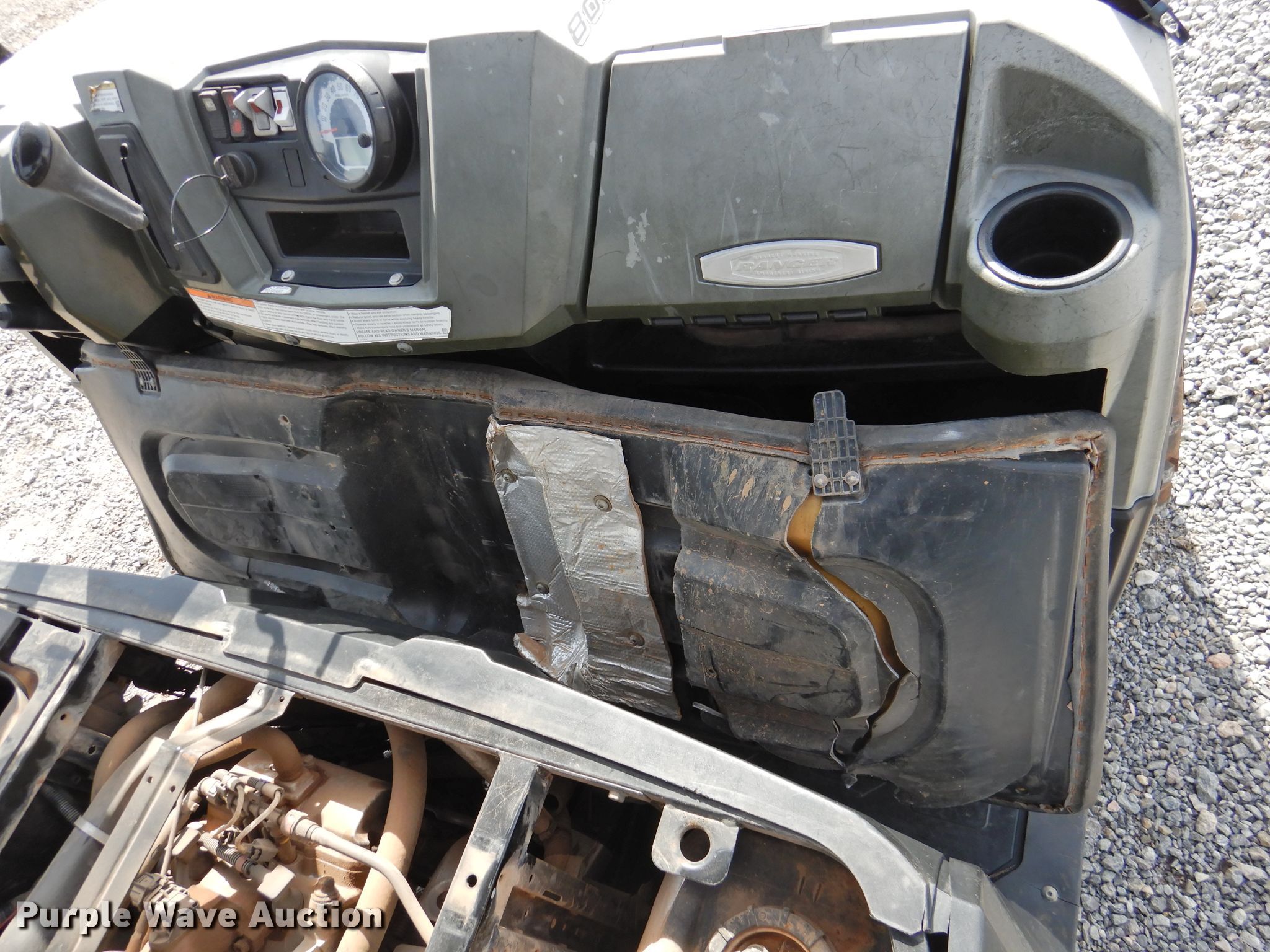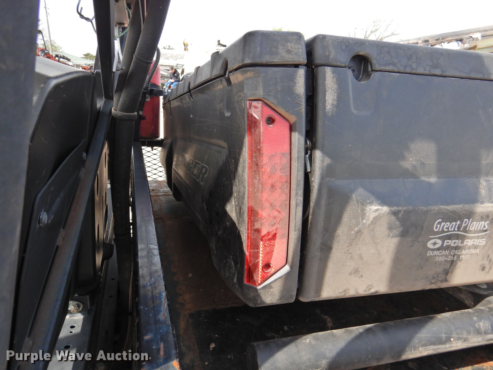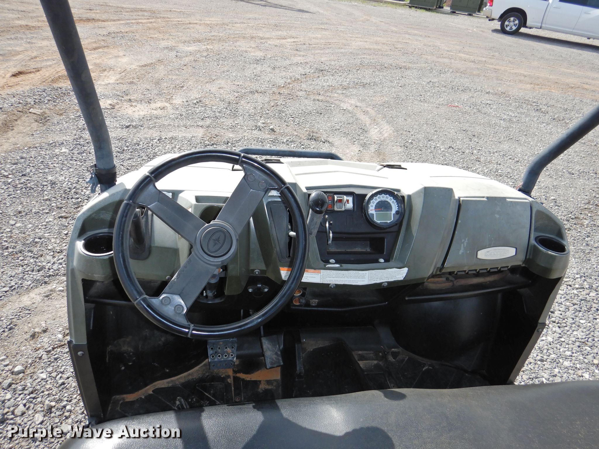 Purple Wave is selling a used Utility Vehicle in Oklahoma. This item is a 2011 Polaris Ranger utility vehicle with the following: 2,332 miles on odometer, 550 hours on meter, Polaris 800cc gas engine, Polaris CVT transmission, Six wheel drive, OROPS canopy, Three passenger capacity, Electric start, Grill guard, Winch, 54" x 42.5" x 11.5" dump bed, Manual dump, Receiver hitch, 25x10.00-12 front tires, AT25x11-12 rear tires