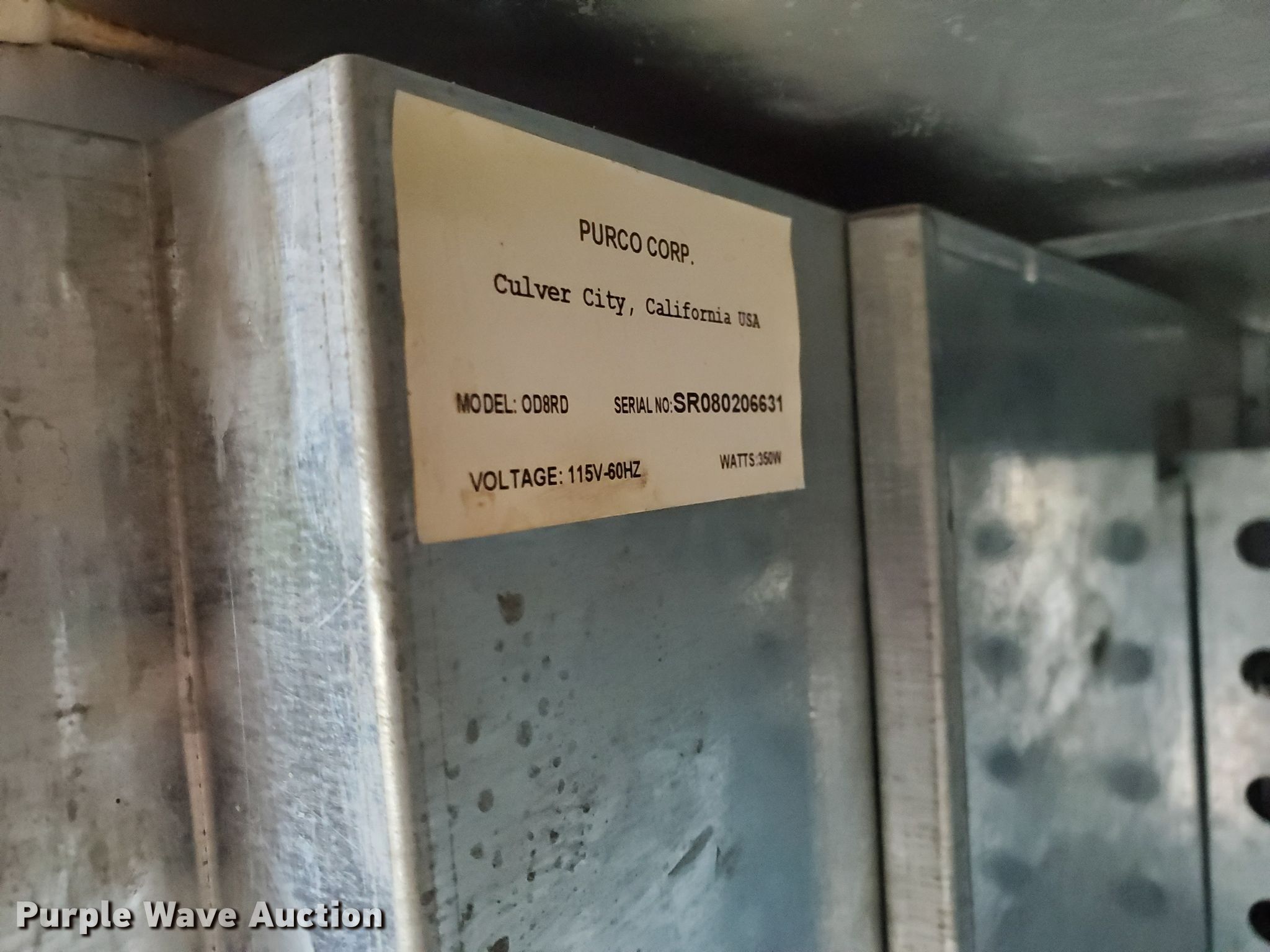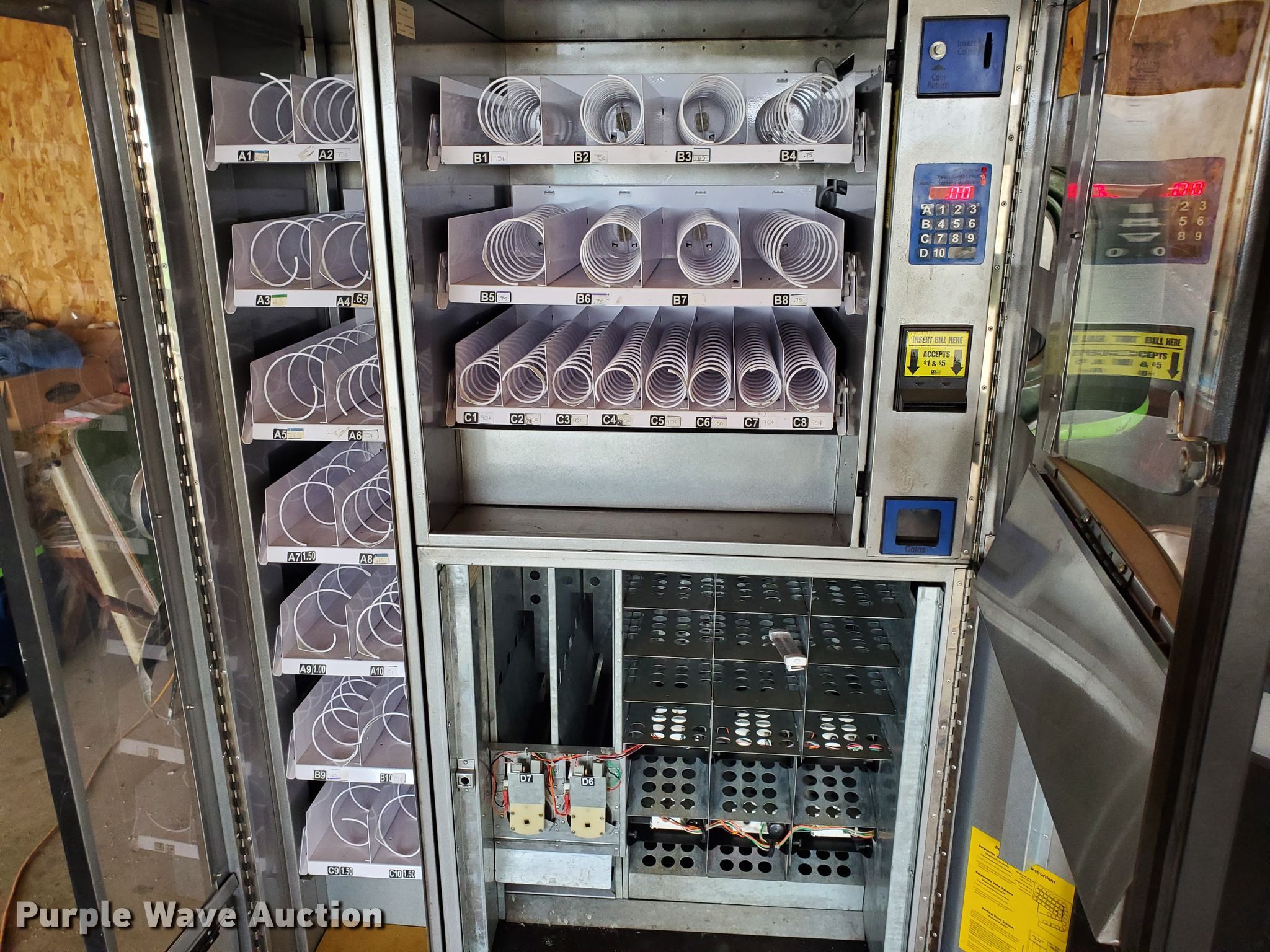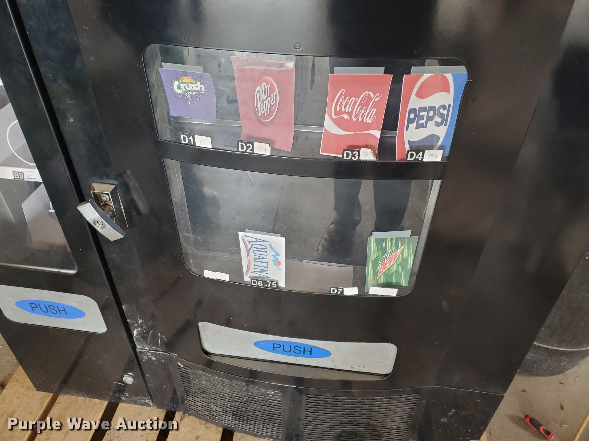 Purple Wave is selling a used Retail Displays in Kansas. This item is a Purco Corp vending machine with the following: 115V, Locks need to be replaced, Non-operational bill acceptor
