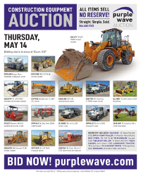 Equipment descriptions are based on our direct observation and information provided by our selling customer. All information is intended to be as accurate as possible. However, we recommend customers inspect prior to bidding. Purple Wave listings are not intended to be substitutions for inspection. The details provided may differ on equipment based on information provided by the consignor. An error or omission in the listing will not change the results of the bid. It is the responsibility of the buyer to conduct any inspection and examination necessary to satisfy him of all material facts before placing a bid. All assets, unless stated otherwise, are sold "as-is, where is". Buyers assume all risks at the conclusion of the auction. All sales are final. No refunds given. Credit card transactions may not be reversed.