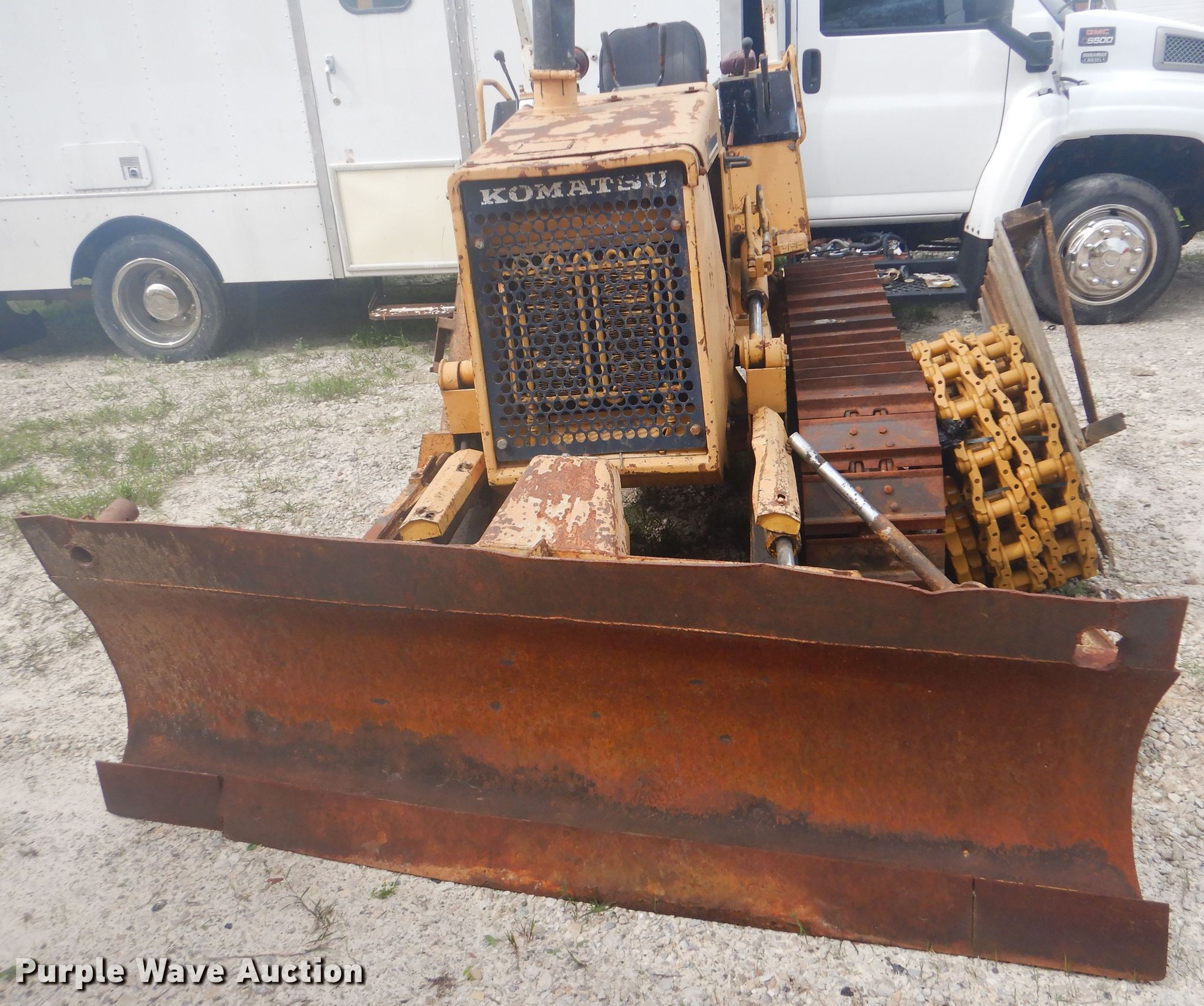 Komatsu D21A-6 crawler dozer. 205 hours on meter, Serial: 63367. Engine Komatsu, Displacement: 2.69L, Cylinders: 4, Fuel type: Diesel, HP: 40. Transmission Powershift, 2F - 2R. Operators station Canopy. Operational Dozer blade 6-way, Width: 81". Tracks Width: 12", Grouser pads: Single. Notes Parts may be missing, (2) additional unused track rails and sprockets, Non-operational unit, Serial 63367. Ada, OK 74820