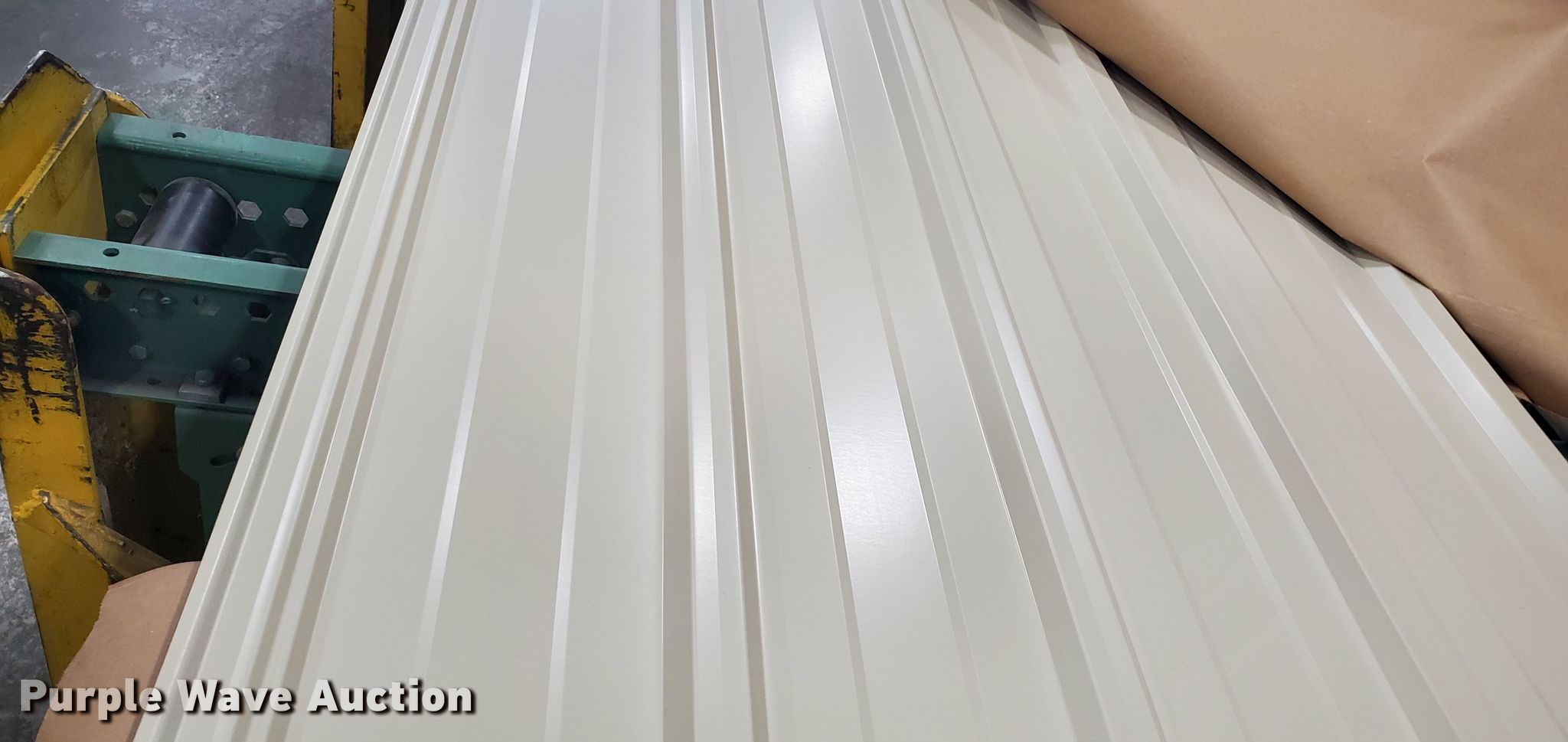 Purple Wave is selling a used Building Materials in South Dakota. This item is a (60) sheets of metal roofing/siding with the following: 17'L x 36"W, Pro-Rib steel profile, 29 gauge, Color: Ivory, Unused, Approx. 1,020 linear feet, Approx. 2,250 lbs, Ref# 10198958