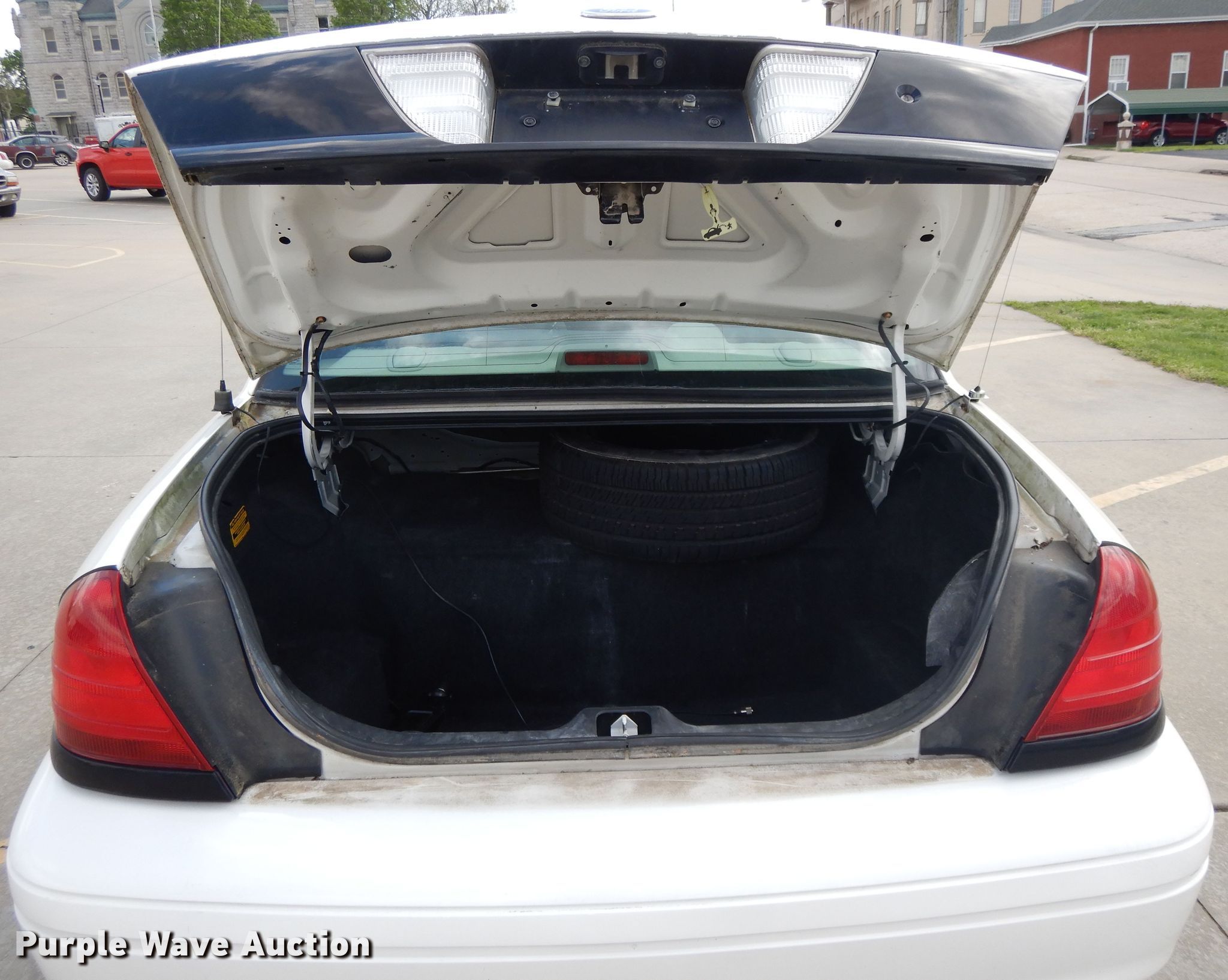 2004 Ford Crown Victoria Police Interceptor. 230,184 miles on odometer. Engine Displacement: 4.6L V8 SOHC 16V , Cylinders: 8, Fuel type: Gas. Transmission Automatic. Interior AC, Heat, Powered windows, Powered locks, Cruise control. Tires Size: 225/60R16. Missouri title. 2FAFP71W94X104615. Lawrence County Sherriff Dept. 240 N Main St. Mount Vernon, MO 65712