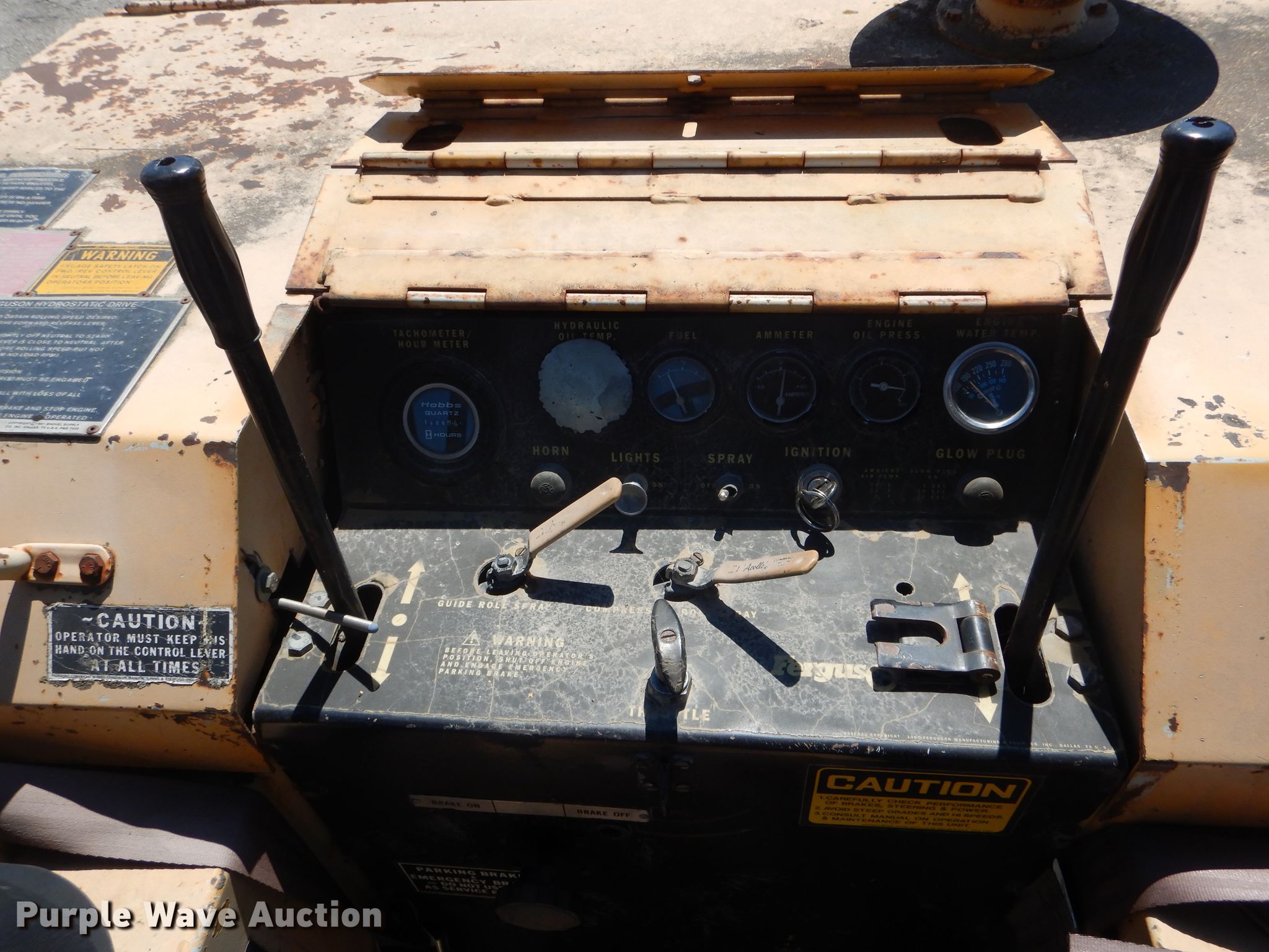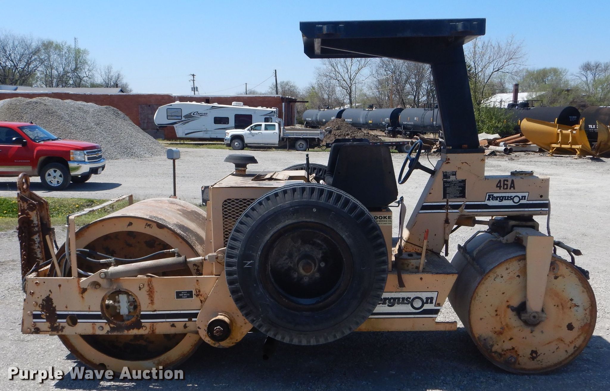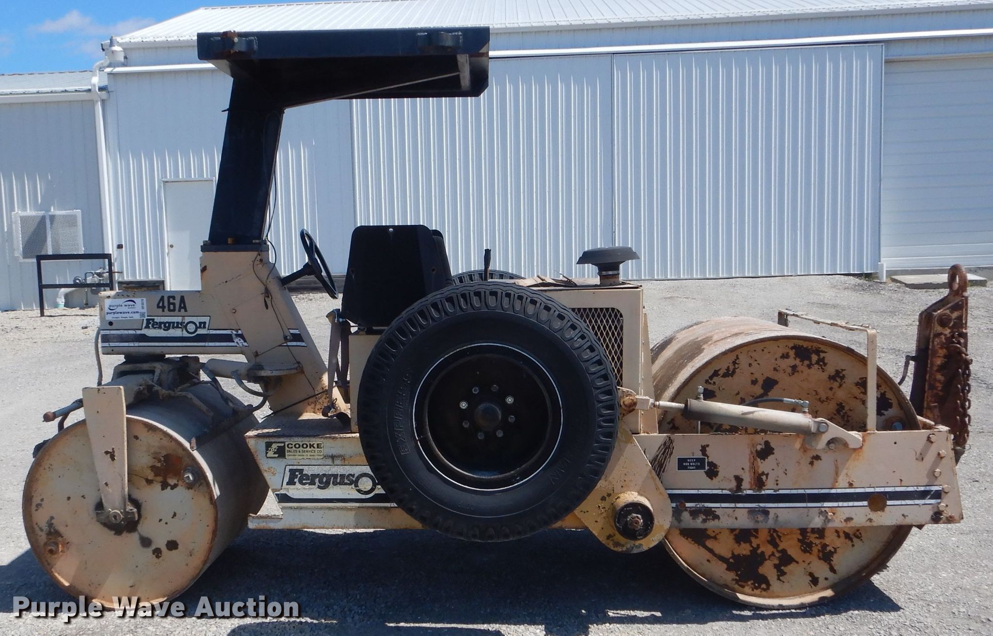 Purple Wave is selling a used Double Drum Roller Compactor in Missouri. This item is a Ferguson 46A double drum roller with the following: 1,406 hours on meter, Four cylinder diesel engine, Hydrostatic transmission, Vandal cover, 40"W x 36" diameter smooth front drum, 42"W x 47" diameter smooth rear drum, Front drum scraper, Front and rear water application, 10.00-20 tires, Serial 4012