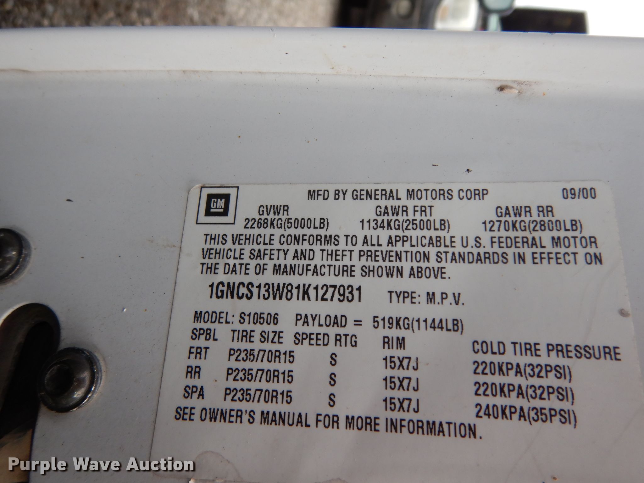 Purple Wave is selling a used Passenger Vehicle in Oklahoma. This item is a 2001 Chevrolet Blazer SUV with the following: 136,454 miles on odometer
