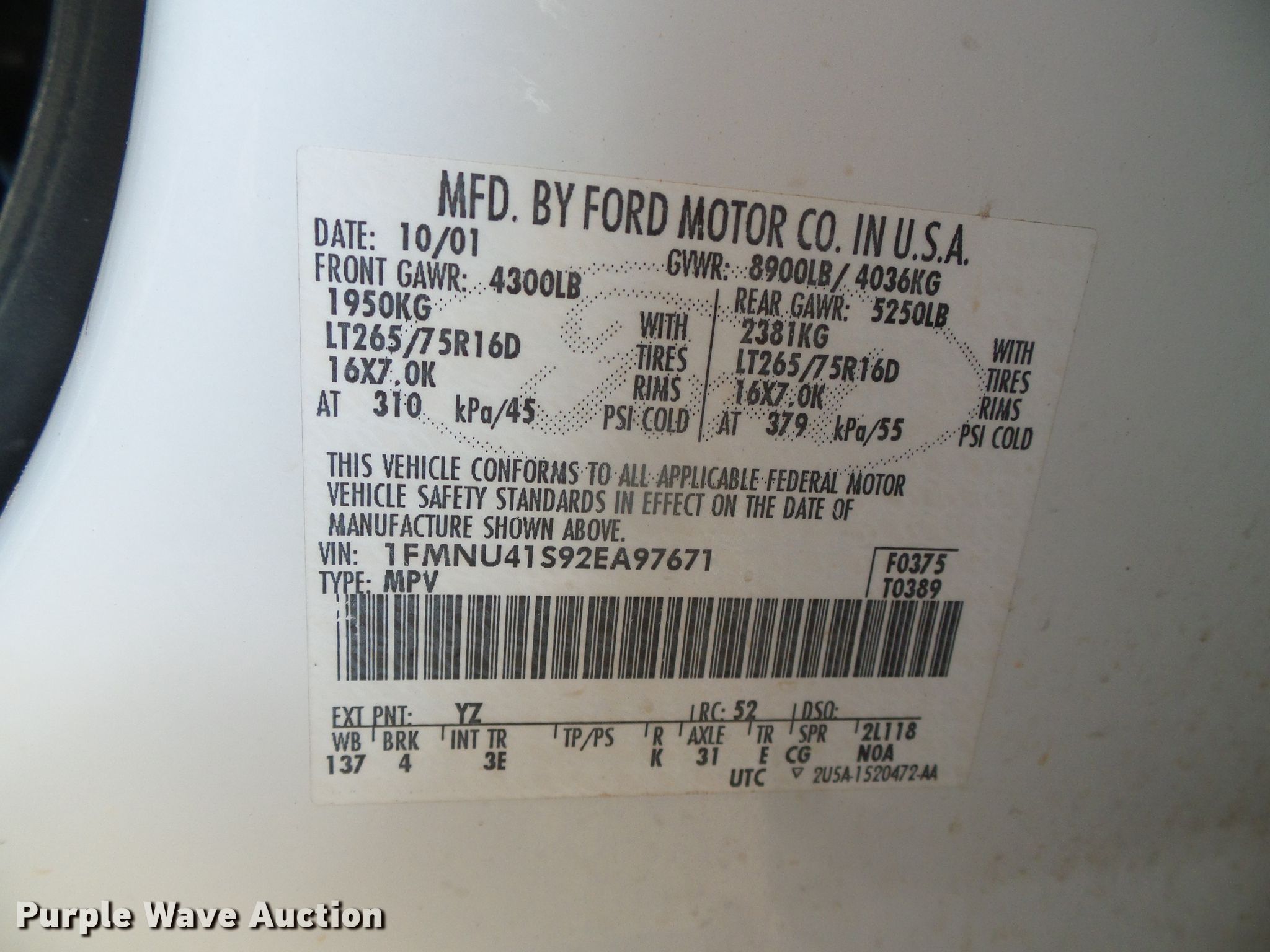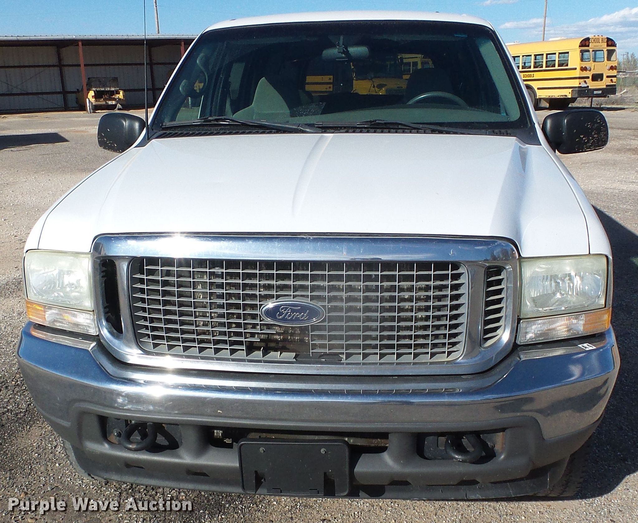 2002 Ford Excursion XLT SUV. 306,041 miles on odometer Miles may vary, unit still in use. Engine Displacement: 6.8L V10 SOHC 20V, Cylinders: 10, Fuel type: Gas. Transmission Automatic, Four wheel drive. Interior AC, Heat, Powered windows, Powered locks, Cruise control. Tires LT265/75R16 tires. Oklahoma title. 1FMNU41S92EA97671. Laverne Public Schools. 524 NW 5th St. Laverne, OK 73848