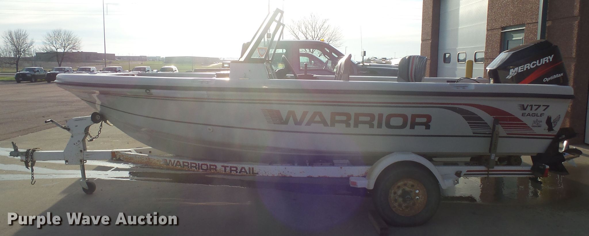 1995 Warrior V177 Eagle boat. Length: 17', Hull ID: POUJ6546F495, Unit #: 312975, Equip #: GFP10. Engine Engine type: Outboard, Mercury 150 Optimax, Serial: OT382565, Cylinders: 6, Fuel type: Gas, HP: 150, Propellor: Stainless steel. Operators station Capacity Person: 3. South Dakota title. Title distribution may be delayed up to 14 days from verification of funds. South Dakota Game, Fish, and Parks. 5316 W 60th N # A. Sioux Falls, SD 57107