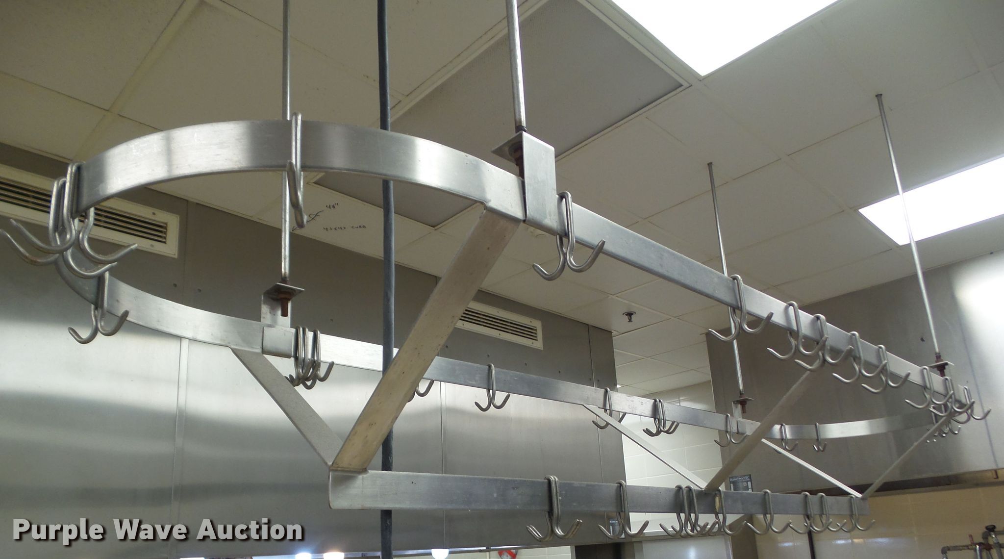 Purple Wave is selling a used Restaurant Equip. in Iowa. This item is a Pots and pans rack with the following: 8'