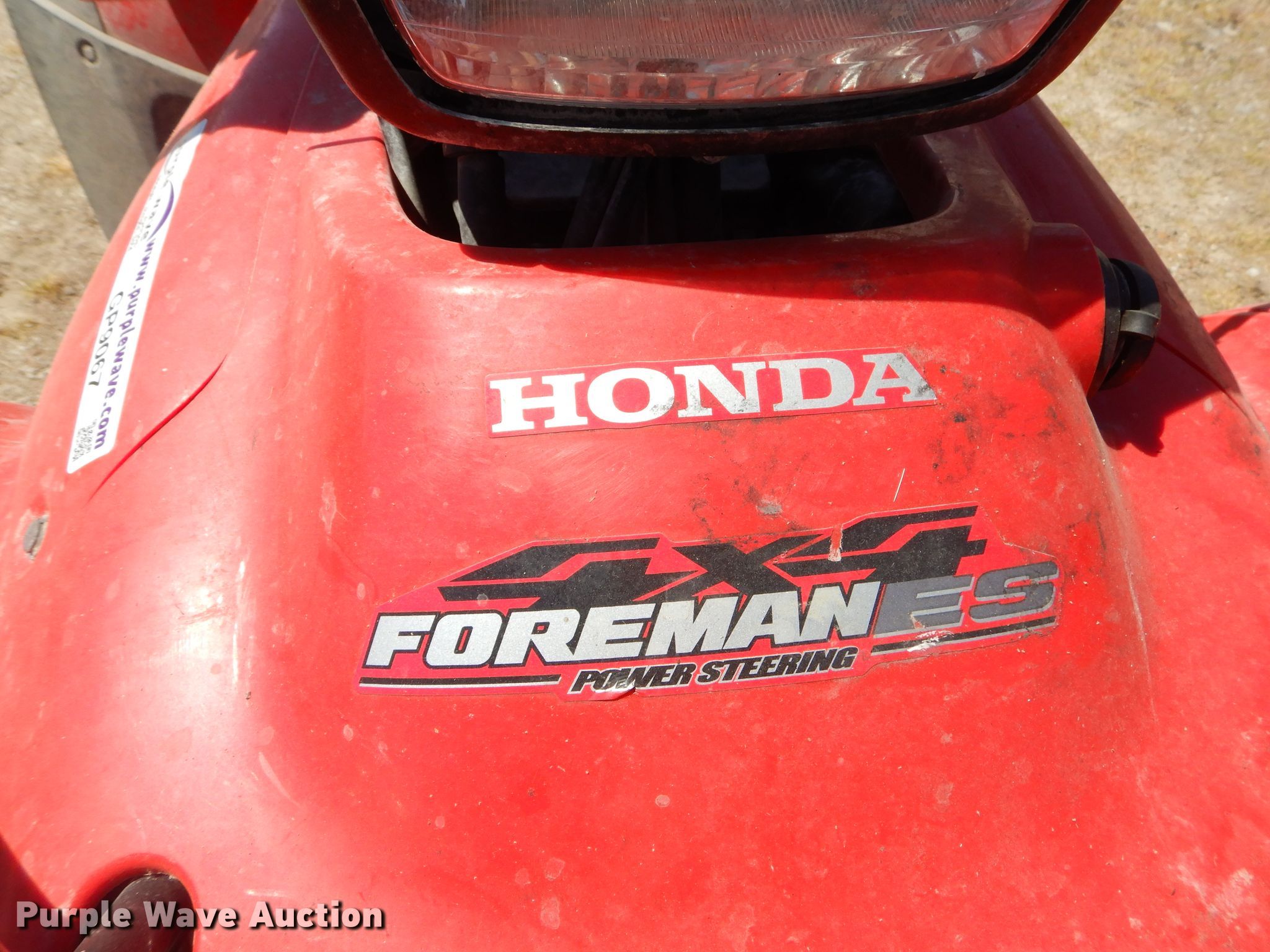 Purple Wave is selling a used ATV in Kansas. This item is a 2011 Honda Foreman ES ATV with the following: 1,579 miles on odometer, 226 hours on meter, 49cc gas engine, Automatic transmission, Four wheel drive, Electric start, Sprayer, 24 gallon poly tank, Electric motor, 2" ball hitch, 25x8.00-12 front tires, 25x10.00-12 rear tires