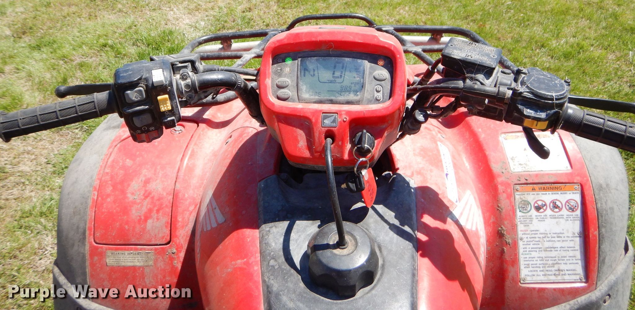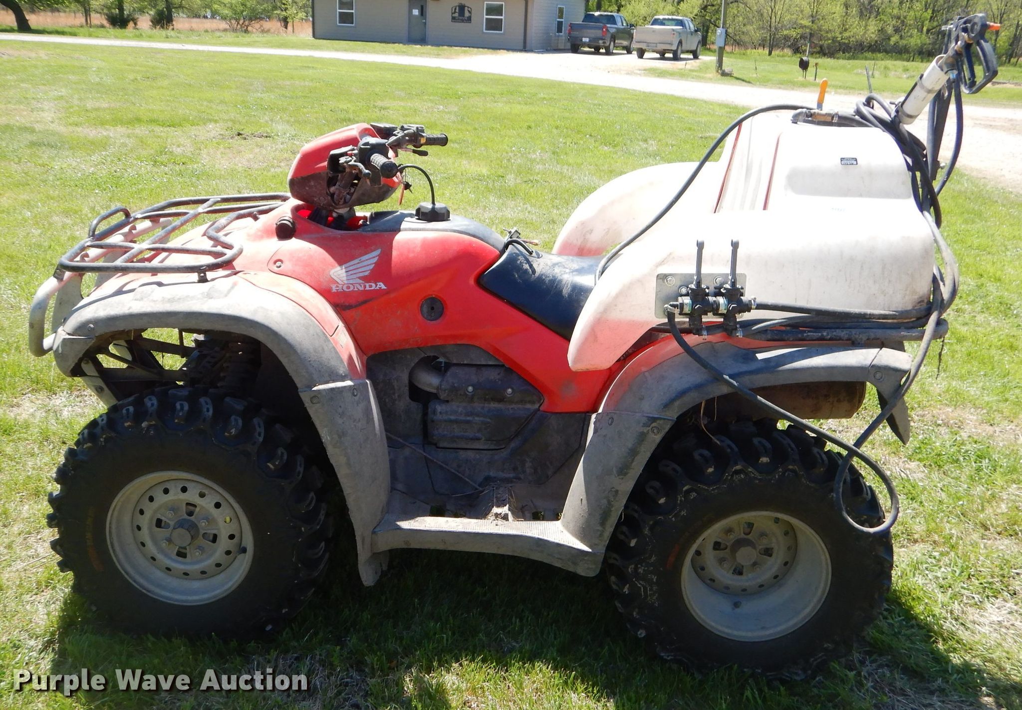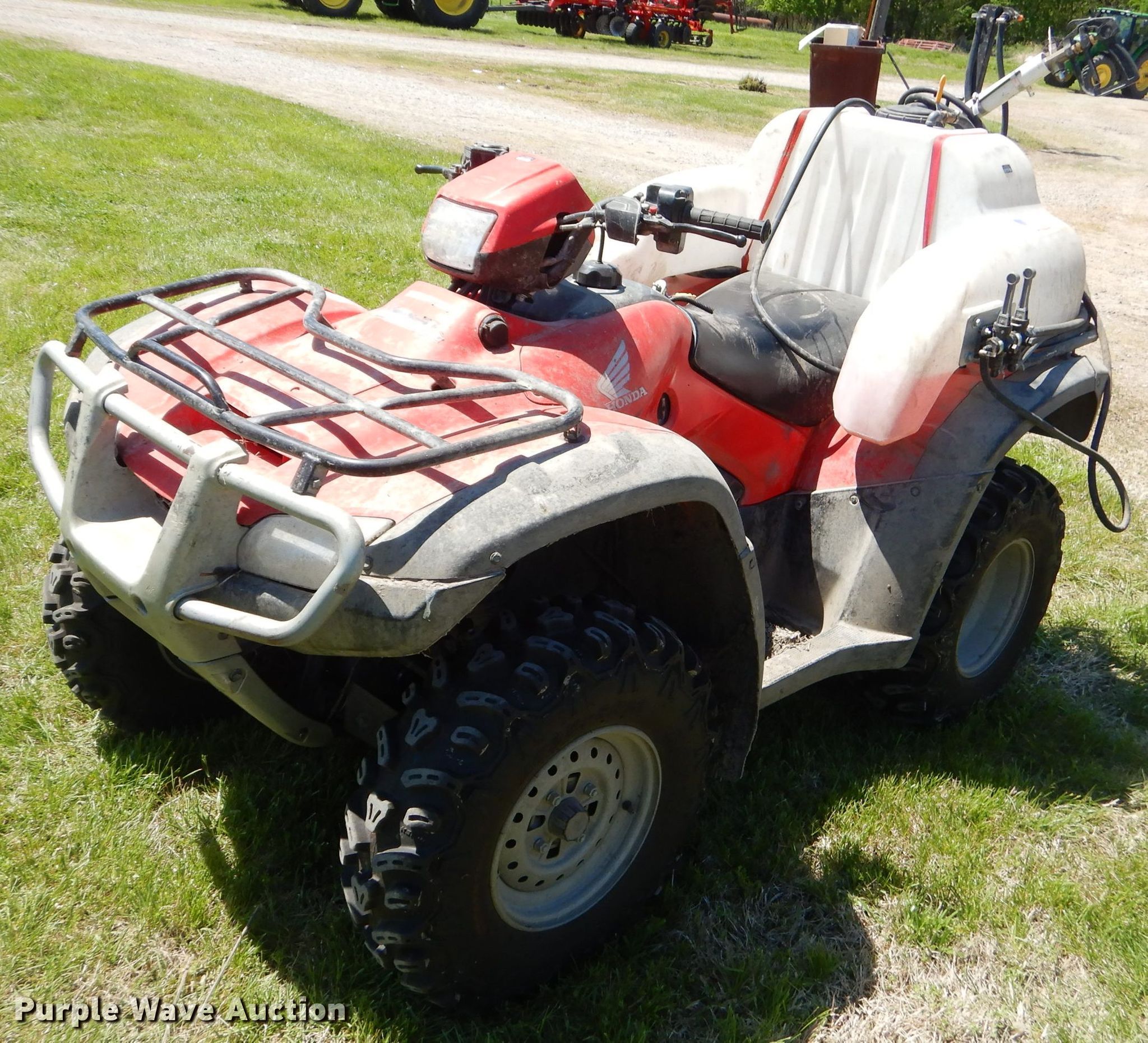 Purple Wave is selling a used ATV in Kansas. This item is a 2011 Honda Foreman ES ATV with the following: 1,967 miles on odometer, 356 hours on meter, 499cc gas engine, Automatic transmission, Four wheel drive, Electric start, Sprayer, 24 gallon poly tank, Electric start, 25x8.00-12 front tires, 25x10.00-12 rear tires