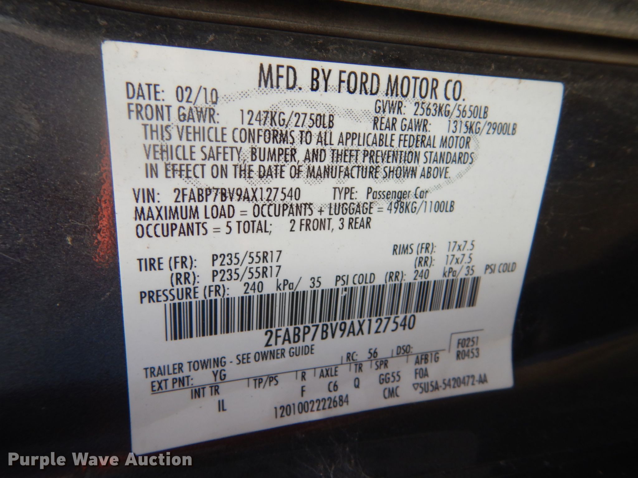 2010 Ford Crown Victoria Police Interceptor. Unknown miles on odometer, Unit #: AL909, Asset #: 348757. Engine Displacement: 4.6L V8 SOHC 16V FFV, Cylinders: 8, Fuel type: Gas. Transmission Automatic. Interior AC, Heat, Seat: Power driver, Heated mirrors, Powered windows, Powered locks, Cruise control. Tires Size: 235/55R17. Notes Non-operational unit. South Dakota title. Title distribution may be delayed up to 14 days from verification of funds. Mileage has not been verified. Odometer discrepancy will be marked on the title. 2FABP7BV9AX127540. State of South Dakota. 104 South Garfield. Pierre, SD 57501