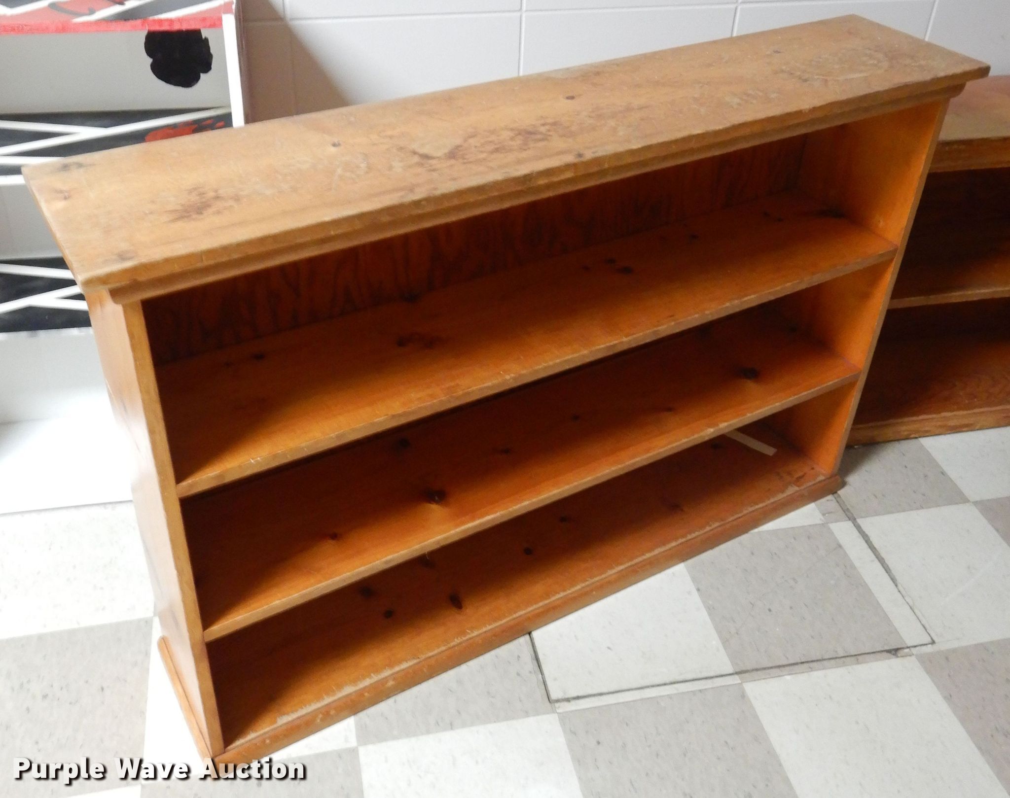 Purple Wave is selling a used Furniture in Kansas. This item is a Furniture with the following: (3) bookshelves, Book return