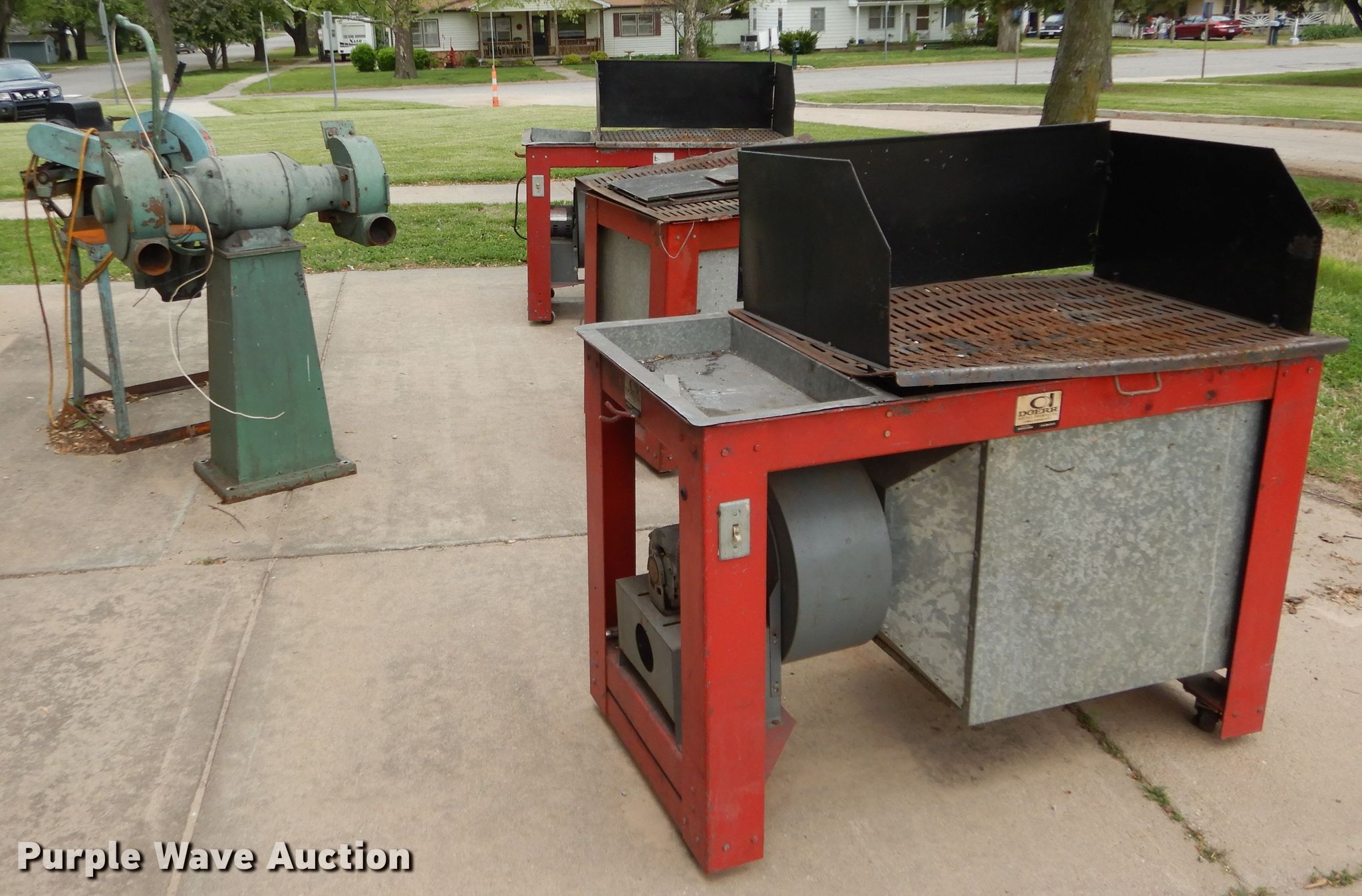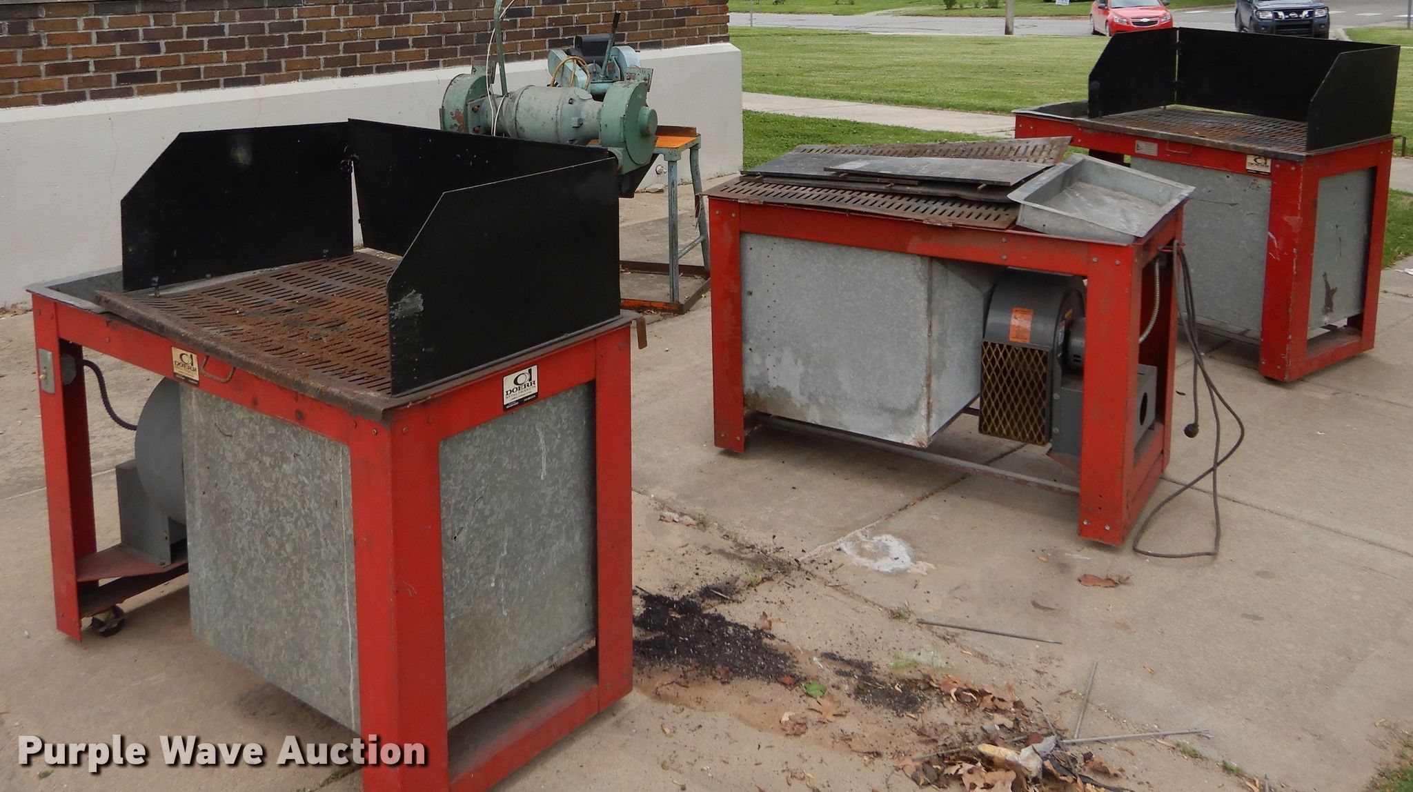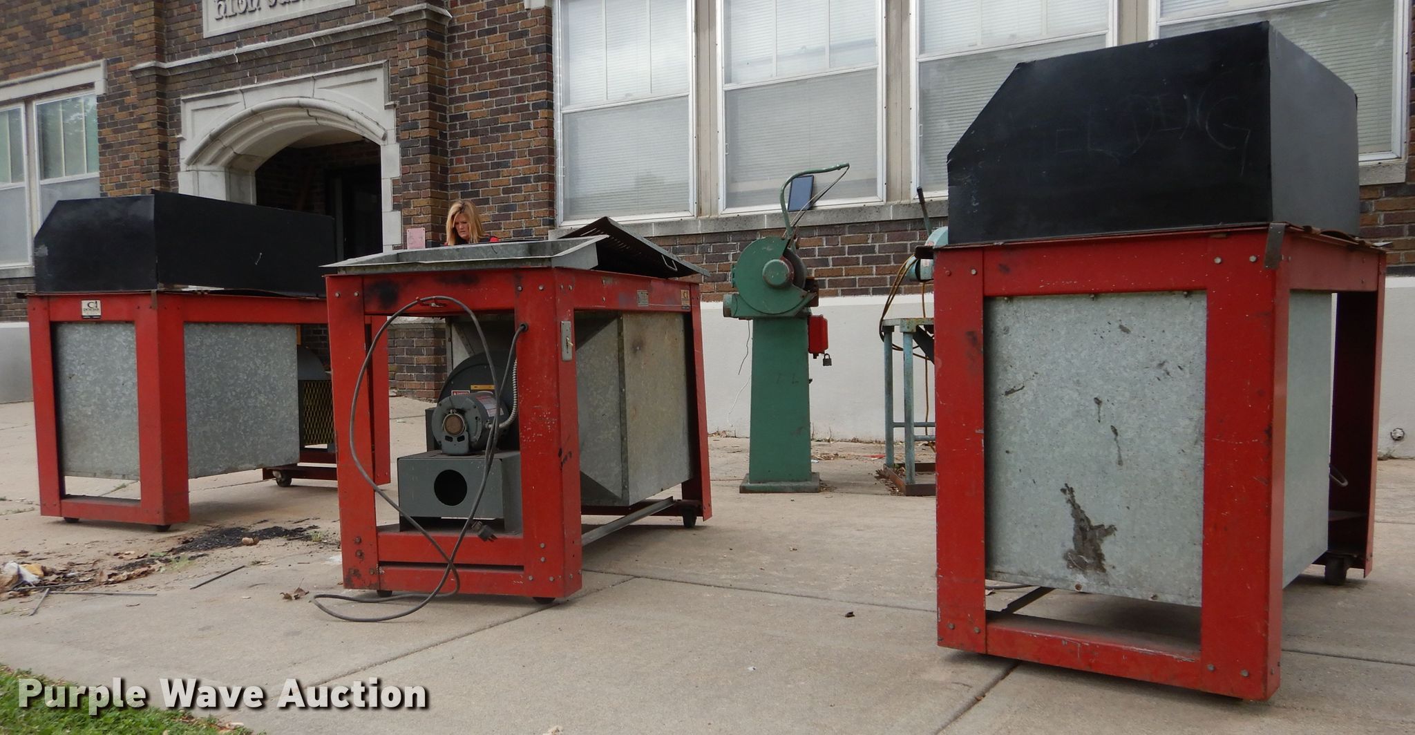 Purple Wave is selling a used Tools in Kansas. This item is a Tools with the following: (3) Doerr welding tables, Approx. 4', Fans, Unknown operating conditions, Brilliant BDM51 metal cut-off saw, 5 HP electric motor, Serial 797R, Standard Electric Tool Co 101 grinder, 220V, Single phase, 2 HP