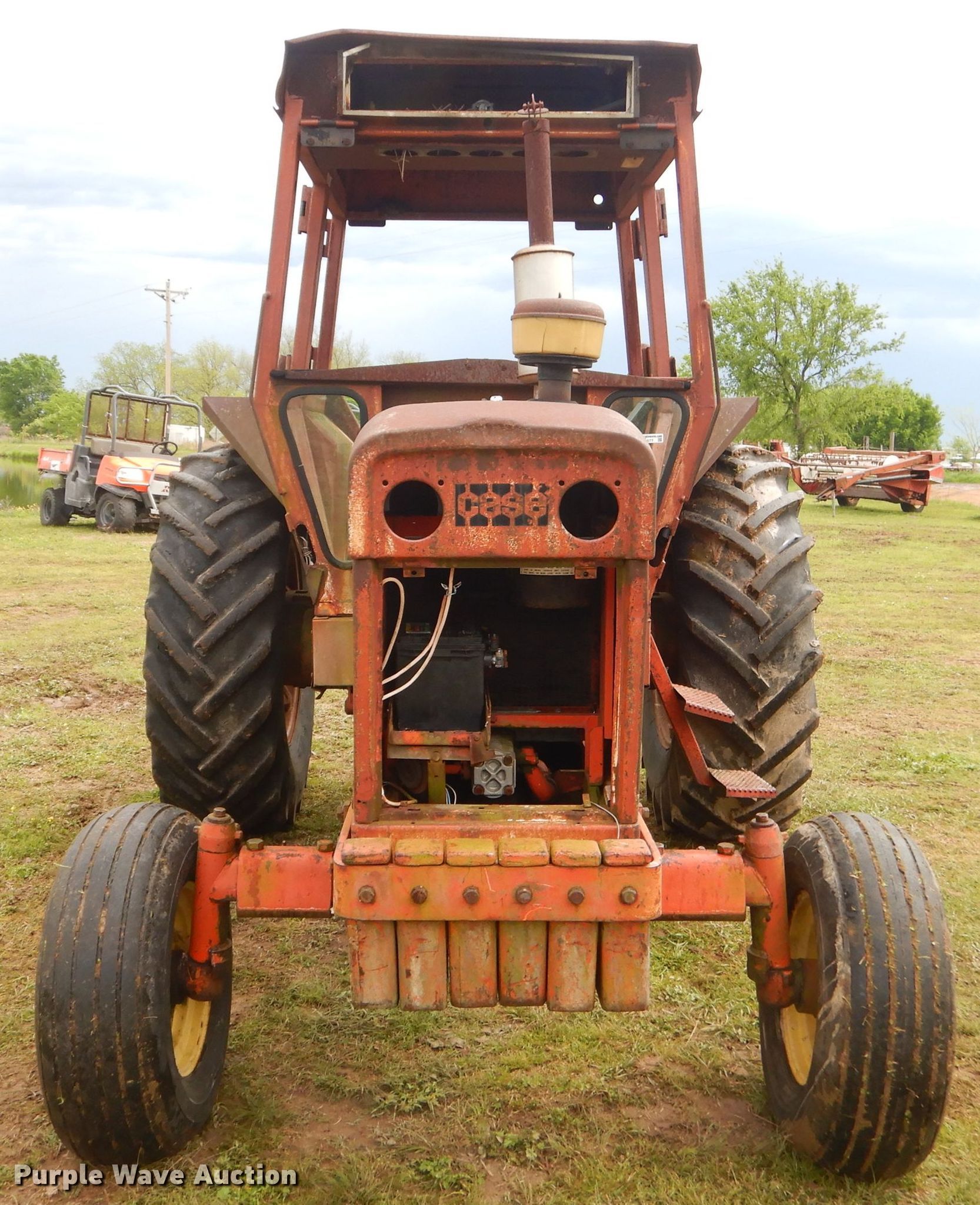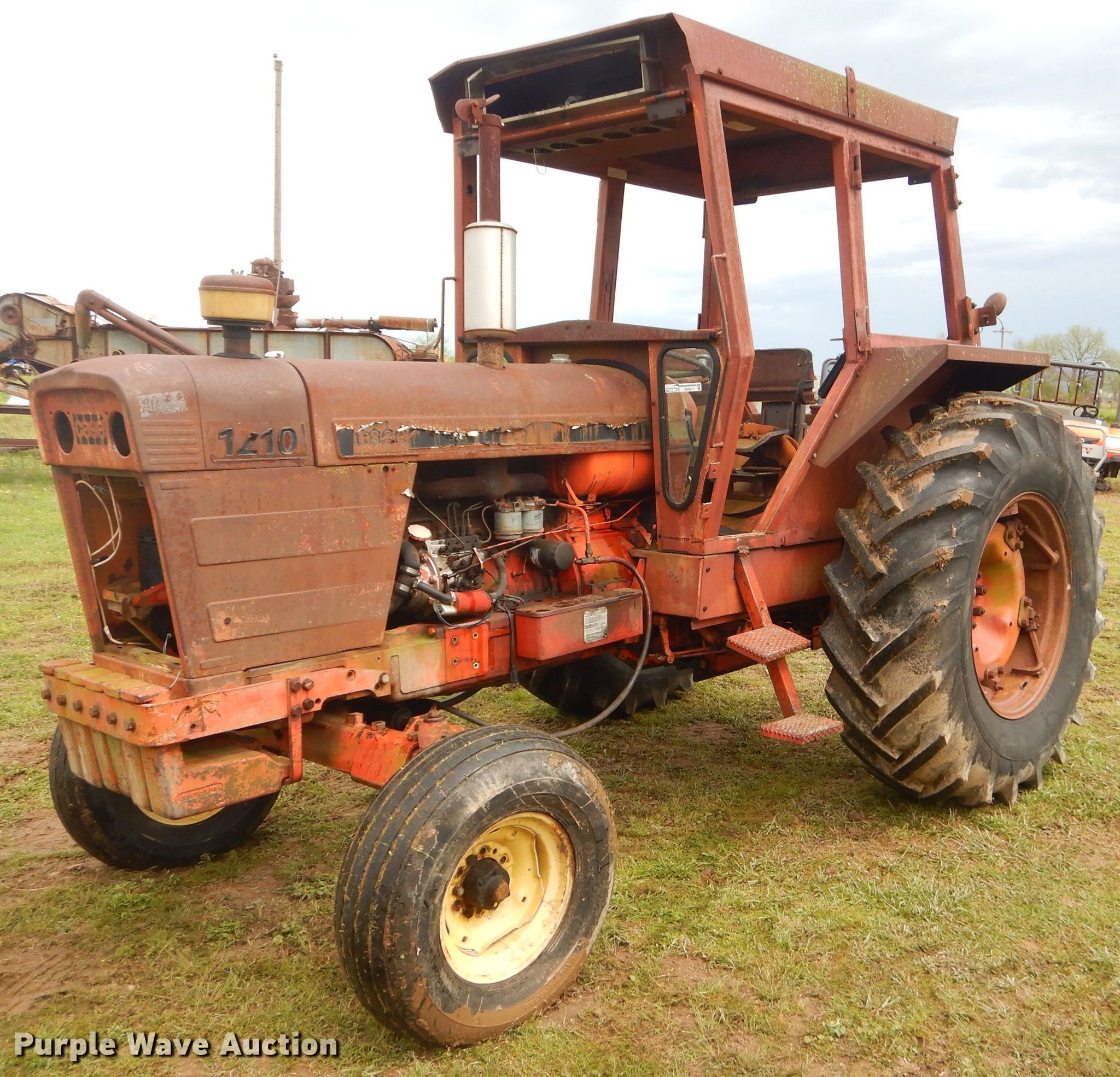 Purple Wave is selling a used Tractor in Oklahoma. This item is a Case 1210 tractor with the following: 2,667 hours on meter, Four cylinder diesel engine, Manual transmission, 12F-4R gears, Three point, 540 PTO, Rear hydraulic remote set, 11L-15 front tires, 18.4/15-30 rear tires, Serial 455031