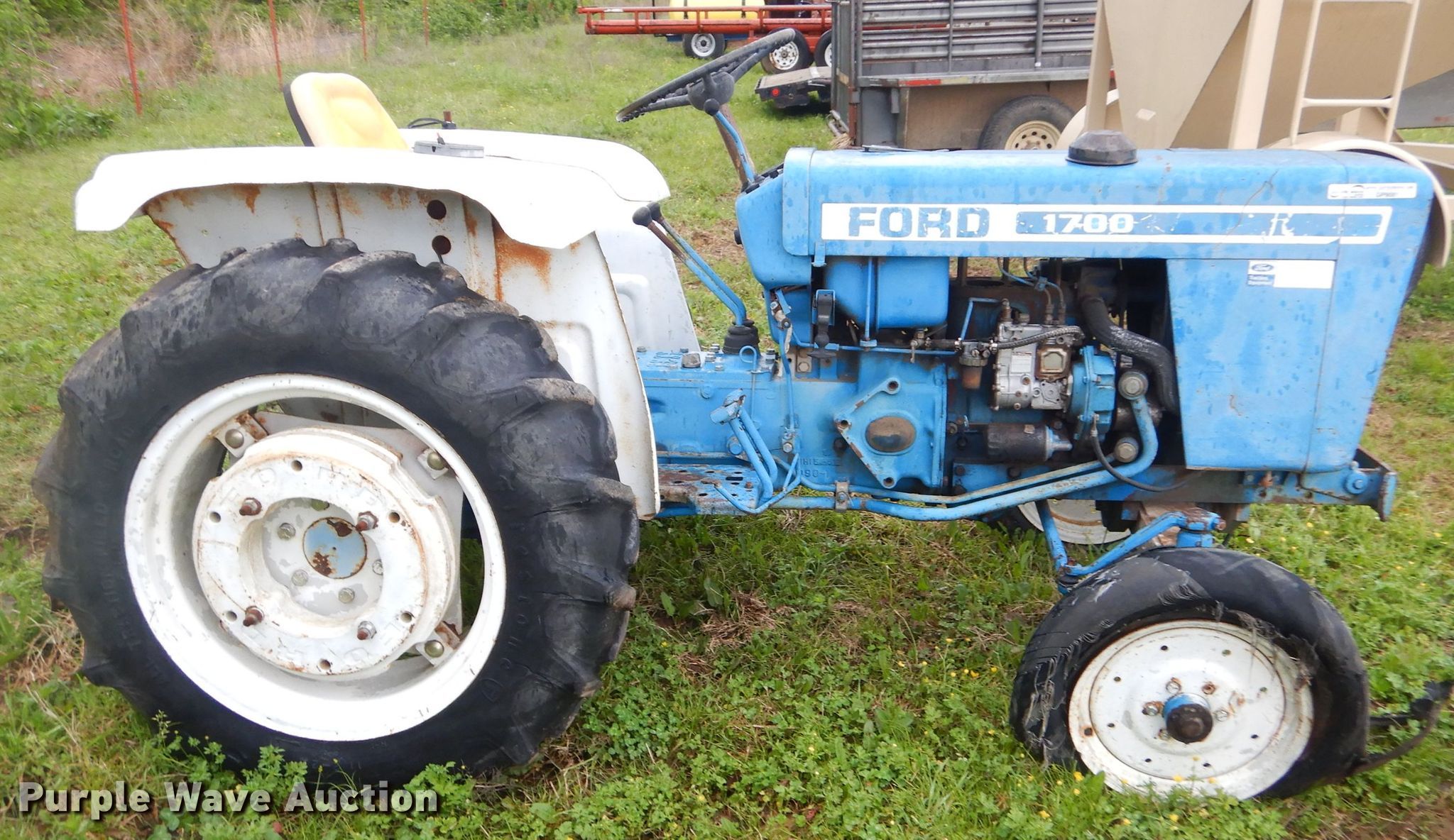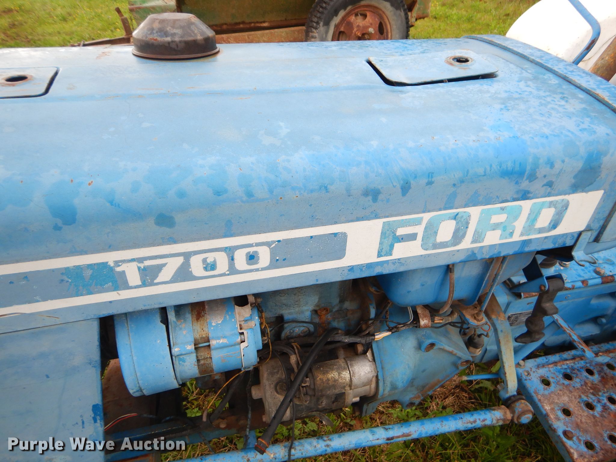 Purple Wave is selling a used Tractor in Oklahoma. This item is a Ford 1700 tractor with the following: 1,426 hours on meter, Two cylinder diesel engine, Serial J7257, Manual transmission, 12F-4R gears, Three point, 540 PTO, (2) wheel weights, 11.2-24 rear tires, Non-operational unit, Serial 701857