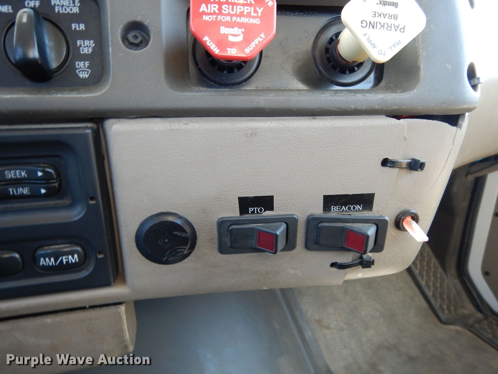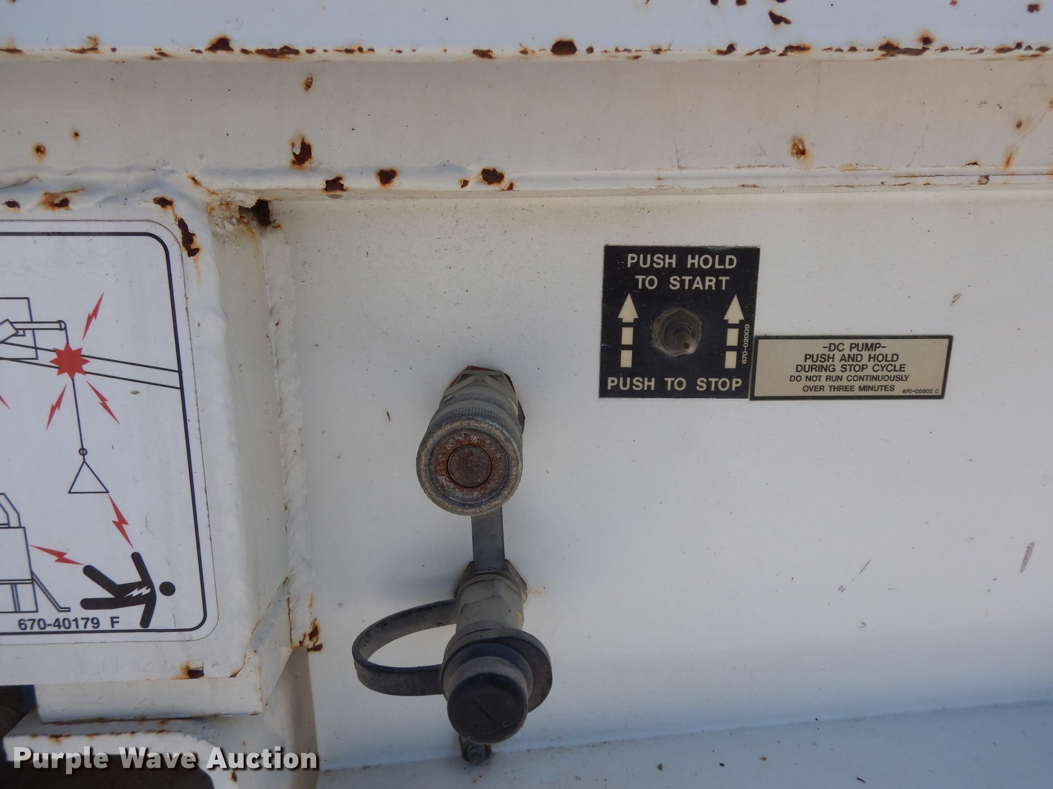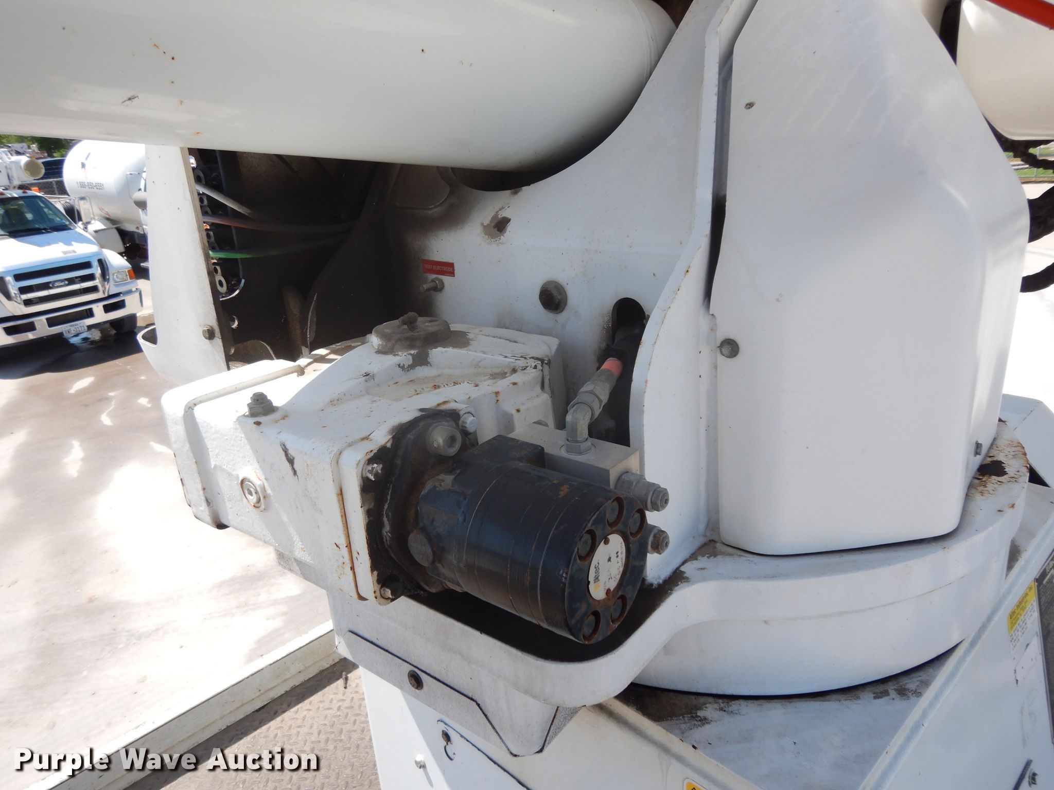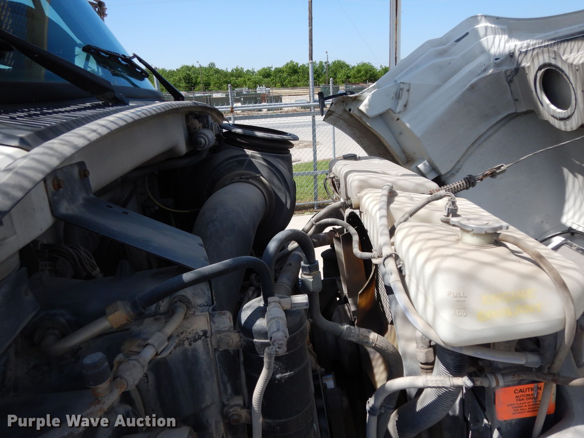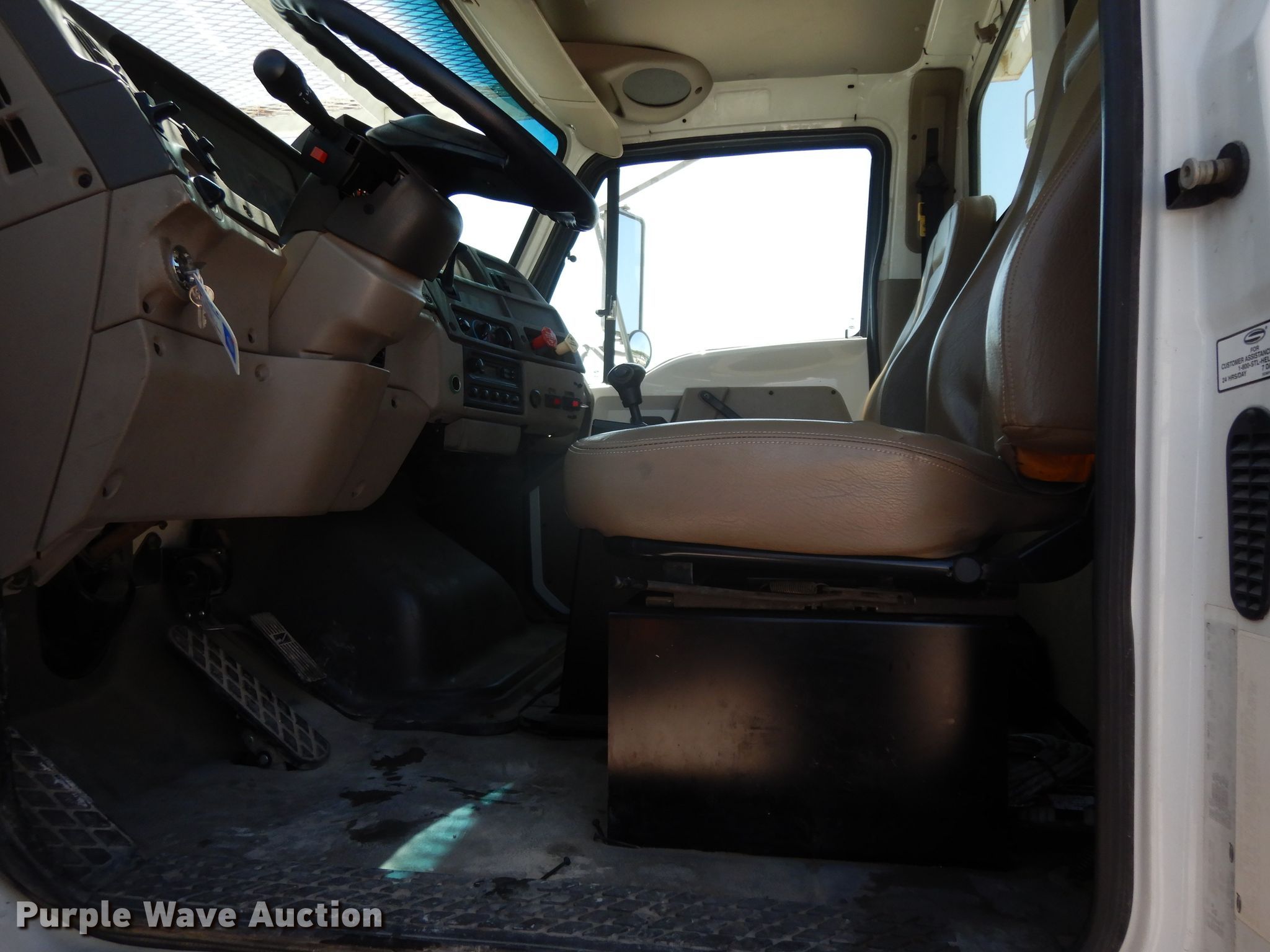 Purple Wave is selling a used Bucket Truck in Texas. This item is a 2004 Sterling L-Line bucket truck with the following: 74,267 miles on odometer, 4,681 hours on meter, Caterpillar C7 7.2L L6 diesel engine, Automatic transmission, Tandem axle, Inter-axle differential lock, AC and heat, Brake controller, PTO, Wet kit, Altec utility bed, 19'L x 8'4"W, 2003 Altec AM55 articulating boom, 30' boom length, 11.3' stowed mast height, 350 lbs maximum lift capacity, 55' maximum lift height, Man basket, Platform and ground controls, Spring suspension, Air brakes, 192" wheelbase, 315/80R22.5 front tires, 11R22.5 rear tires, GVWR 48,600 lbs, Non-operational backup camera, Passenger man basket did not pass dielectric test