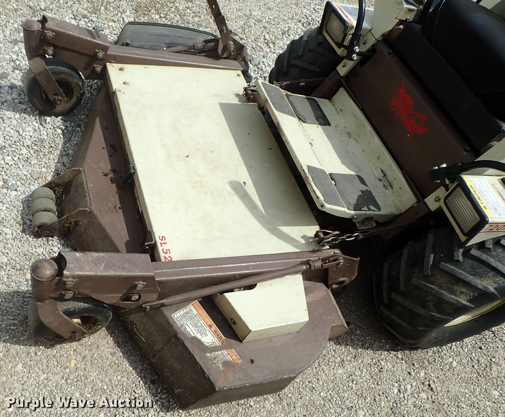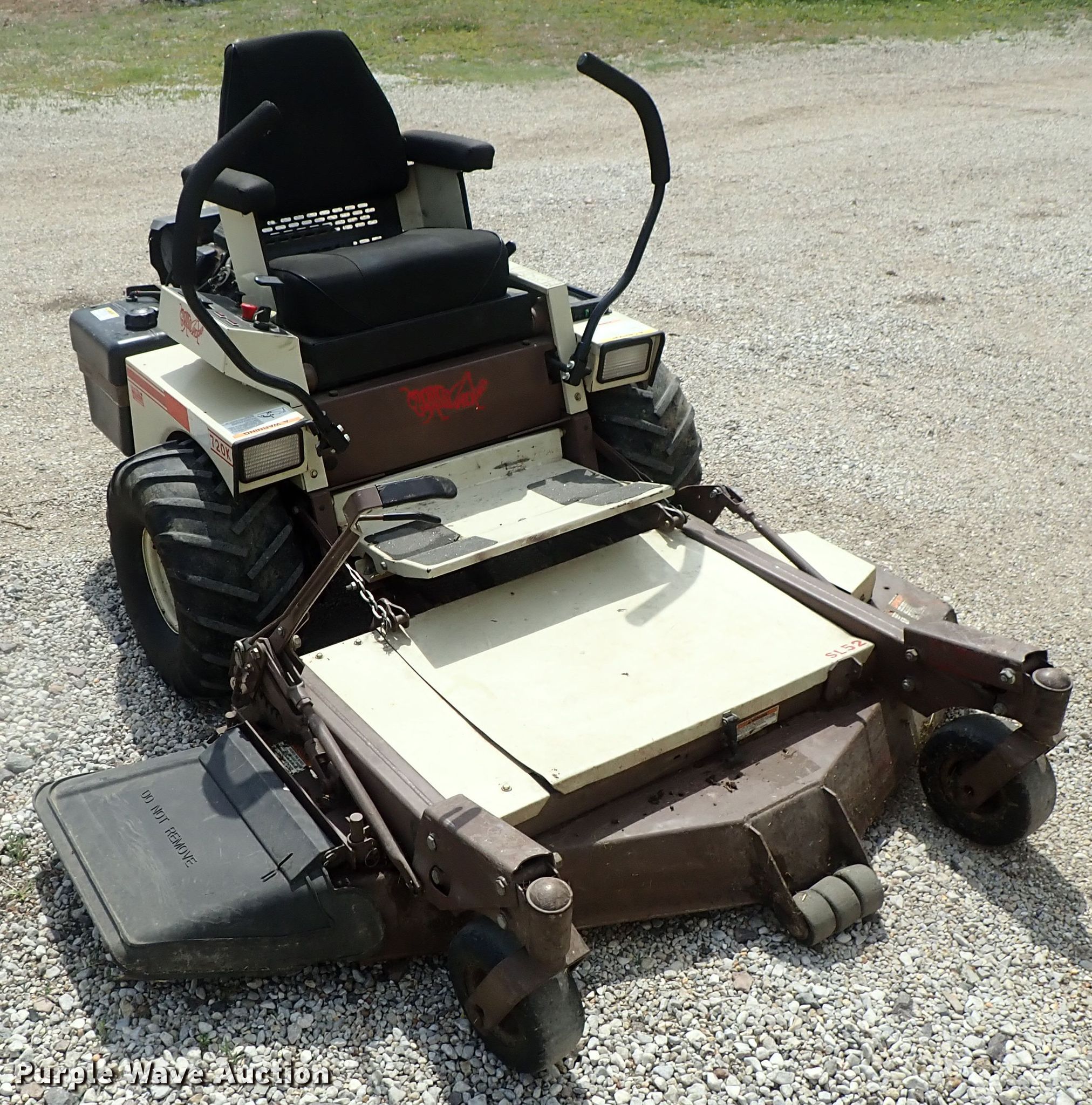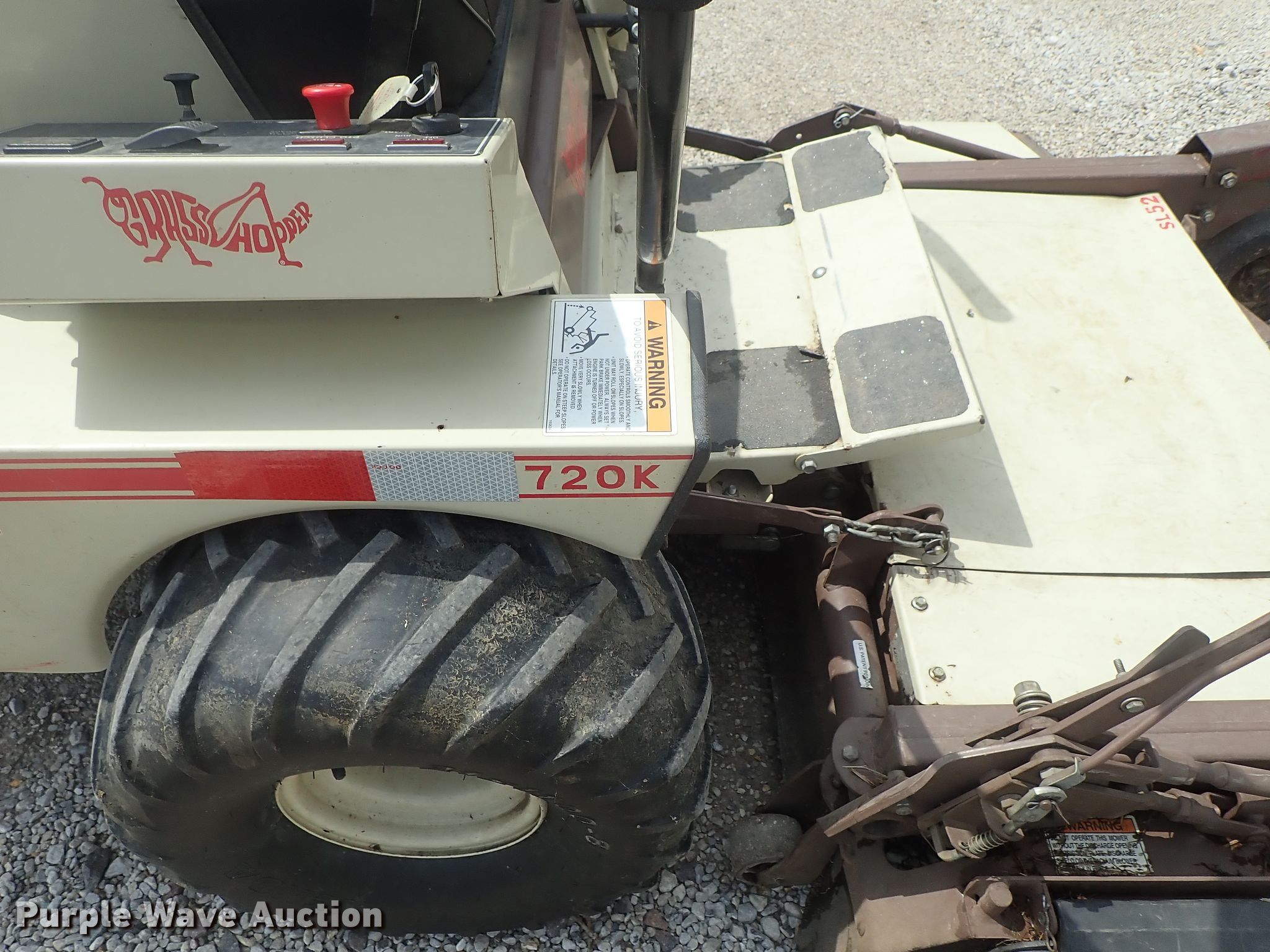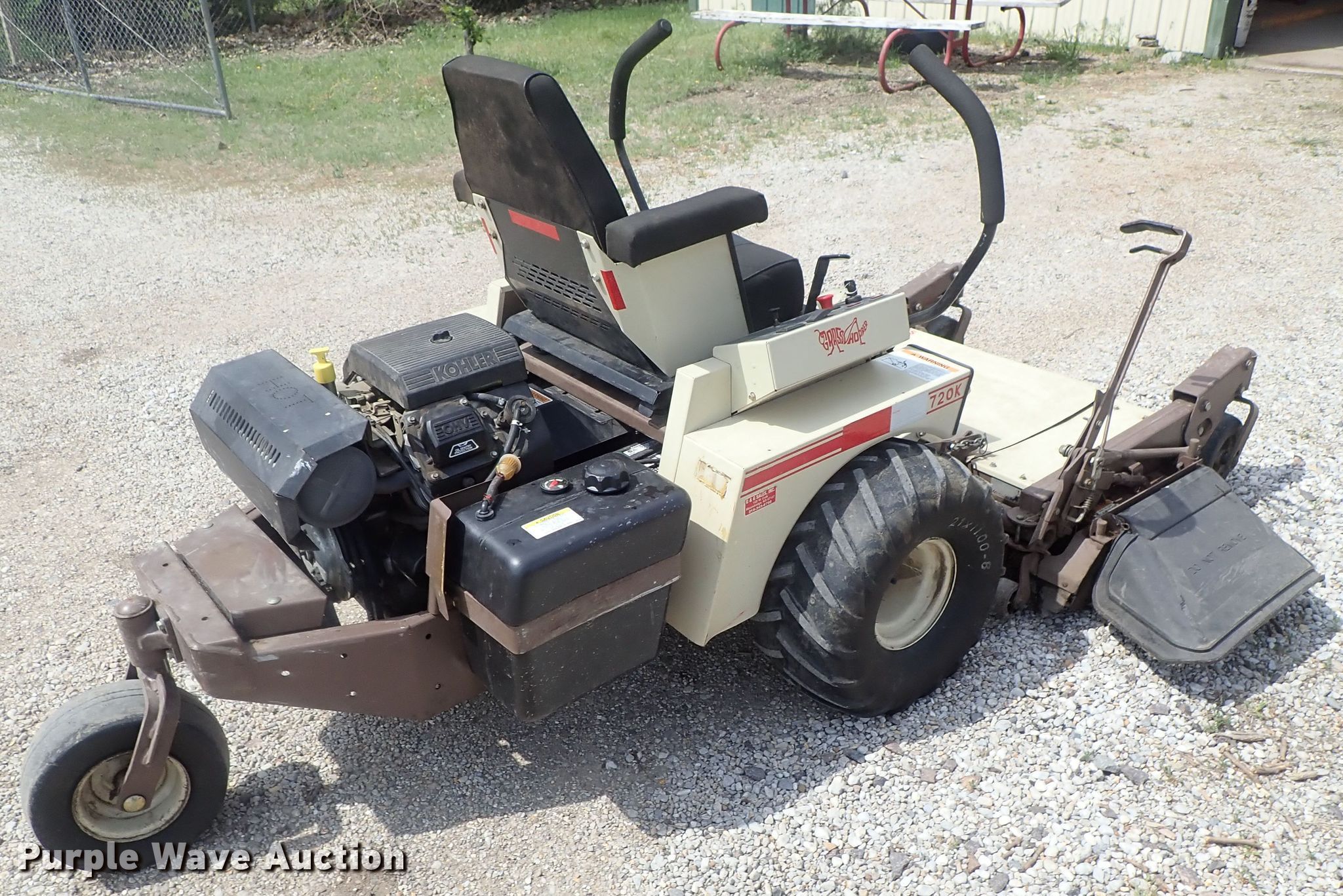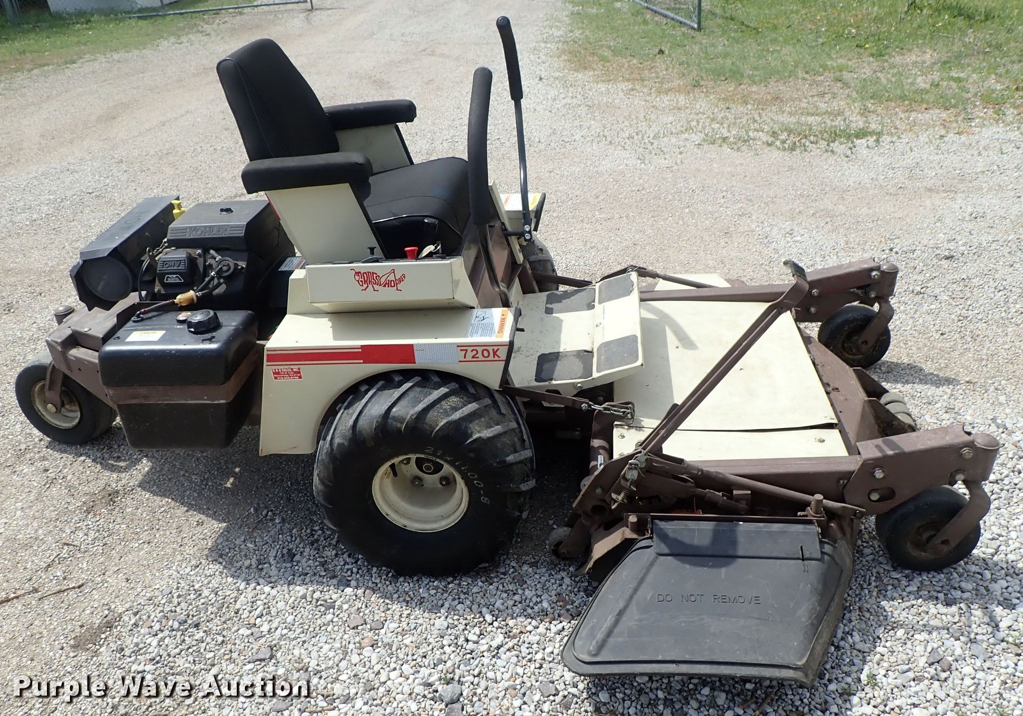 Purple Wave is selling a used Lawn Mower in Kansas. This item is a Grasshopper 720K ZTR lawn mower with the following: 1,526 hours on meter, 52" cut, Kohler gas engine, Hydrostatic transmission, 21x11-8 tires, PTO engage issues, Serial 5310365