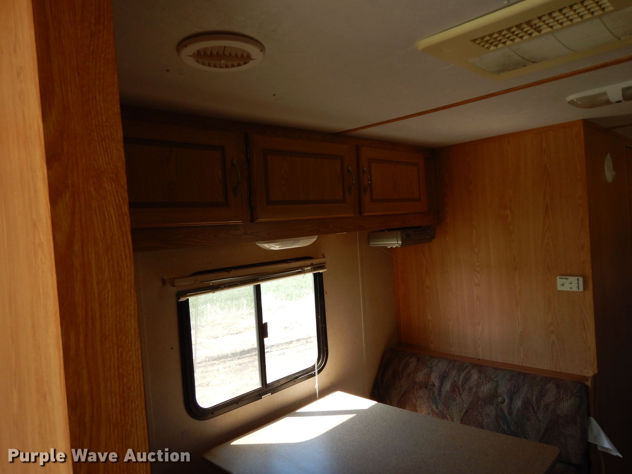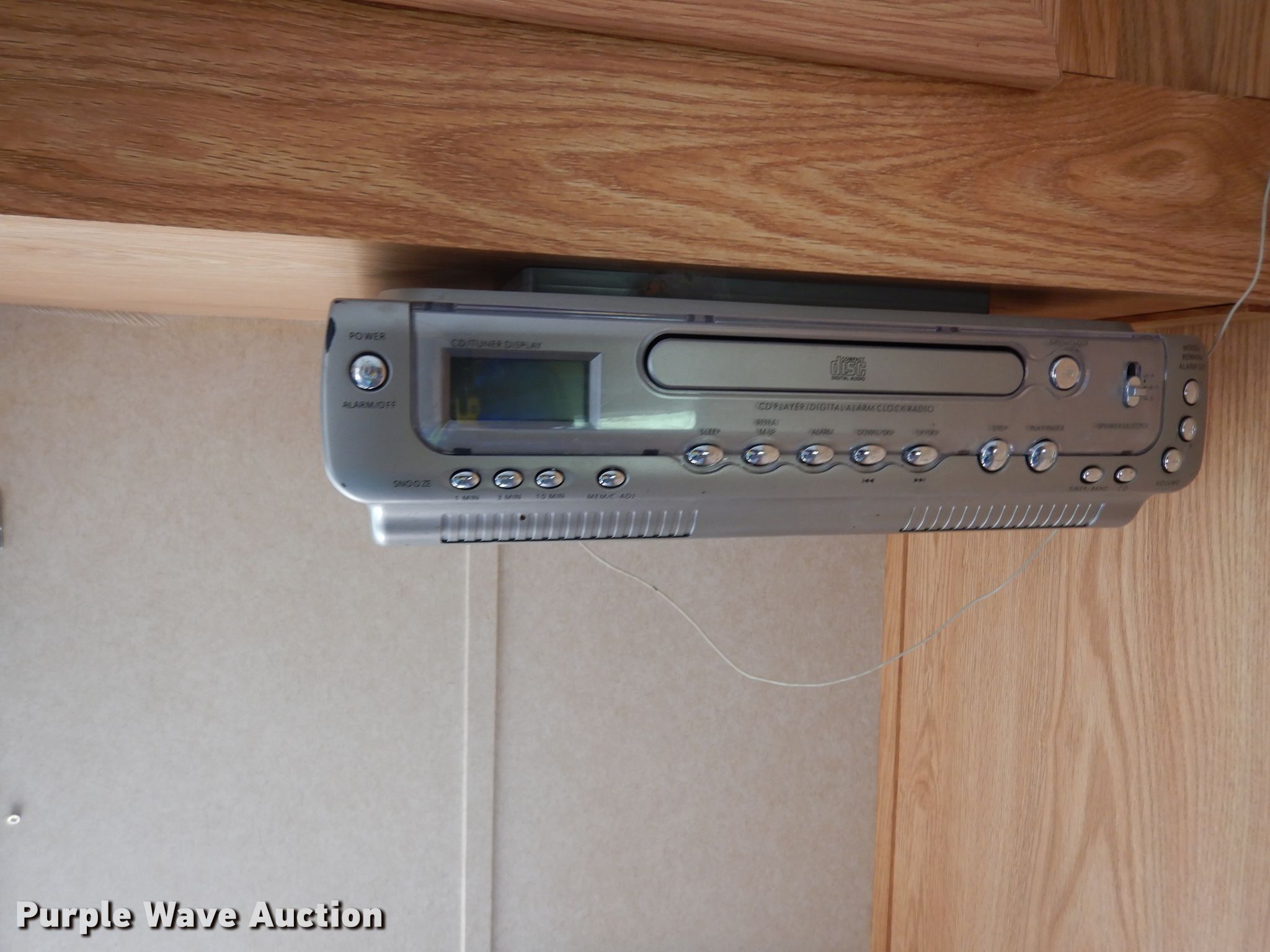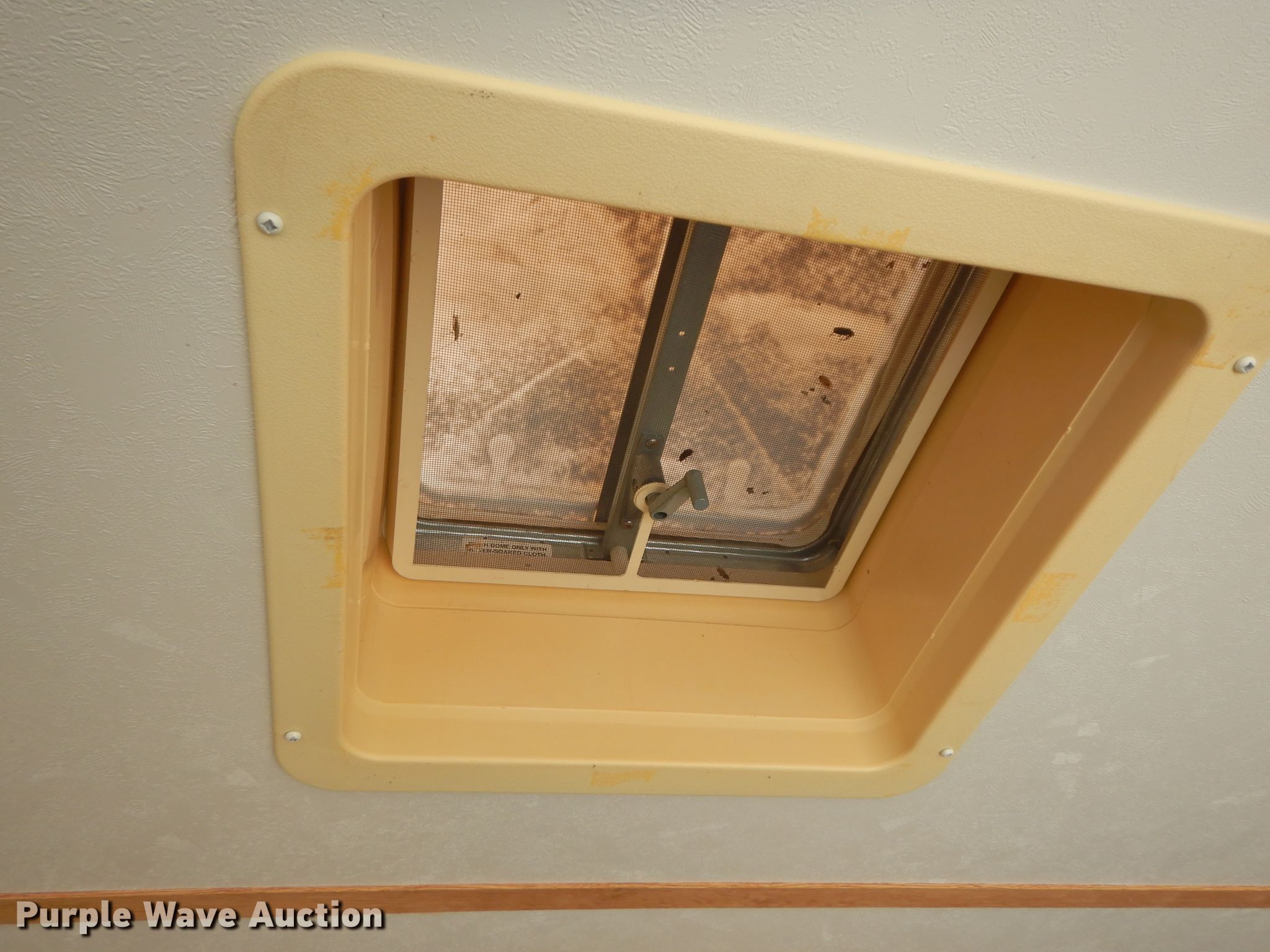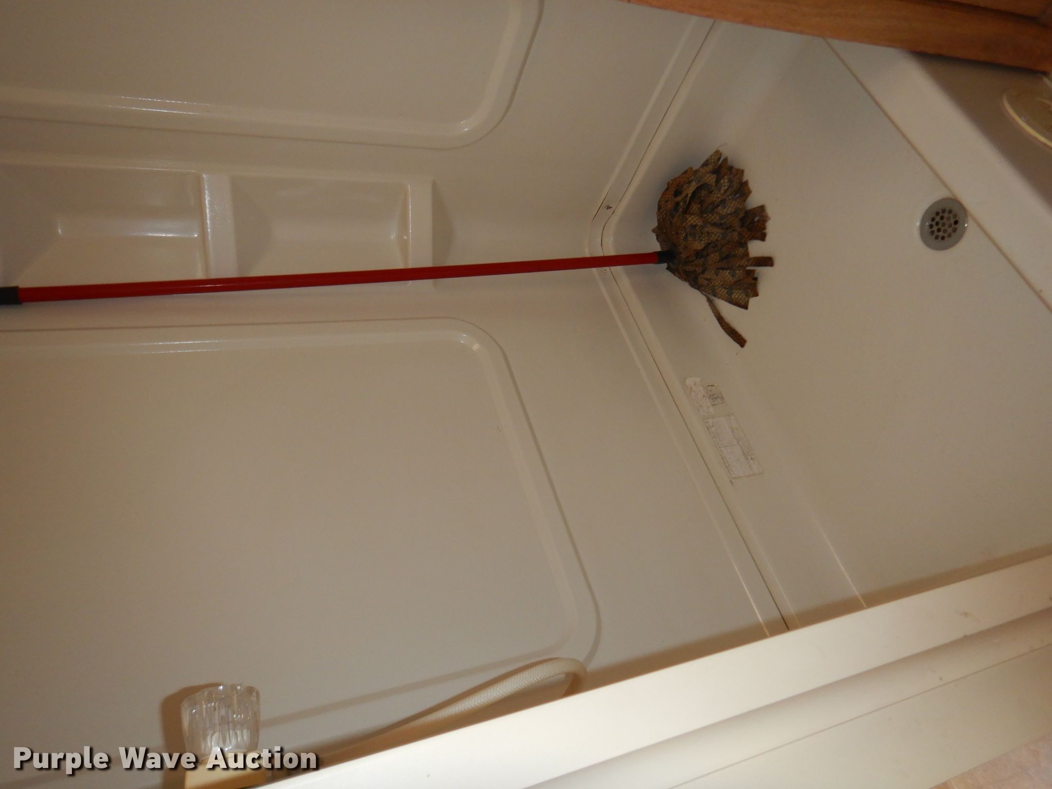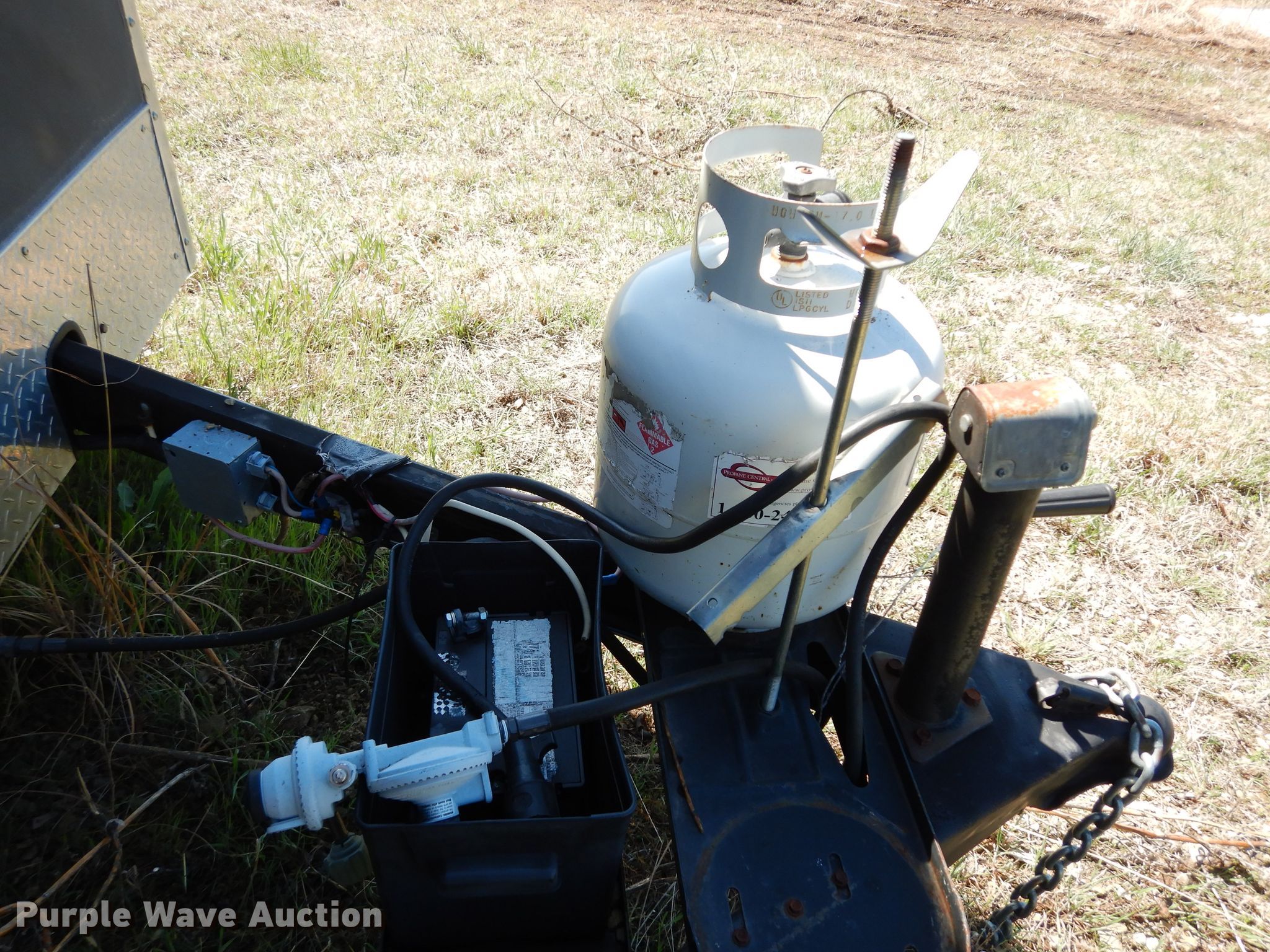 Purple Wave is selling a used Enclosed Cargo Trailer in Kansas. This item is a 2006 Forest River enclosed cargo trailer with the following: 27'L x 8'W x 88"H overall, Awning, Front living quarters, Bedroom, Bathroom, Toilet, Shower, Kitchen, Sink, Propane stove, Refrigerator/freezer, Microwave, Table with bench seats,, (2) fold up bunk beds, Turf carpet, Dual Therm roof top climate control unit, Vizio 24" television, Satellite dish, Radio, 2 5/16" ball hitch, Tandem axle, 225/75R15 tires, Screen door latch broken, Interior water damage, Awning worn