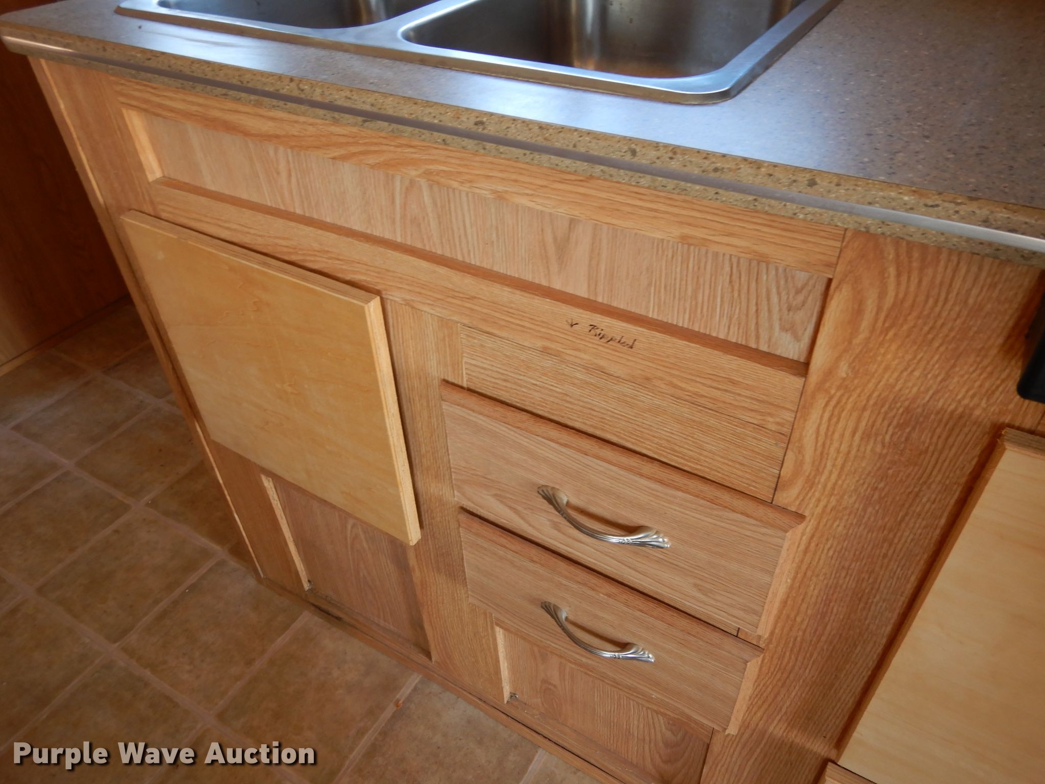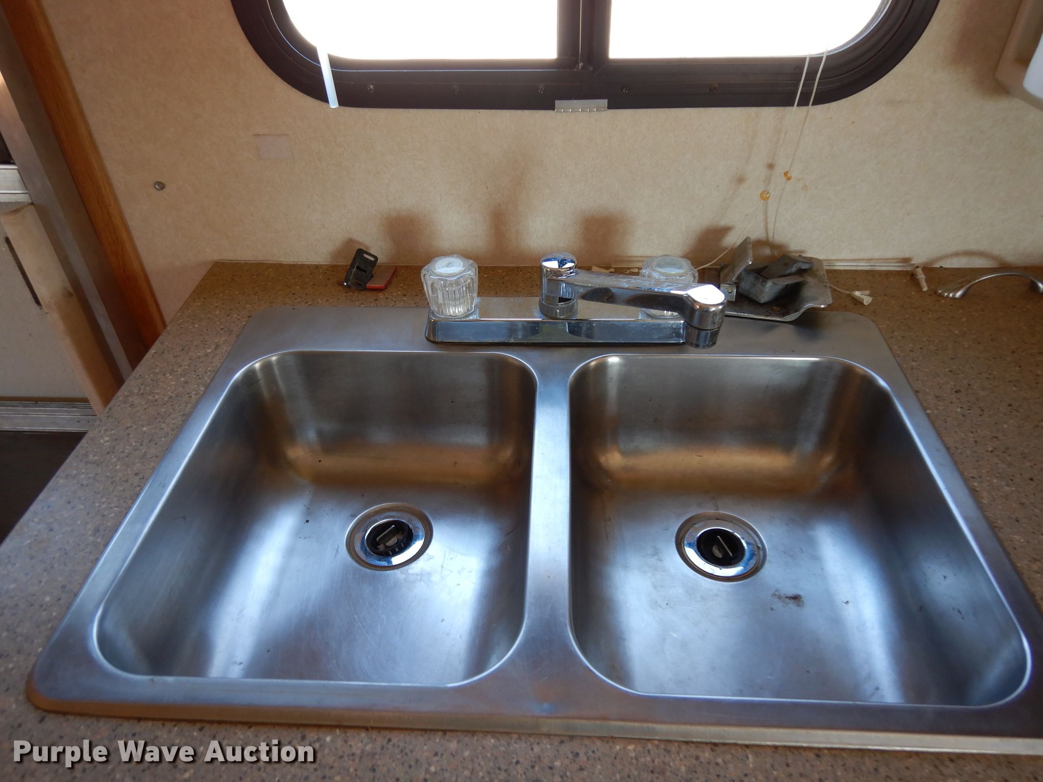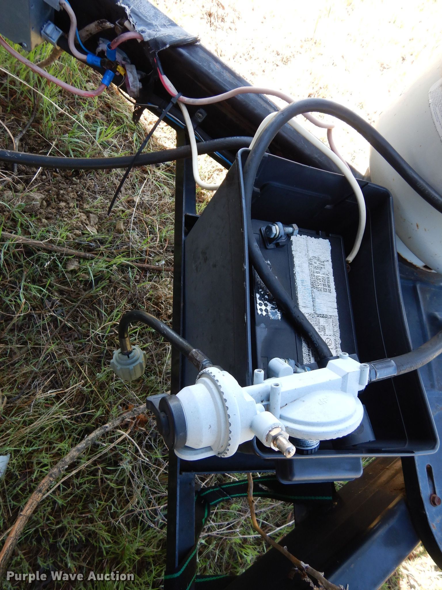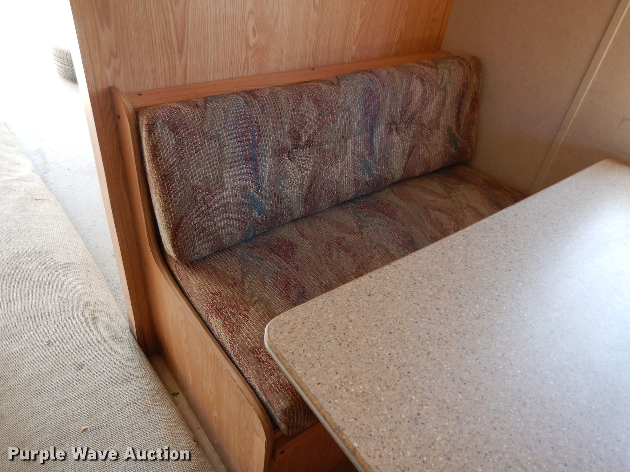 Purple Wave is selling a used Enclosed Cargo Trailer in Kansas. This item is a 2006 Forest River enclosed cargo trailer with the following: 27'L x 8'W x 88"H overall, Awning, Front living quarters, Bedroom, Bathroom, Toilet, Shower, Kitchen, Sink, Propane stove, Refrigerator/freezer, Microwave, Table with bench seats,, (2) fold up bunk beds, Turf carpet, Dual Therm roof top climate control unit, Vizio 24" television, Satellite dish, Radio, 2 5/16" ball hitch, Tandem axle, 225/75R15 tires, Screen door latch broken, Interior water damage, Awning worn