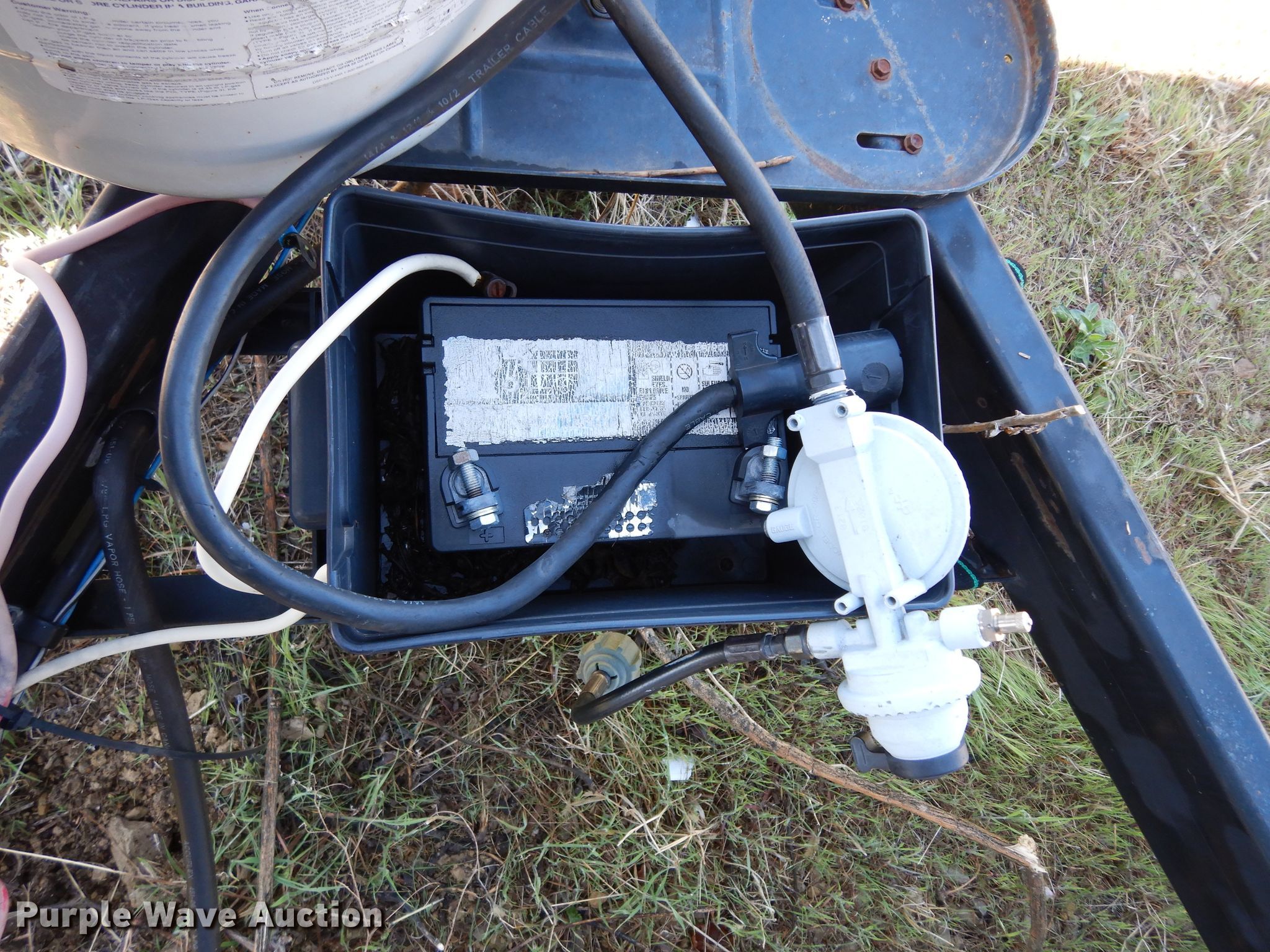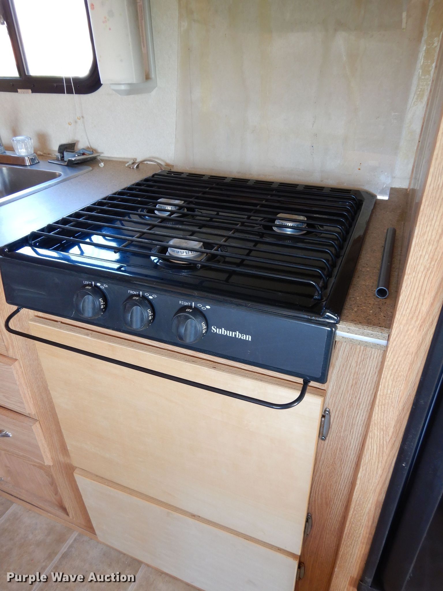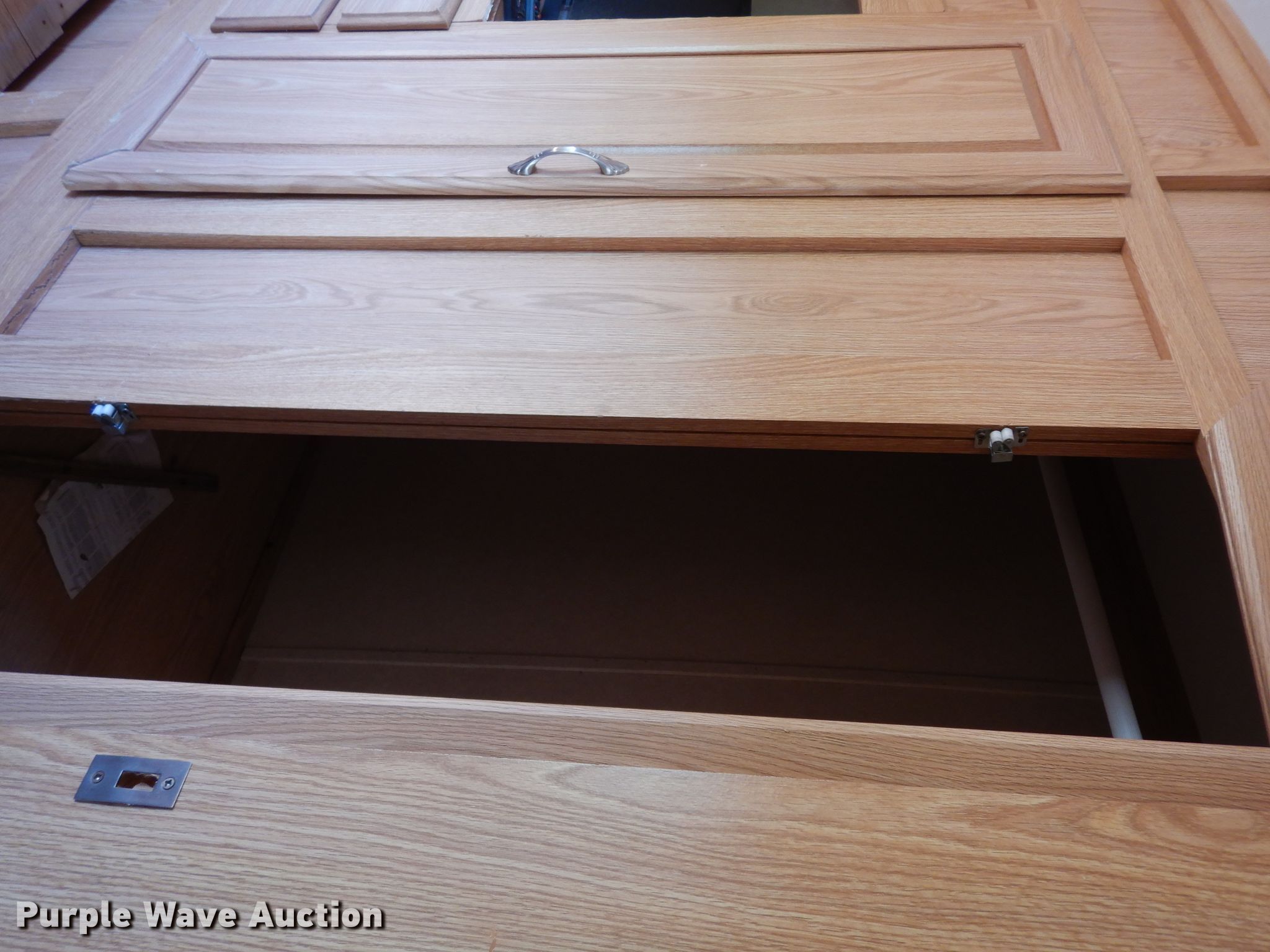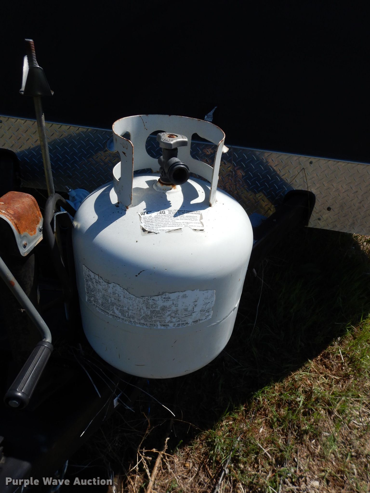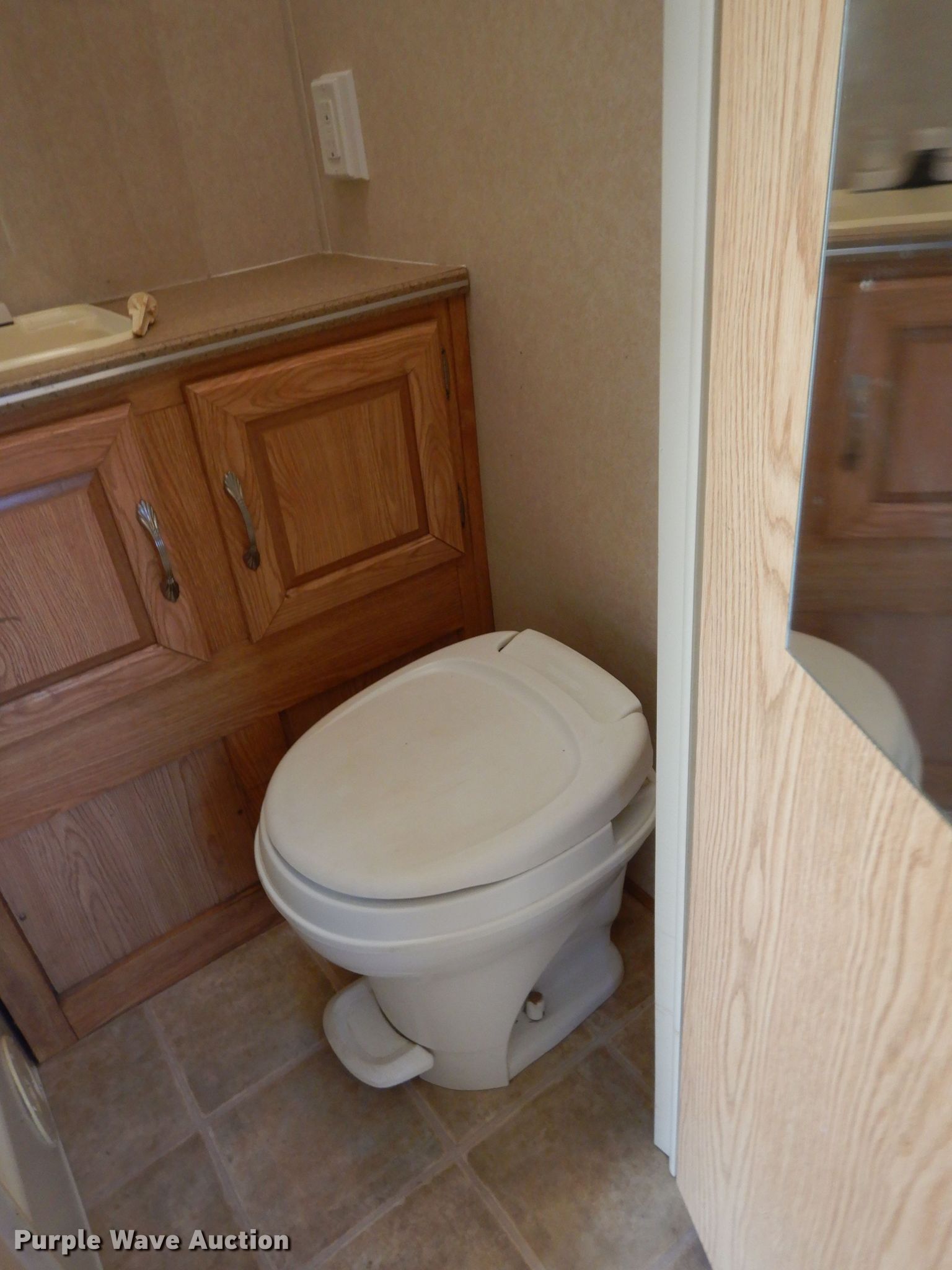Purple Wave is selling a used Enclosed Cargo Trailer in Kansas. This item is a 2006 Forest River enclosed cargo trailer with the following: 27'L x 8'W x 88"H overall, Awning, Front living quarters, Bedroom, Bathroom, Toilet, Shower, Kitchen, Sink, Propane stove, Refrigerator/freezer, Microwave, Table with bench seats,, (2) fold up bunk beds, Turf carpet, Dual Therm roof top climate control unit, Vizio 24" television, Satellite dish, Radio, 2 5/16" ball hitch, Tandem axle, 225/75R15 tires, Screen door latch broken, Interior water damage, Awning worn