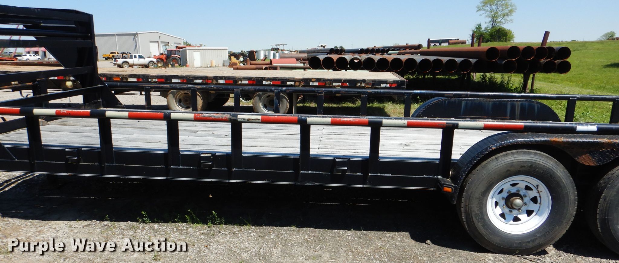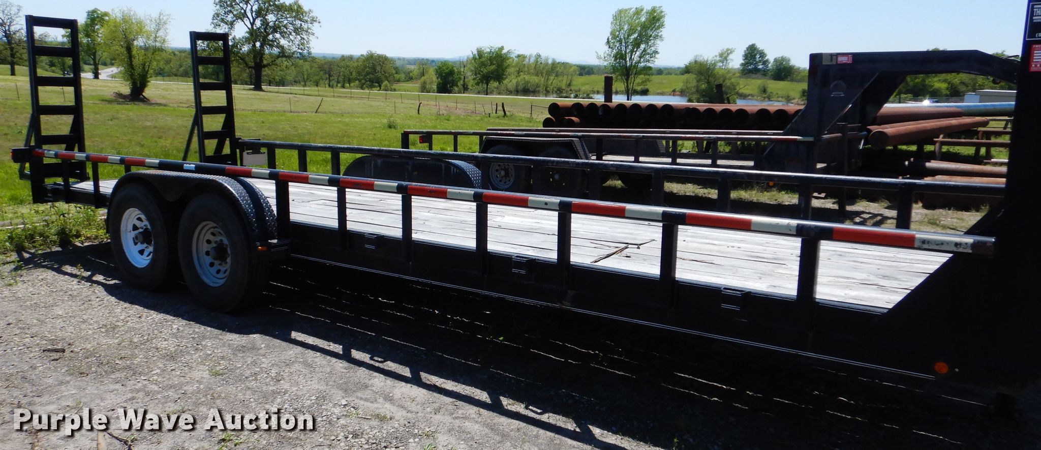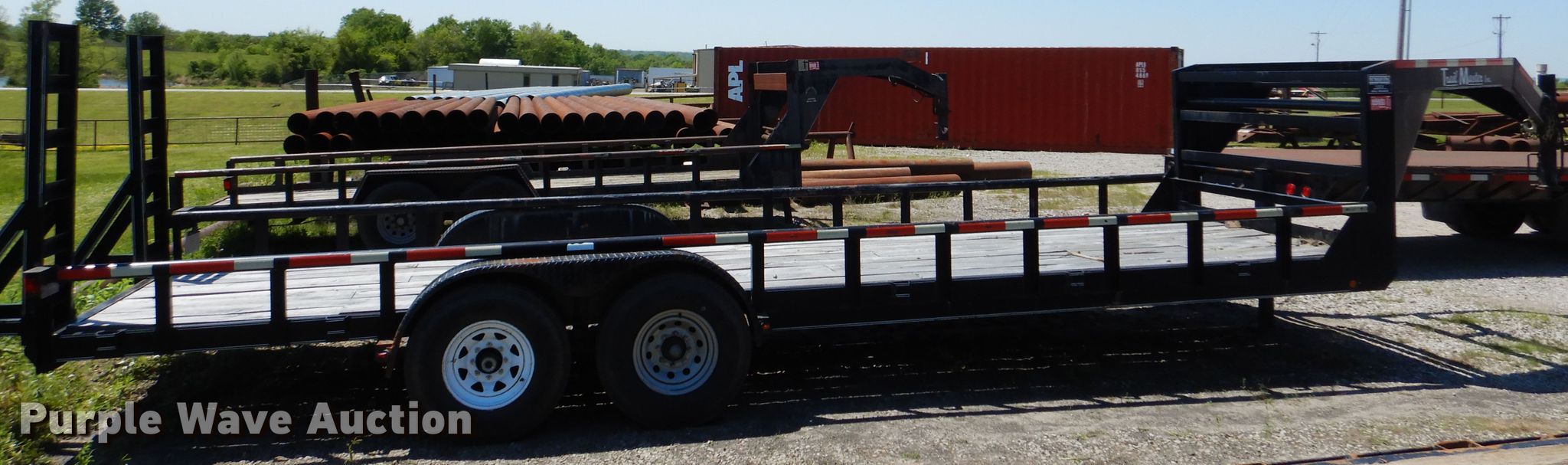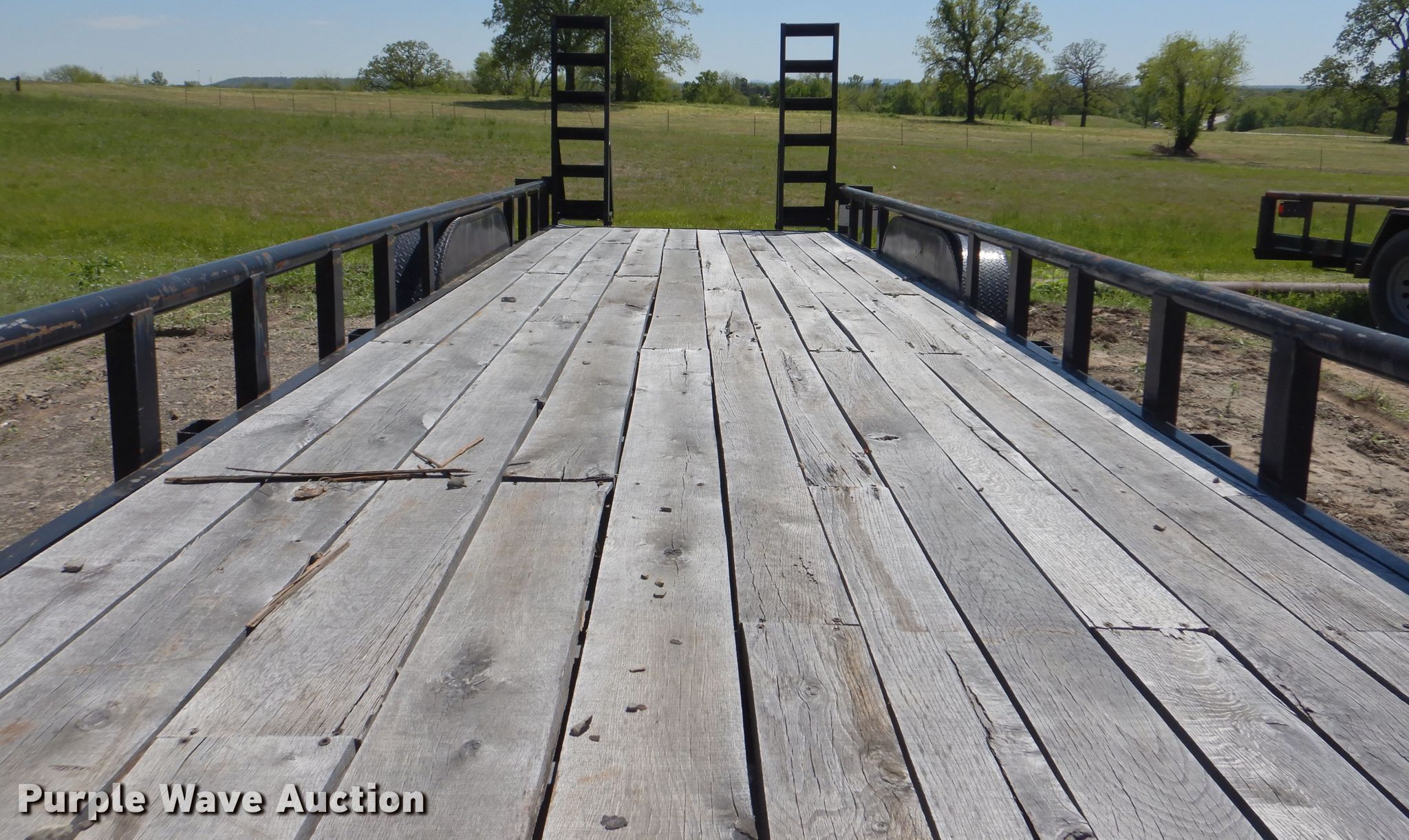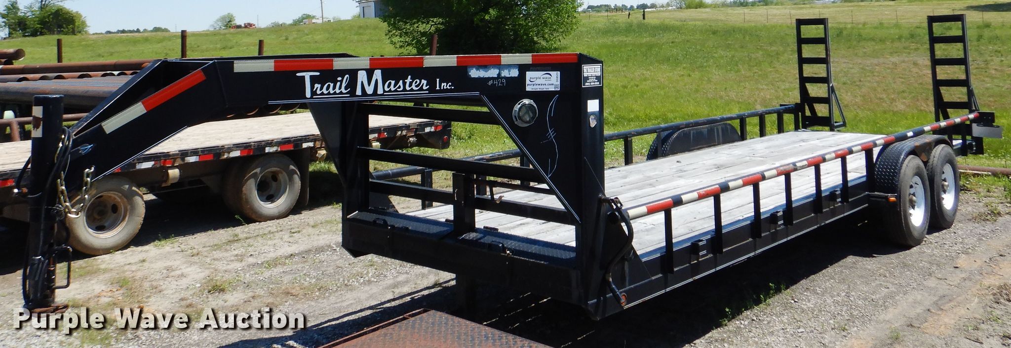 Purple Wave is selling a used Equip. Trailer in Oklahoma. This item is a 2007 Trailmaster equipment trailer with the following: 32'L x 100"W overall, 28'L x 83"W deck, Wood deck, 5'L ramps, Single leg landing gear, Spring suspension, Electric brakes, Tandem axle, ST225/90R15 tires, Unit# 429