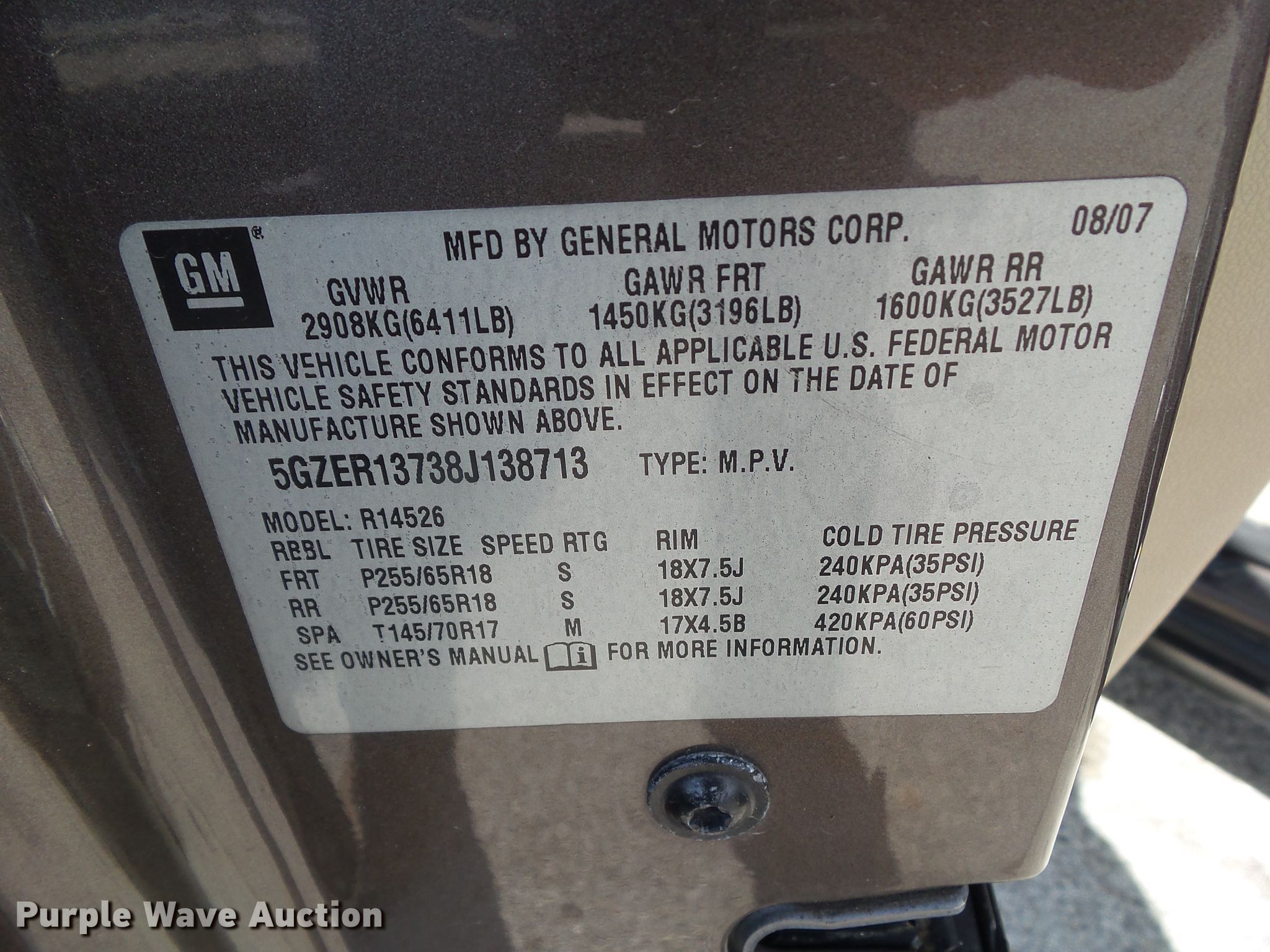 2008 Saturn Outlook XE SUV. 102,287 miles on odometer. Engine Displacement: 3.6L V6 DOHC 24V, Cylinders: 6, Fuel type: Gas. Interior AC, Heat, Powered windows, Powered locks, Cruise control. Tires Size: 255/65R18. Notes Windshield cracked. Iowa title. Seller is an Iowa licensed motor vehicle dealer. The buyer may be required to pay sales tax and/or registration fees to the dealer prior to taking possession. Title will be assigned and distributed by the dealer. Please contact the seller for distribution questions. 5GZER13738J138713. Motor Kars II. 802 1st Ave. Perry, IA 50220