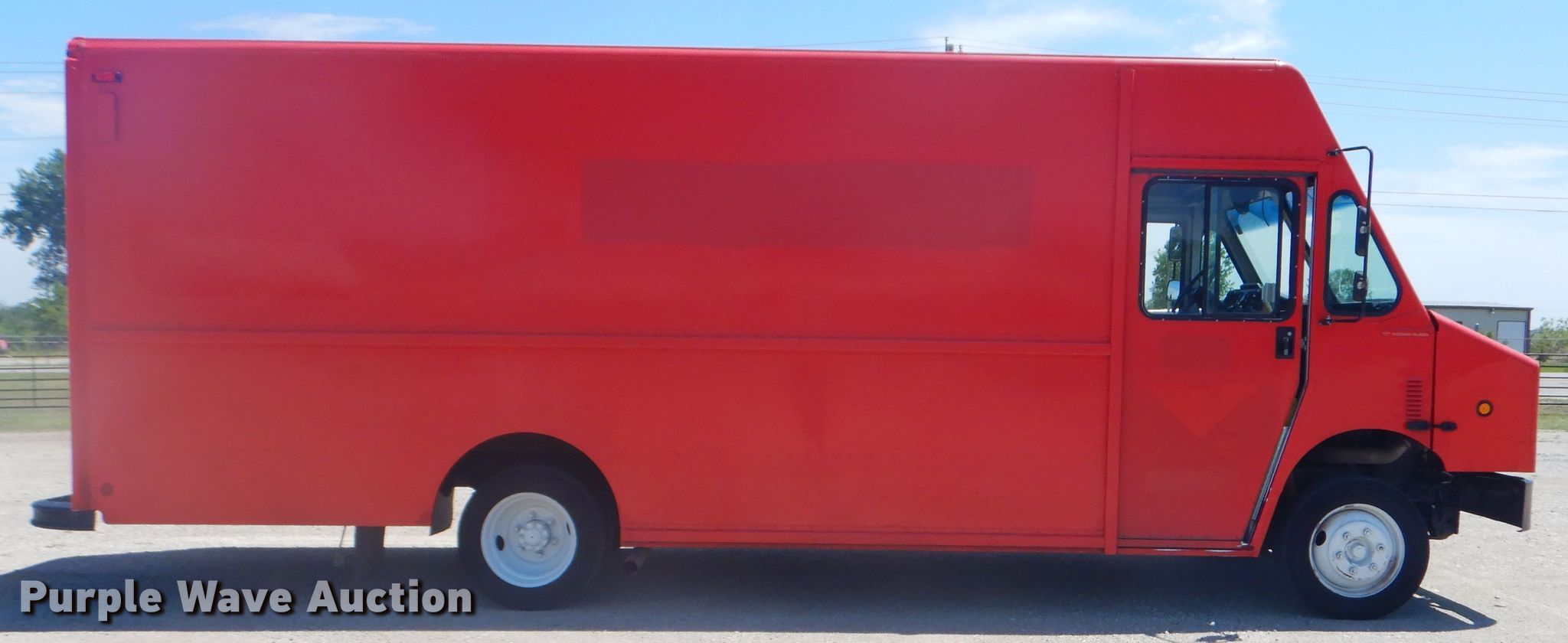 Purple Wave is selling a used Delivery Truck or Van in Oklahoma. This item is a 2002 Freightliner MT45 delivery truck with the following: 99,917 miles on odometer, Cummins ISB 5.9L L6 diesel engine, Automatic transmission, Single axle, AC and heat, Cruise, Whiting body, 18'L x 96"W x 84"H, Aluminum floor, Spring suspension, Hydraulic brakes, 225/70R19.5 tires
