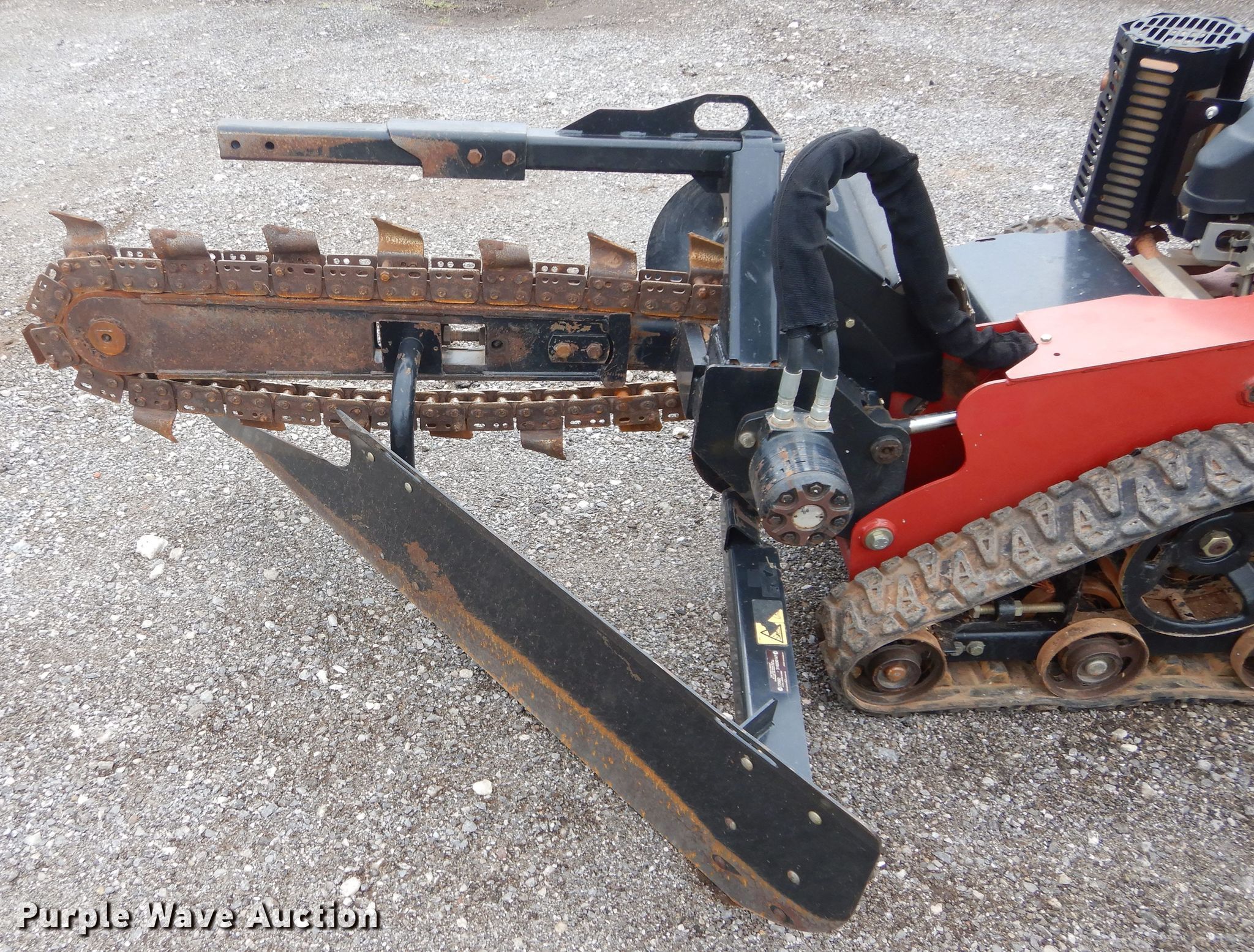 Purple Wave is selling a used Trencher or Rock Saw in Oklahoma. This item is a 2015 Toro 22980 trencher with the following: 313 hours on meter, Kawasaki FS481V single cylinder gas engine, Hydrostatic transmission, 48"L trenching boom, 6"W rubber tracks