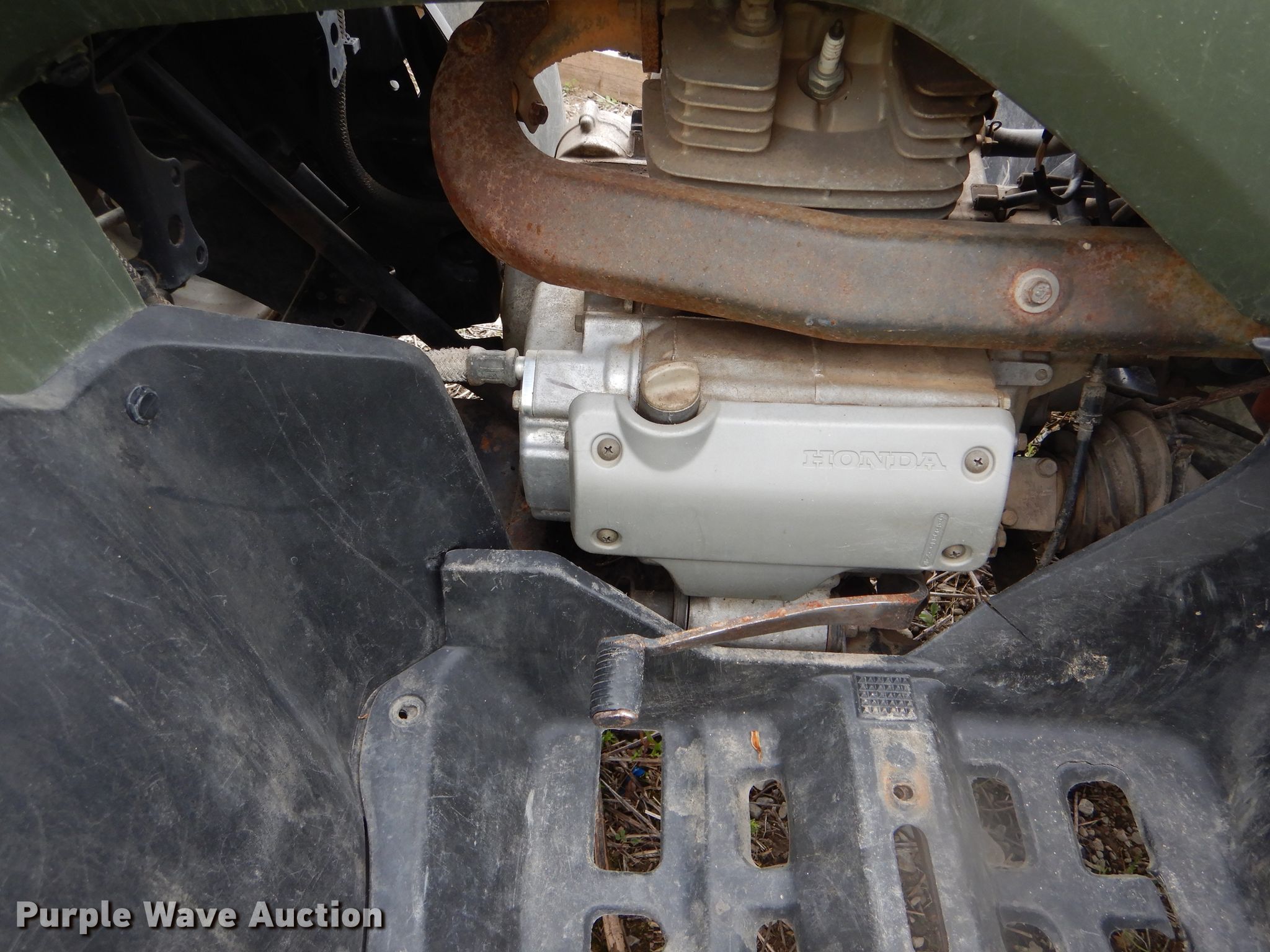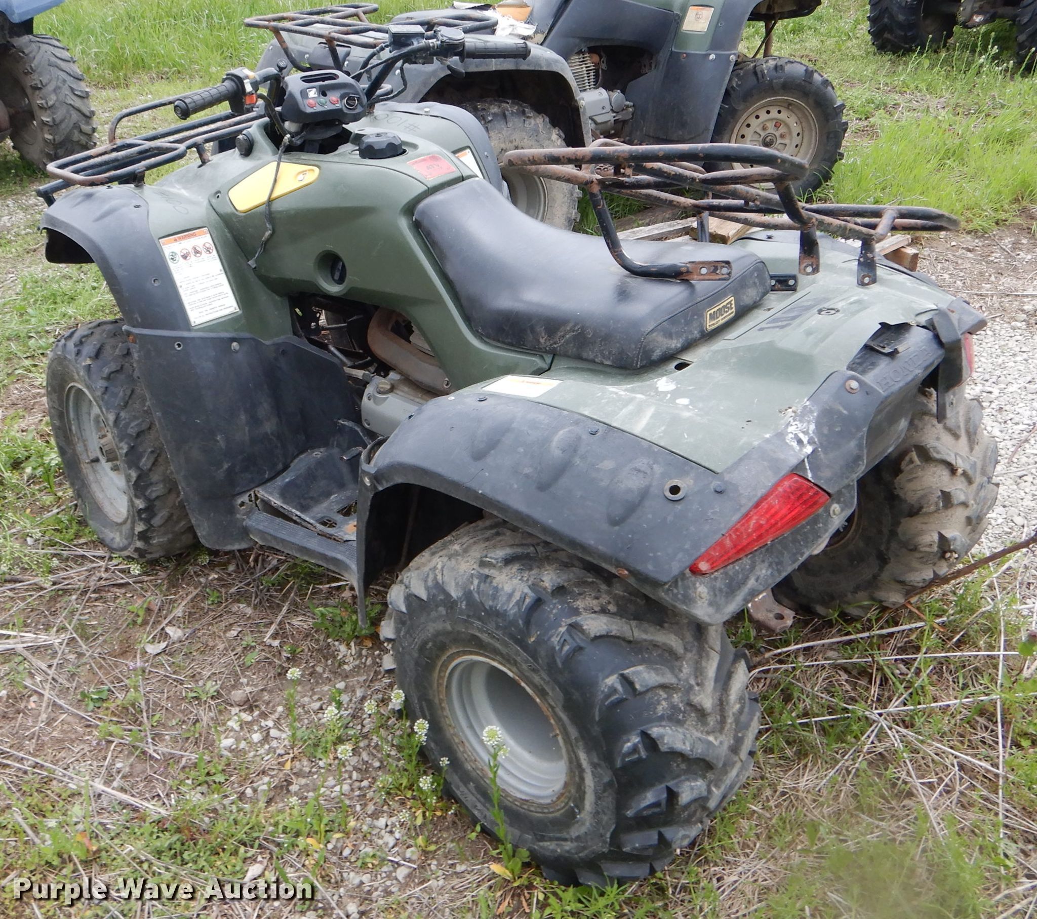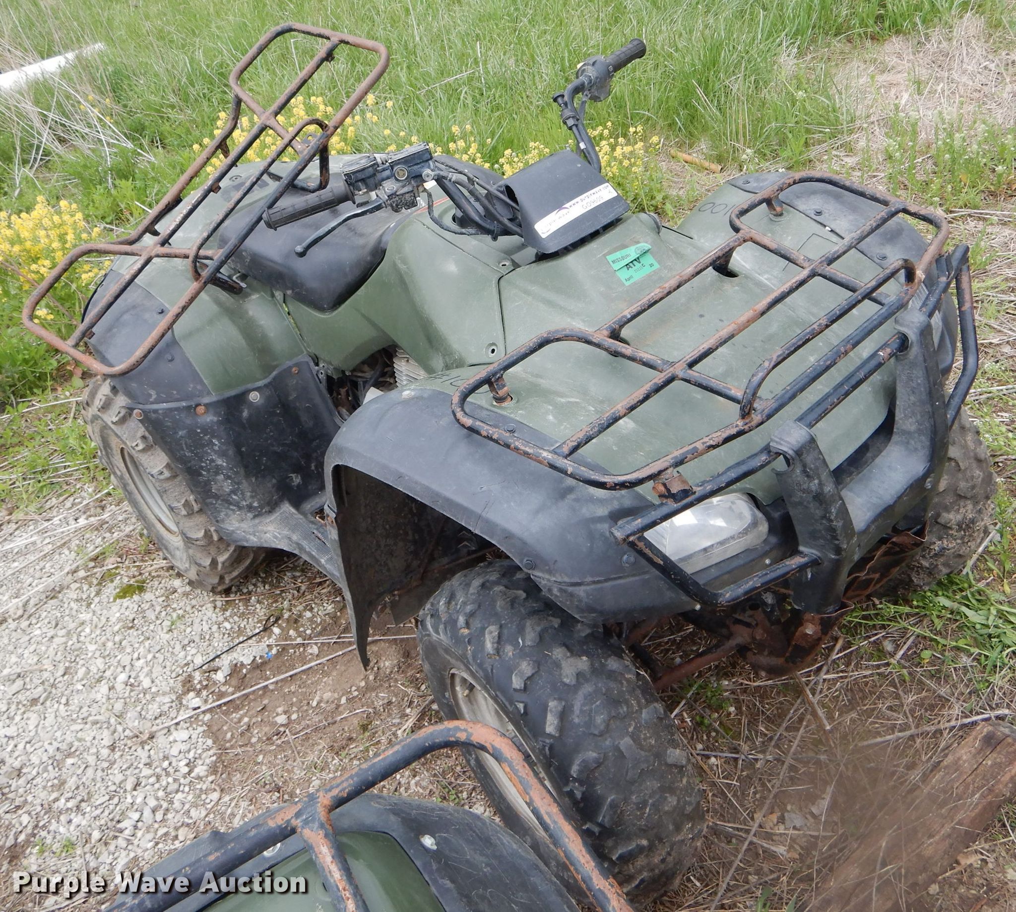 Purple Wave is selling a used ATV in Missouri. This item is a 2005 Honda ATV with the following: Single cylinder gas engine, Five speed manual transmission, 24x8-12 front tires, 25x12-9 rear tires, Unknown operating condition, Unit# 100