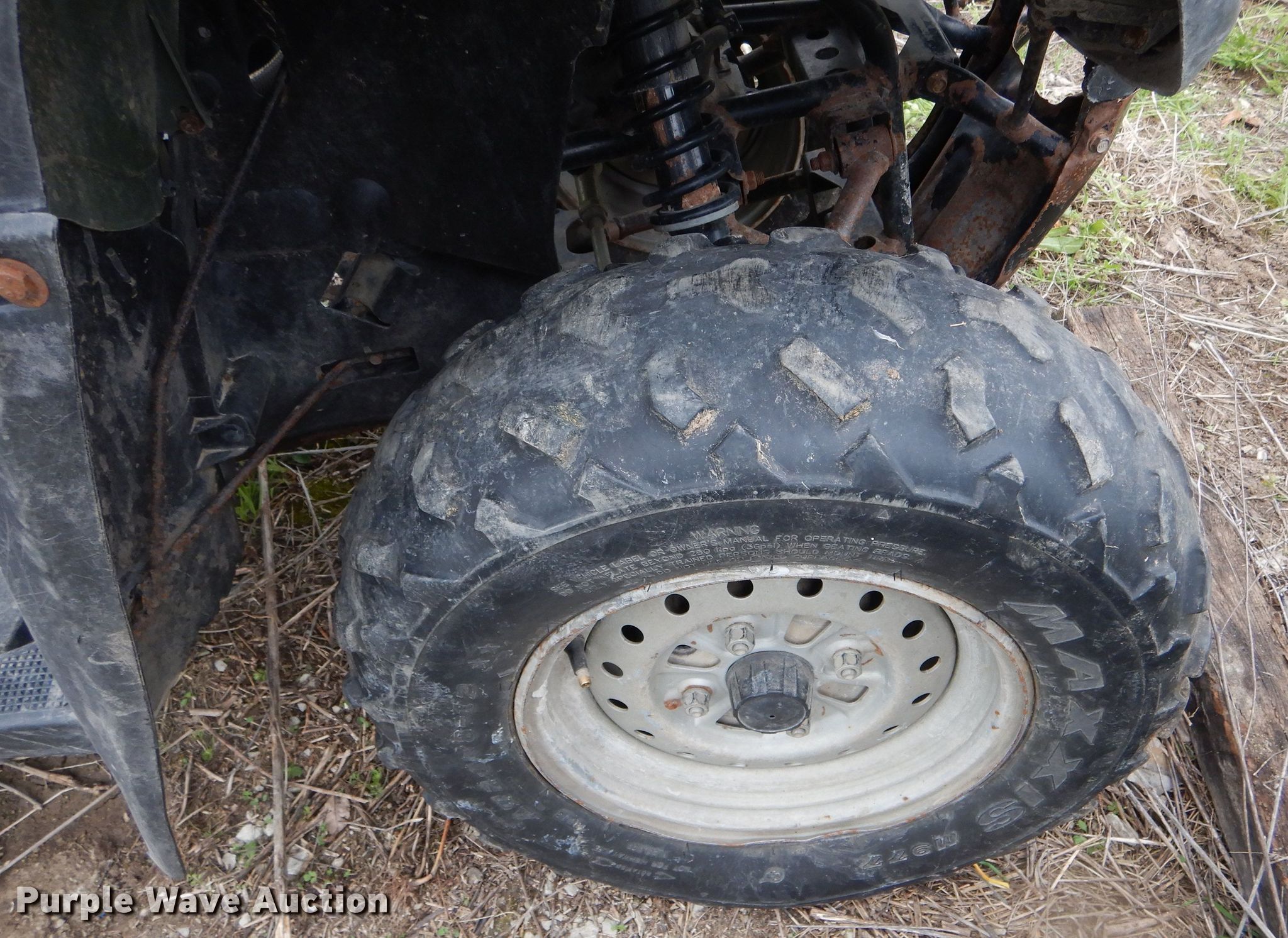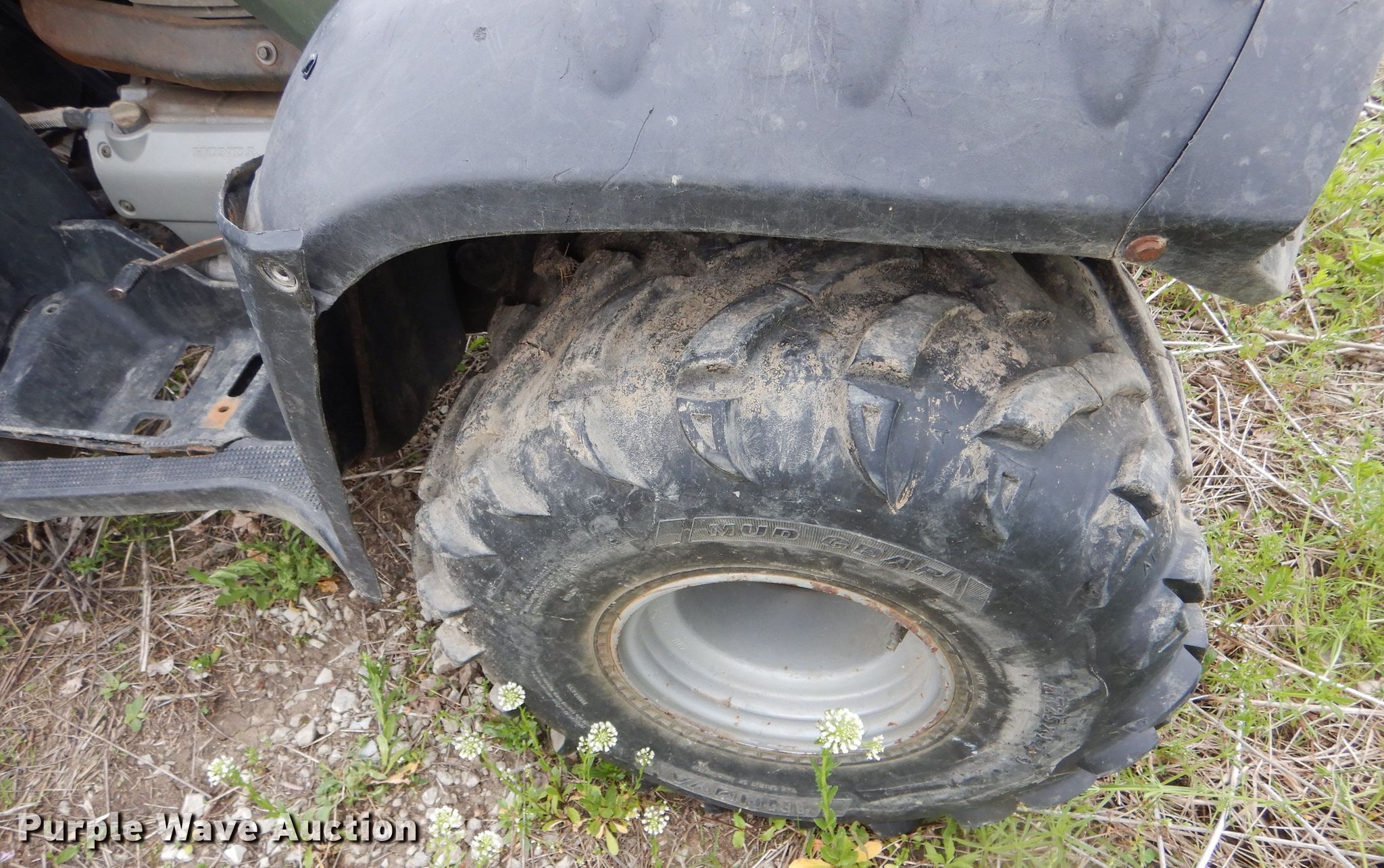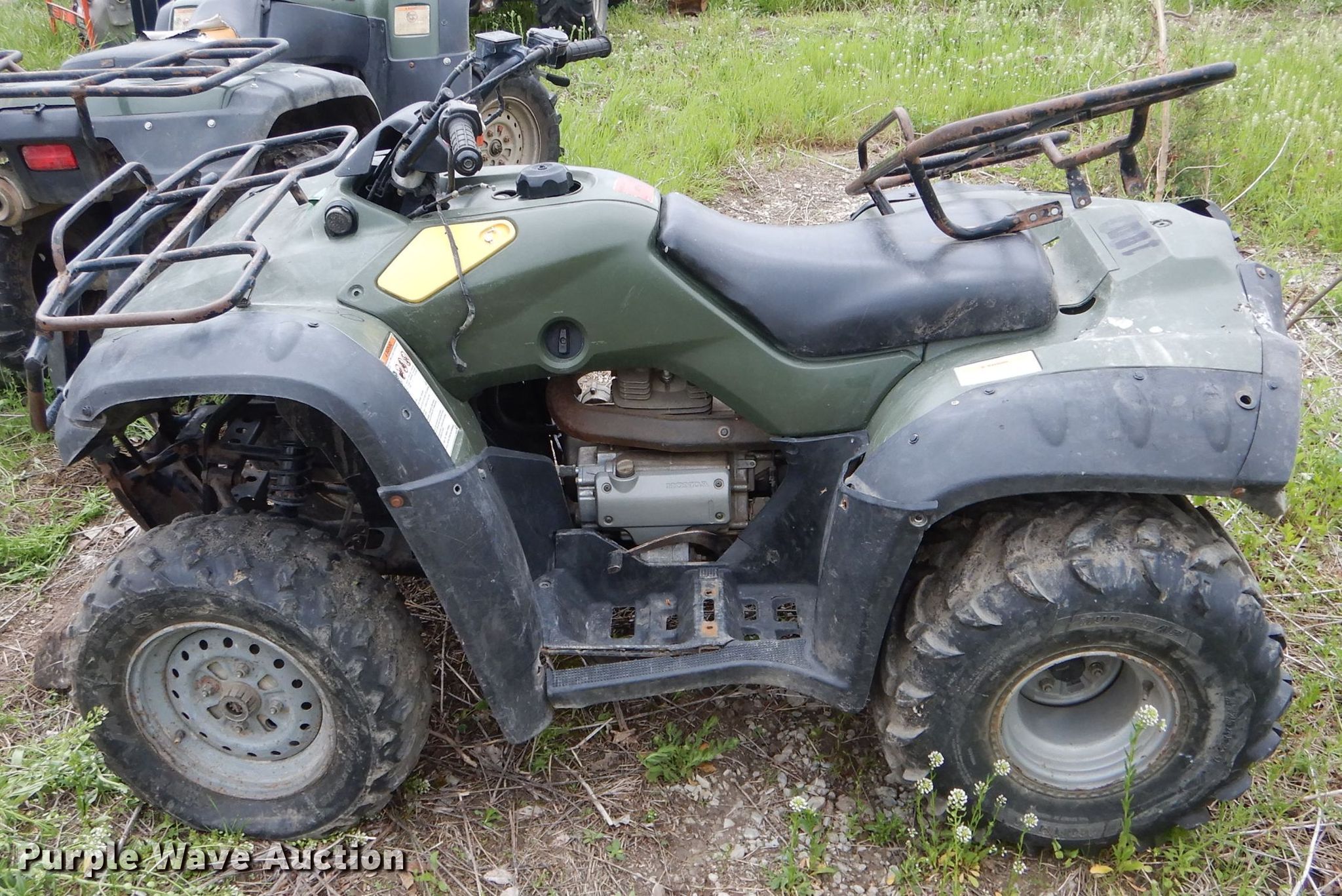 Purple Wave is selling a used ATV in Missouri. This item is a 2005 Honda ATV with the following: Single cylinder gas engine, Five speed manual transmission, 24x8-12 front tires, 25x12-9 rear tires, Unknown operating condition, Unit# 100