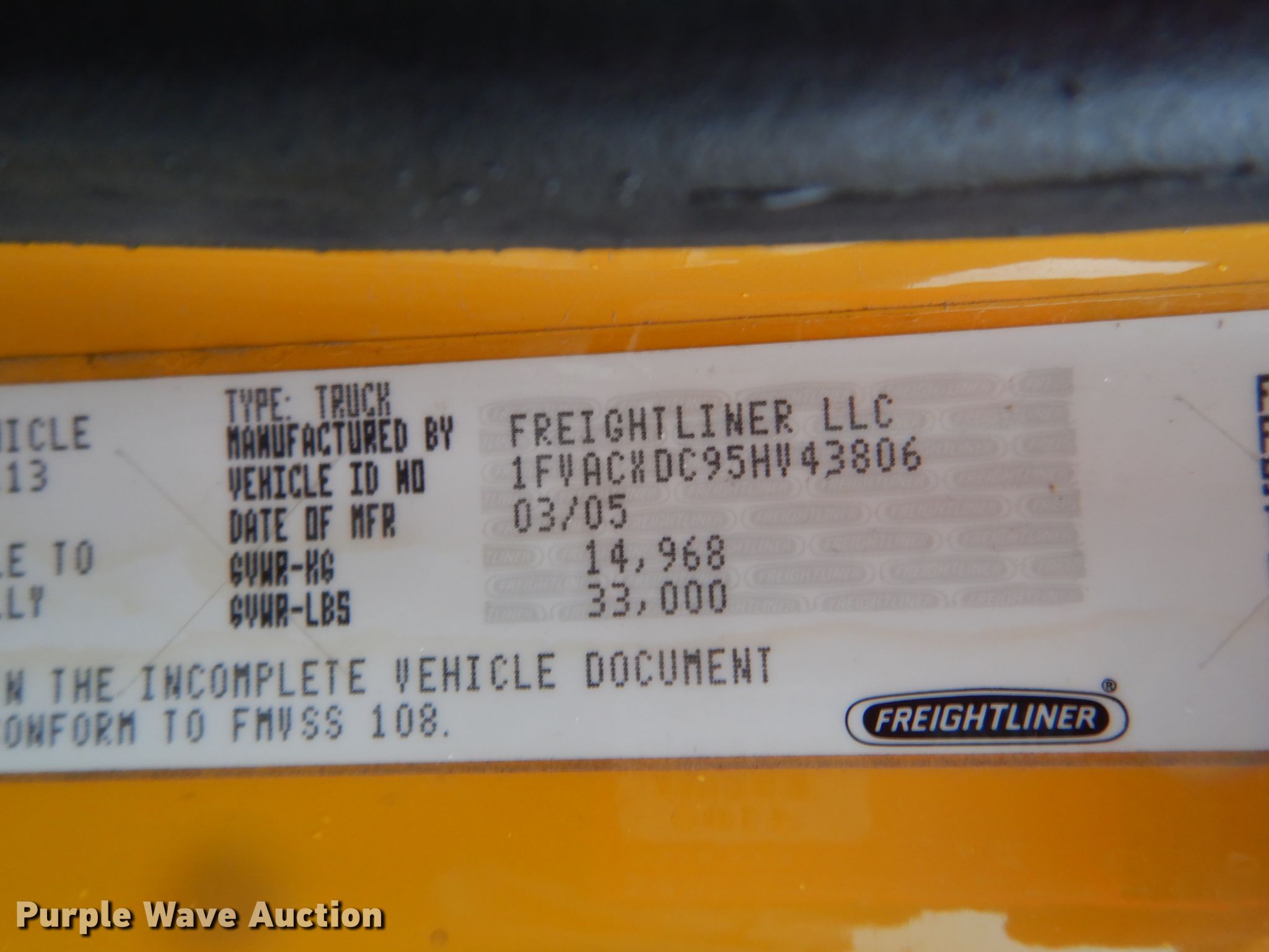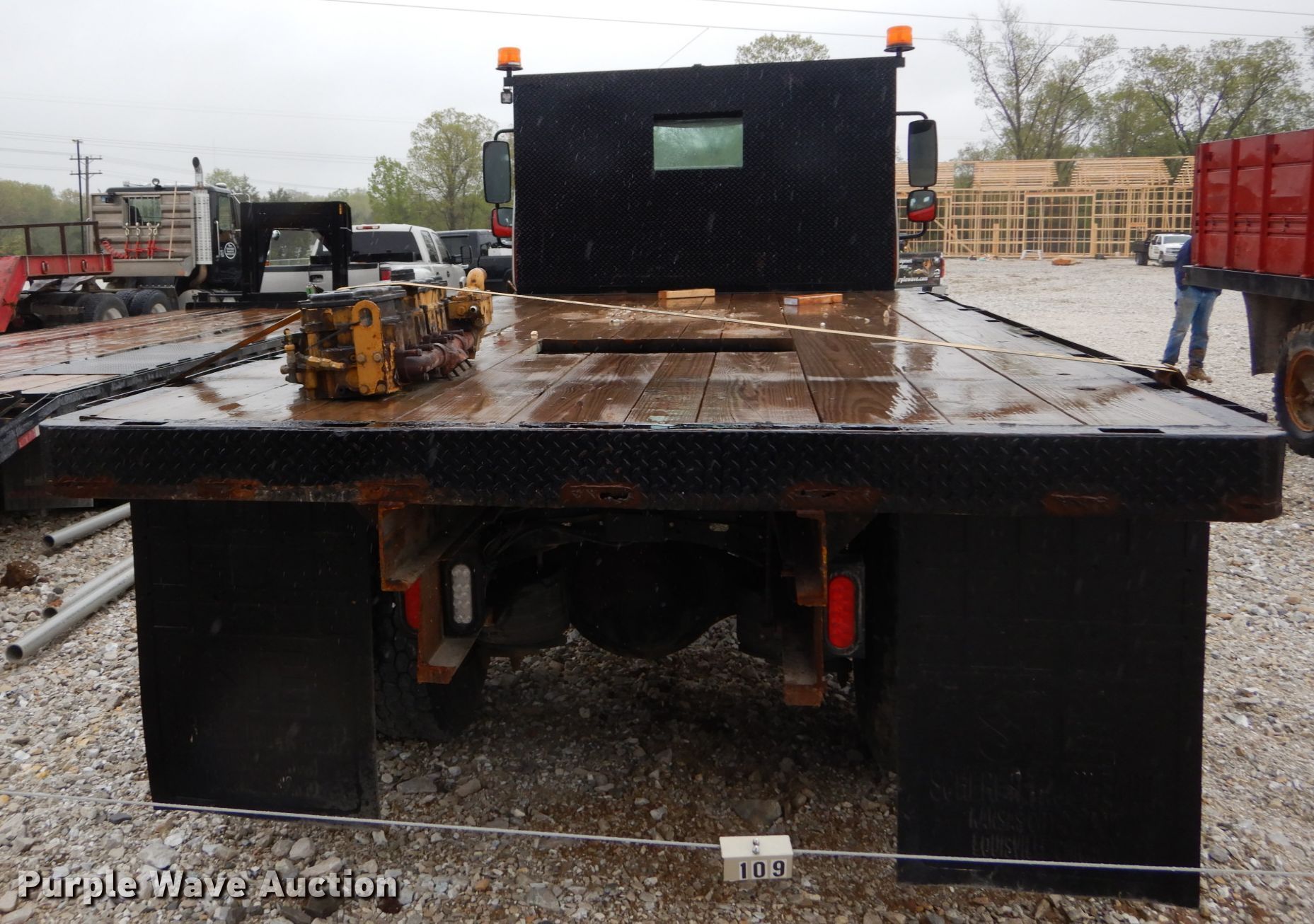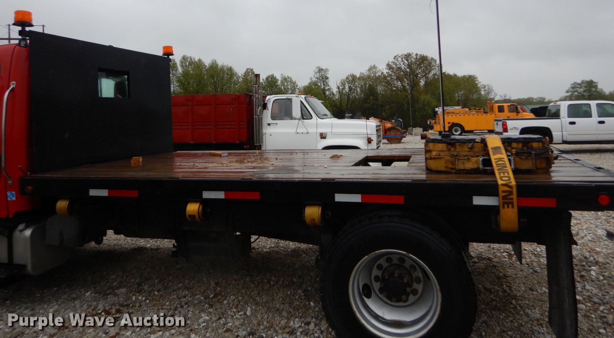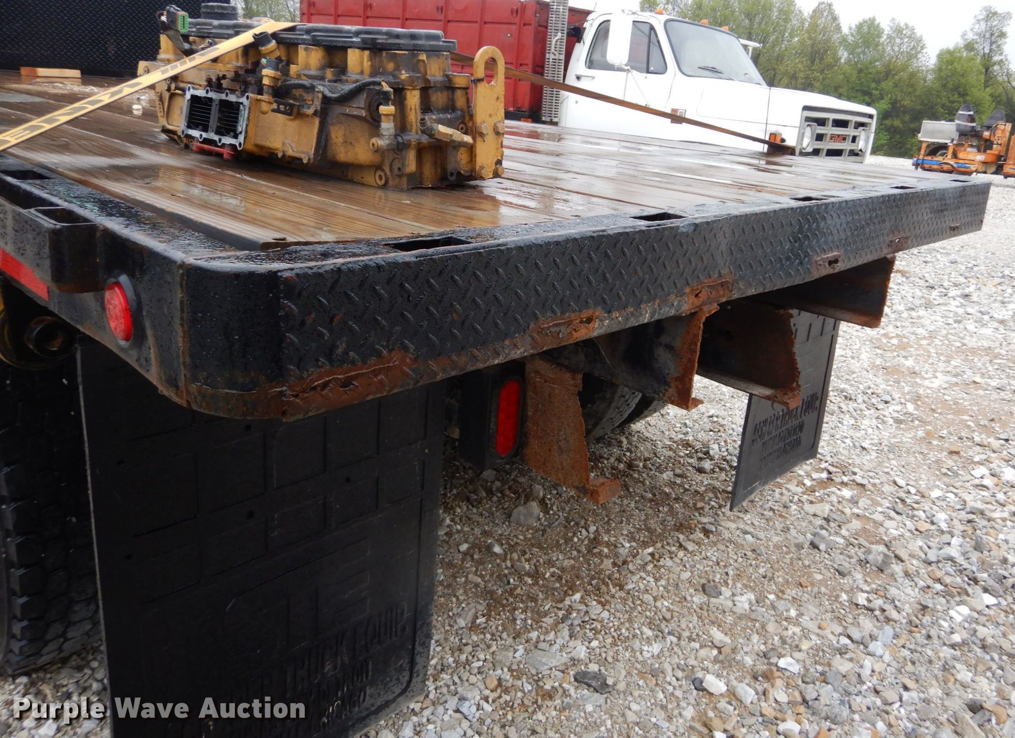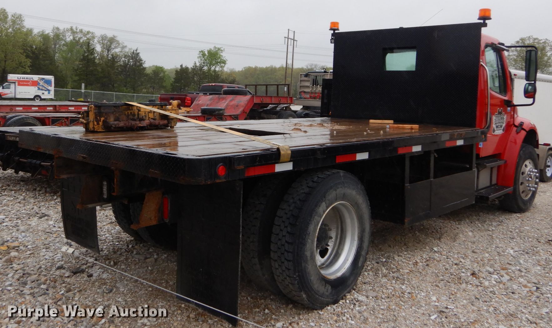 Purple Wave is selling a used Flat Bed Truck in Missouri. This item is a 2005 Freightliner Business Class M2 flatbed truck with the following: 267,974 miles on odometer, Caterpillar C7 7.2L L6 diesel engine, Six speed manual transmission, Single axle, AC and heat, 15'L x 100"W flatbed, Gooseneck hitch, Spring over air suspension, Air brakes, 196" wheelbase, 11R22.5 tires, GVWR 33,000 lbs, Non-operational engine, Non-operational unit