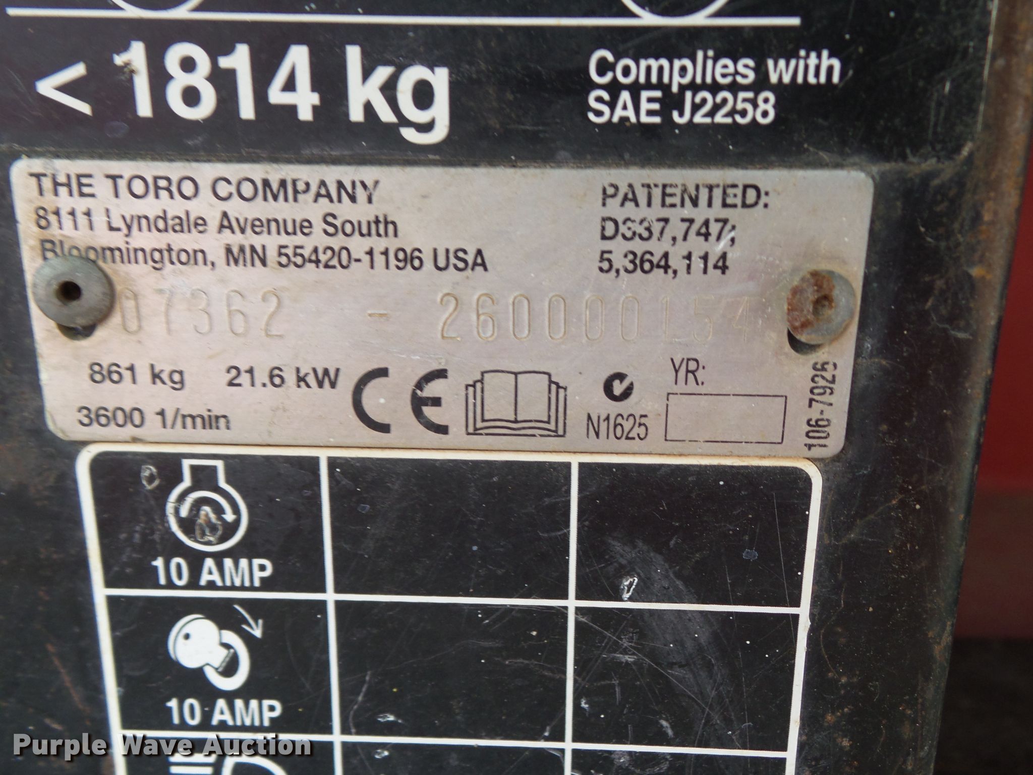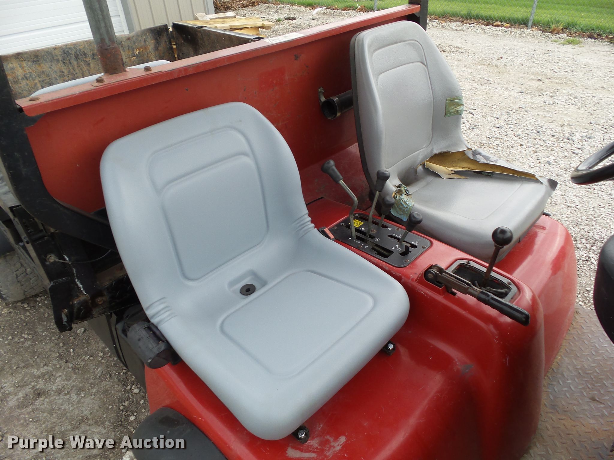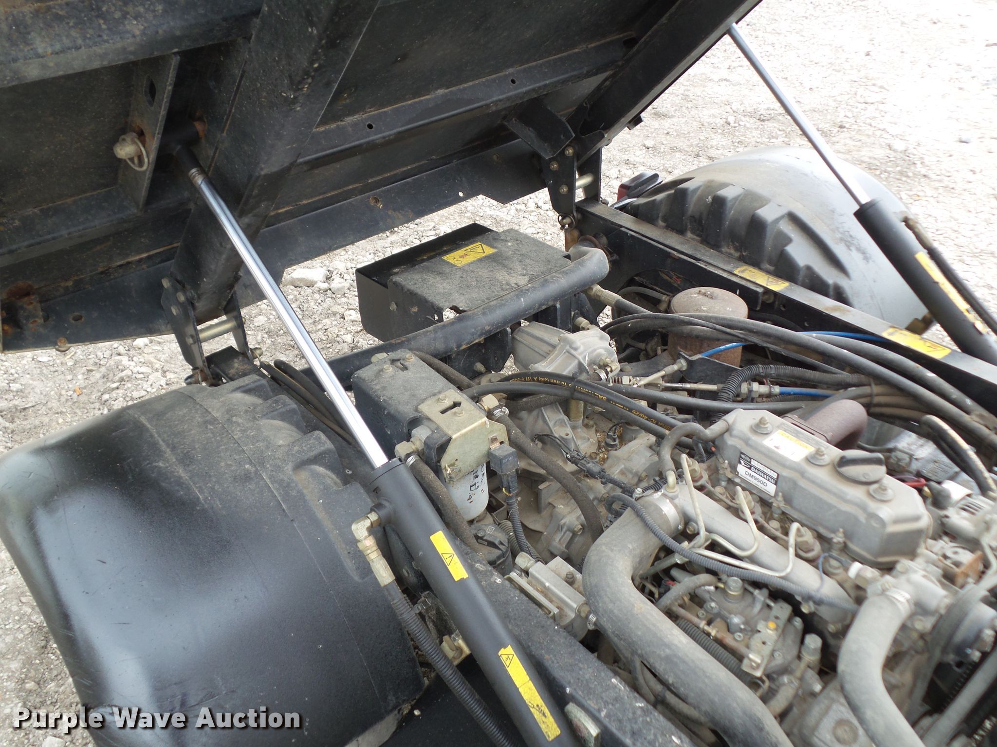 Purple Wave is selling a used Utility Vehicle in Iowa. This item is a Toro Workman 3300D utility vehicle with the following: 4,095 hours on meter, Daihatsu three cylinder diesel engine, Serial 050705007, Electric start, Manual transmission, 3F-1R gears, Canopy, Two passenger capacity, 56" x 68"W hydraulic dump bed, 540 PTO, Single rear hydraulic remote, 10.00-10 front tires, 24 x 13 x 12NHS rear tires, Serial 07362-260000154