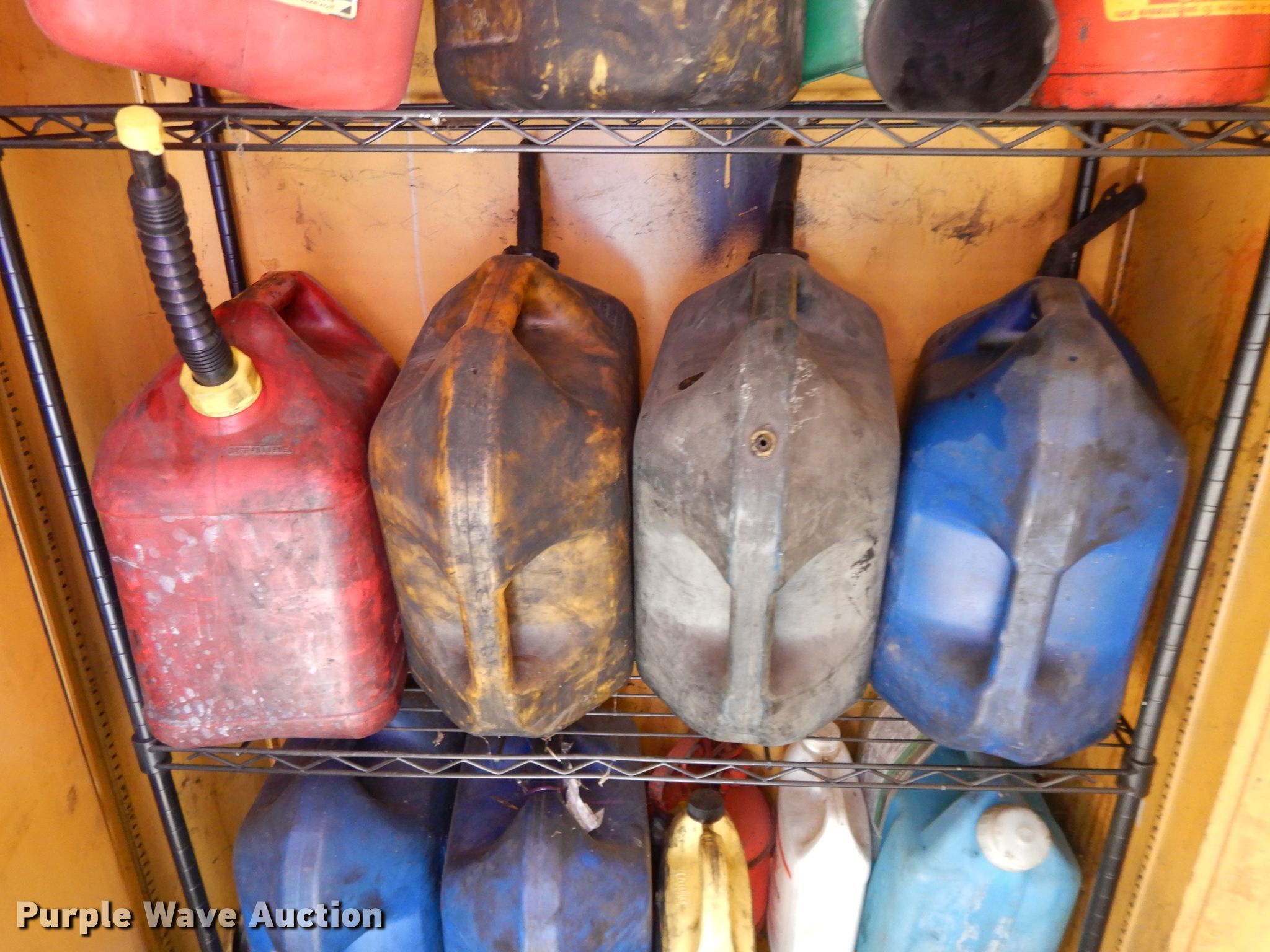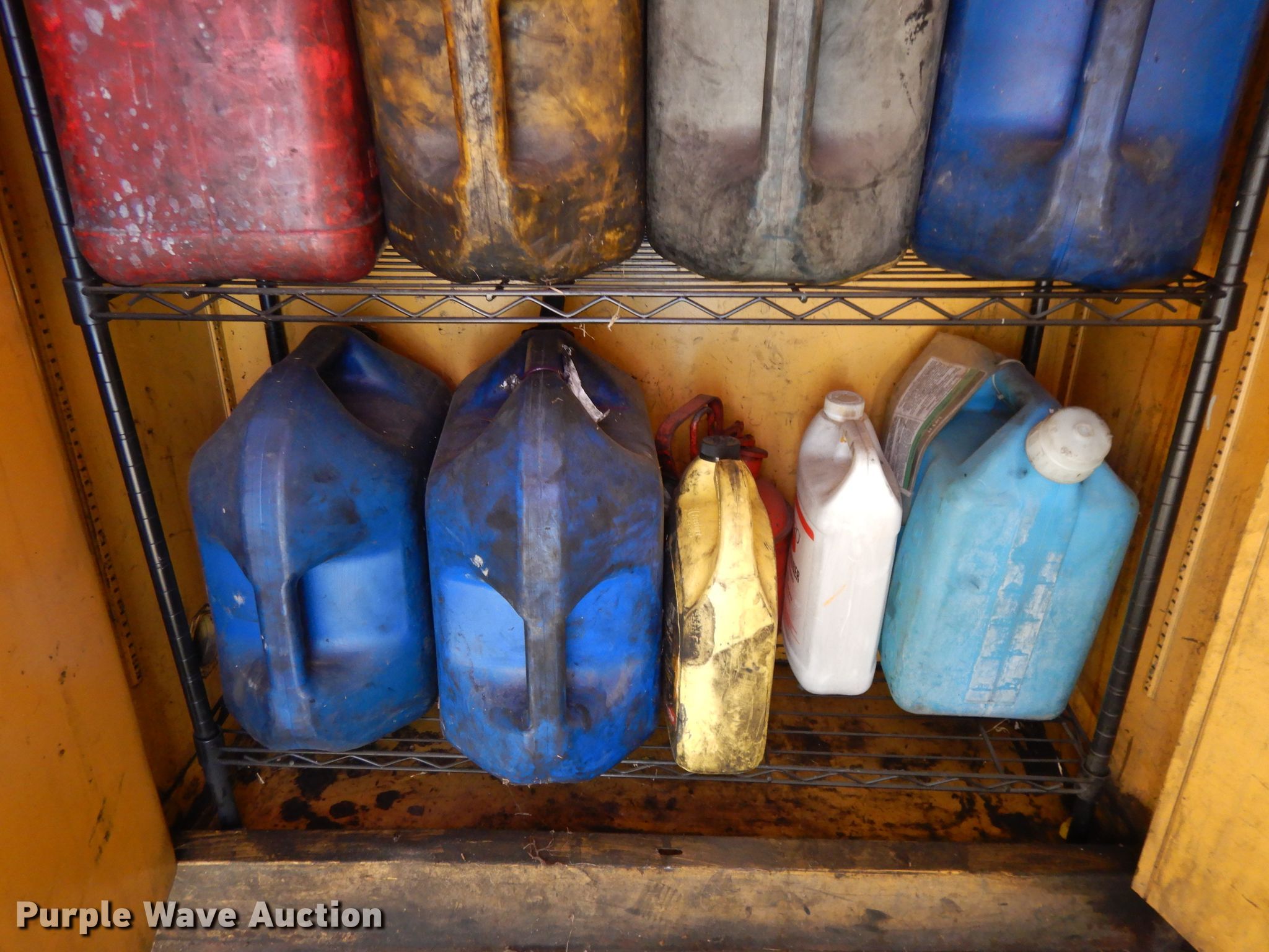 Purple Wave is selling a used Fuel and Lube in Kansas. This item is a Flammable storage cabinet with the following: Fuel cans