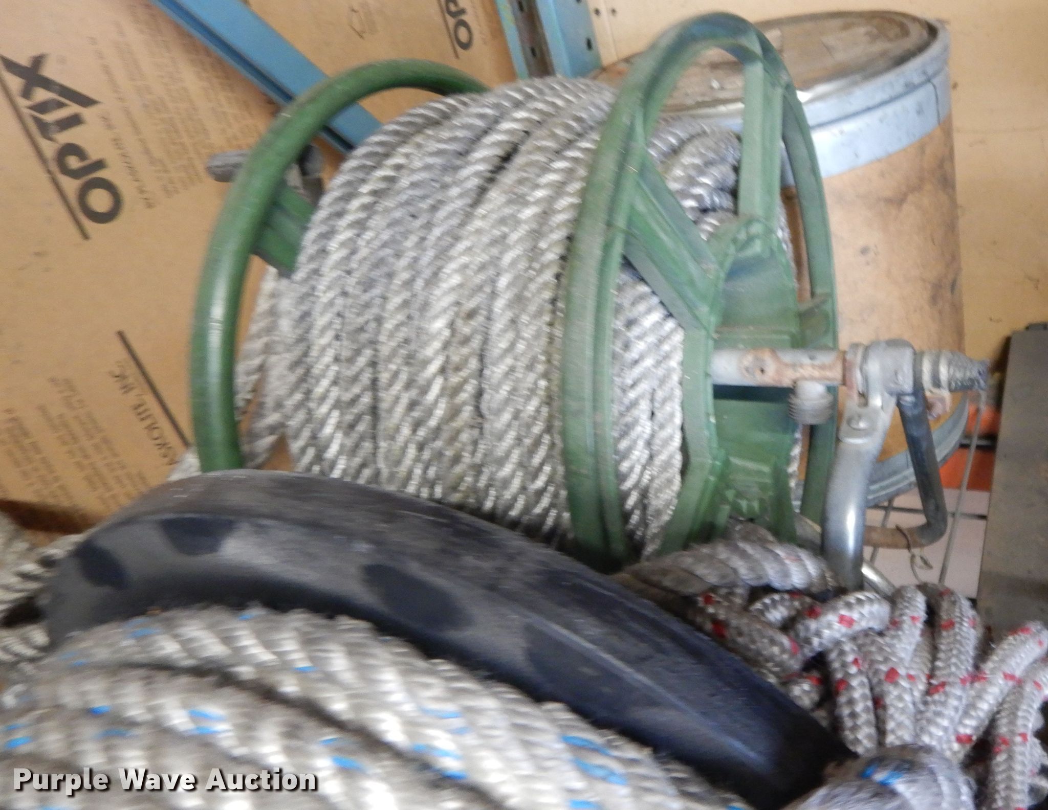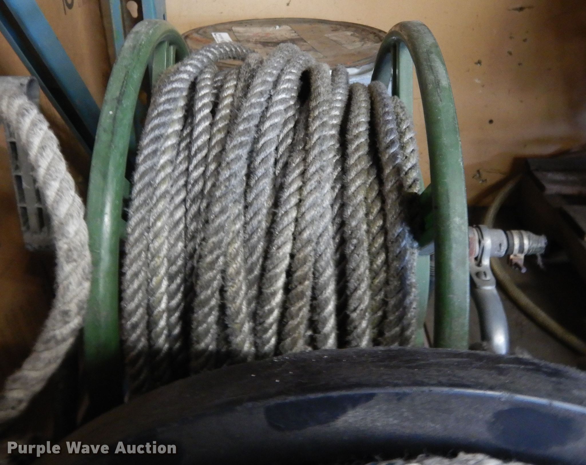 Purple Wave is selling a used Tools in Kansas. This item is a Tools with the following: (2) rope reels, Barrel with assorted rope lengths