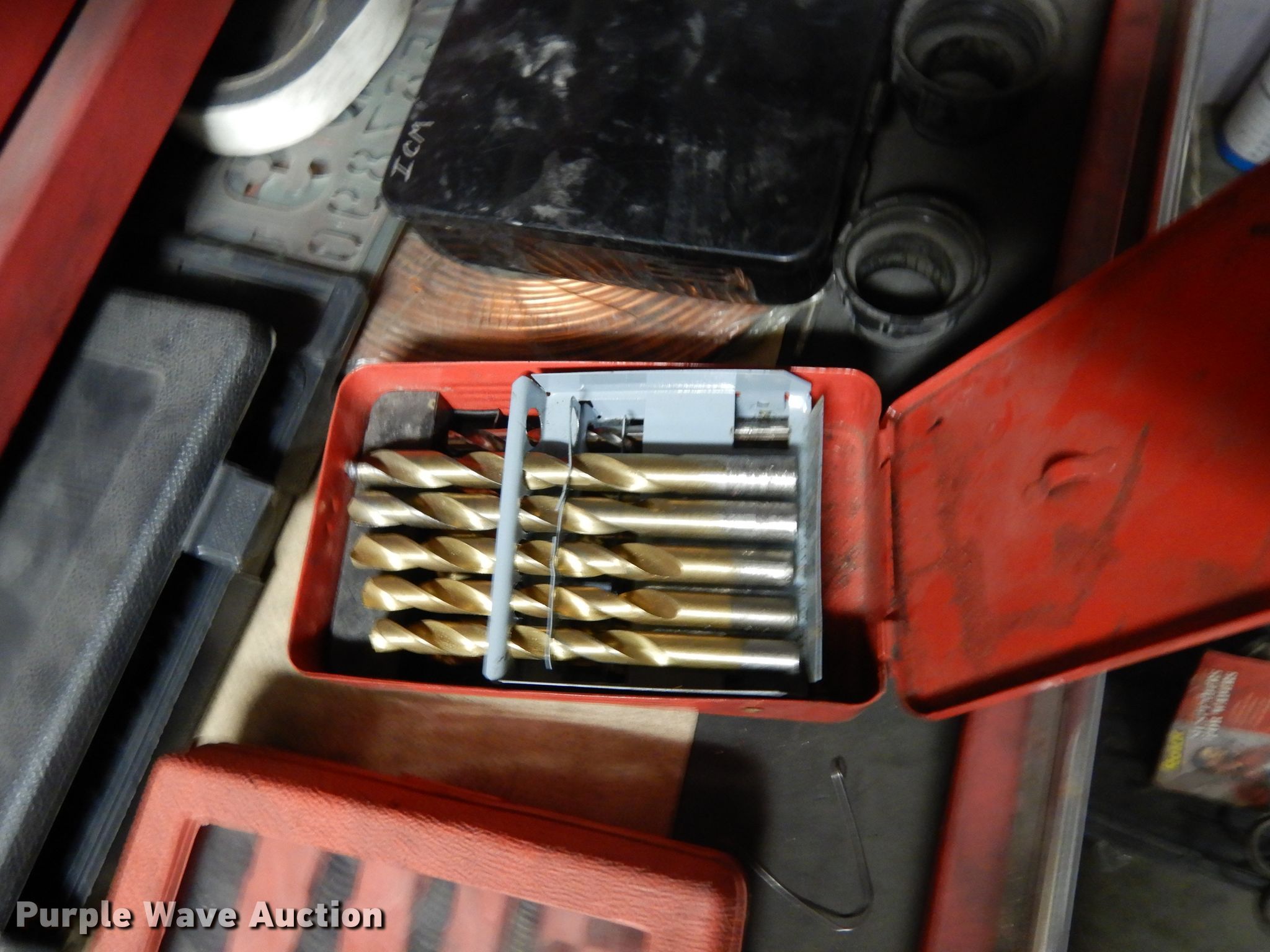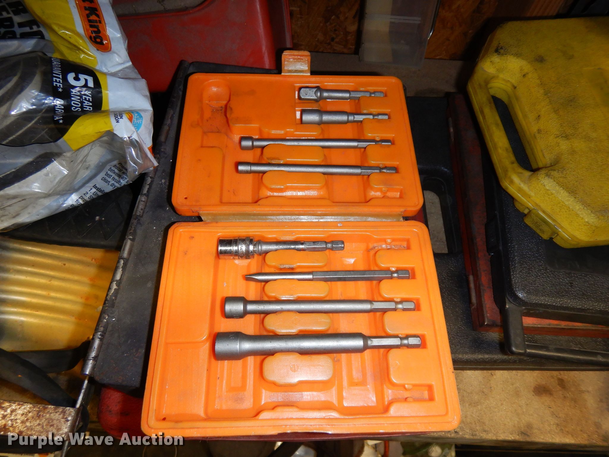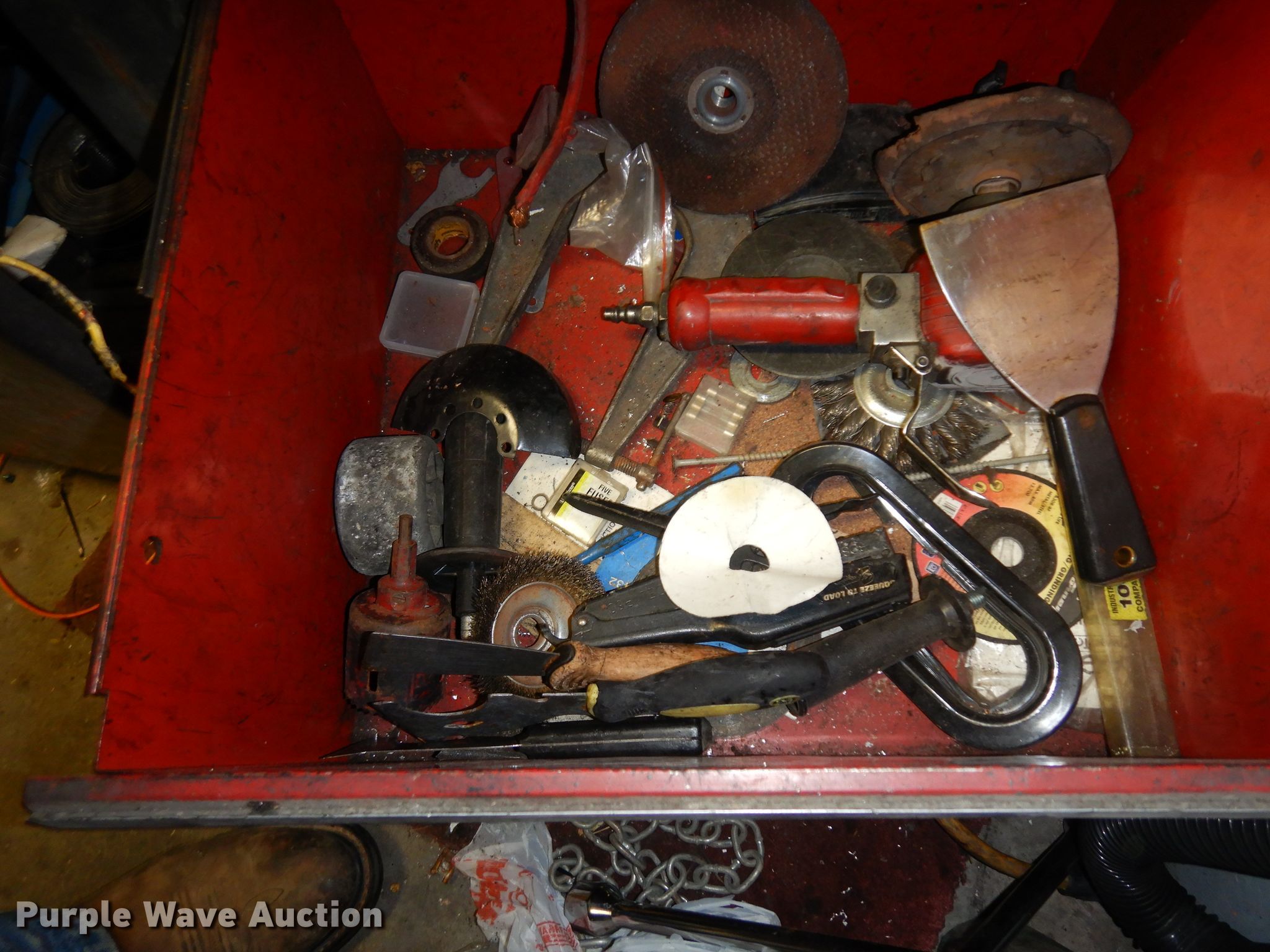 Purple Wave is selling a used Tools in Kansas. This item is a Tools with the following: US general toolbox, Assorted sockets, Drill bits, Wrenches, Torque wrenches, 1/2" air impact, Air chisel, Screwdrivers, Hand saws, AC testing gauges, Trim and molding tool set, Cable ties, Bench vise, Levels, Bolt cutters, Claw hammers, Grease guns, Electric drills, 1" drive air impact, Poulan chainsaw, Milwaukee electric reciprocating saw, Terminal connector kit, Hose clamps, Chicago electric winch, 2,000 lbs capacity, Wired remote, Electric angle grinder, Craftsman toolbox, Pipe wrenches, Crescent wrenches, Impact sockets, Ramps, Work lights, Fall arrestors, T-handle hex key set, Creeper