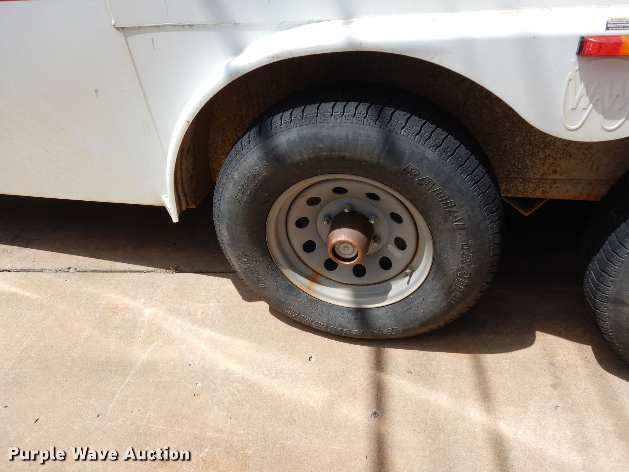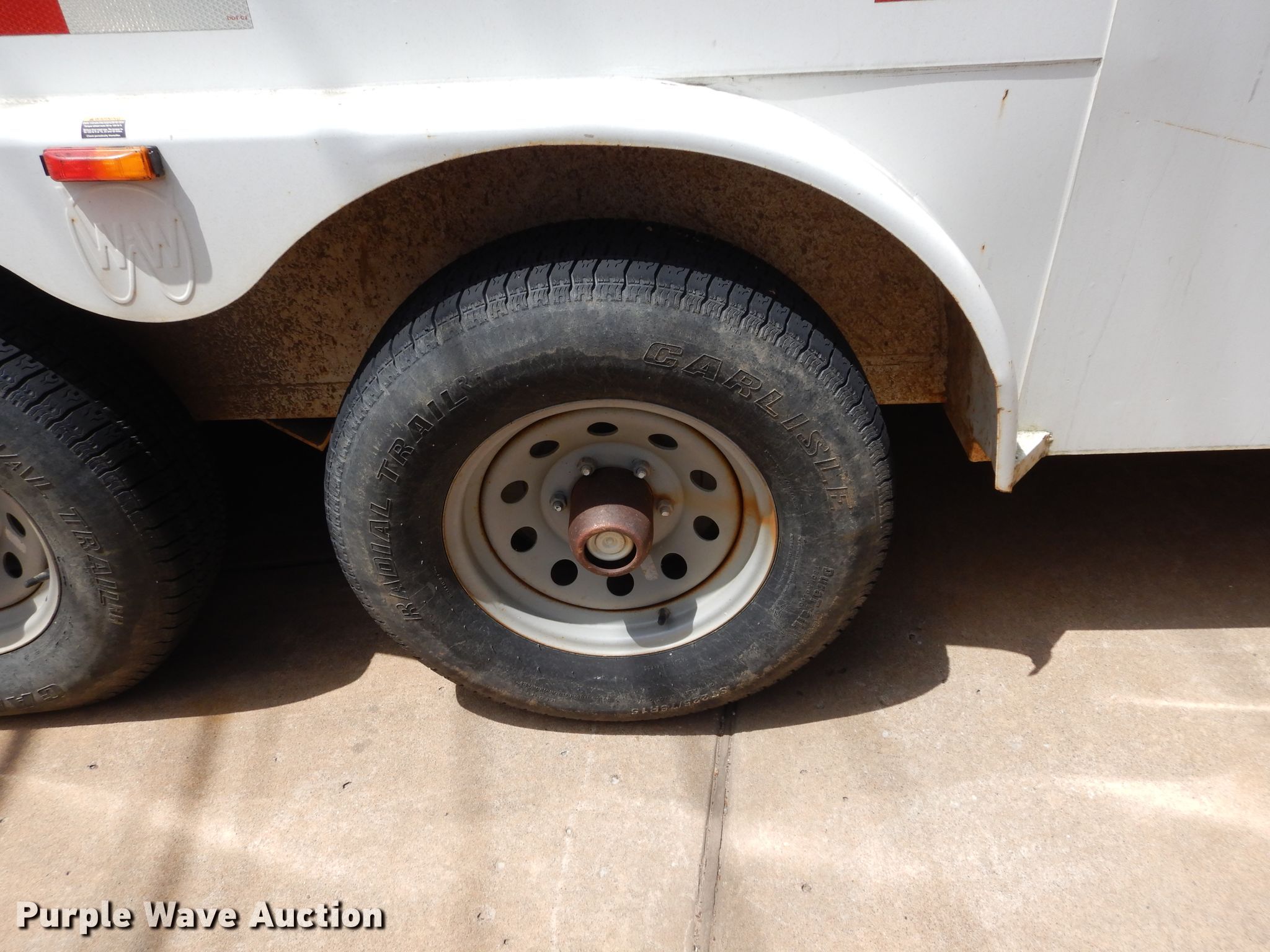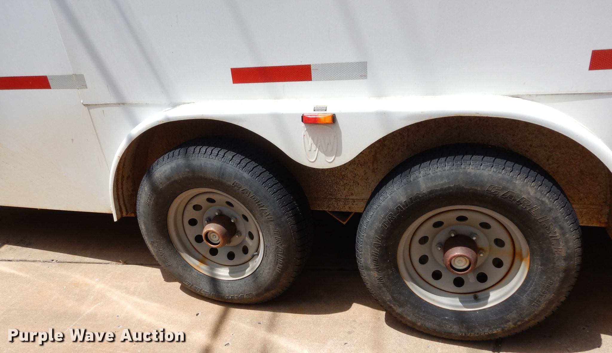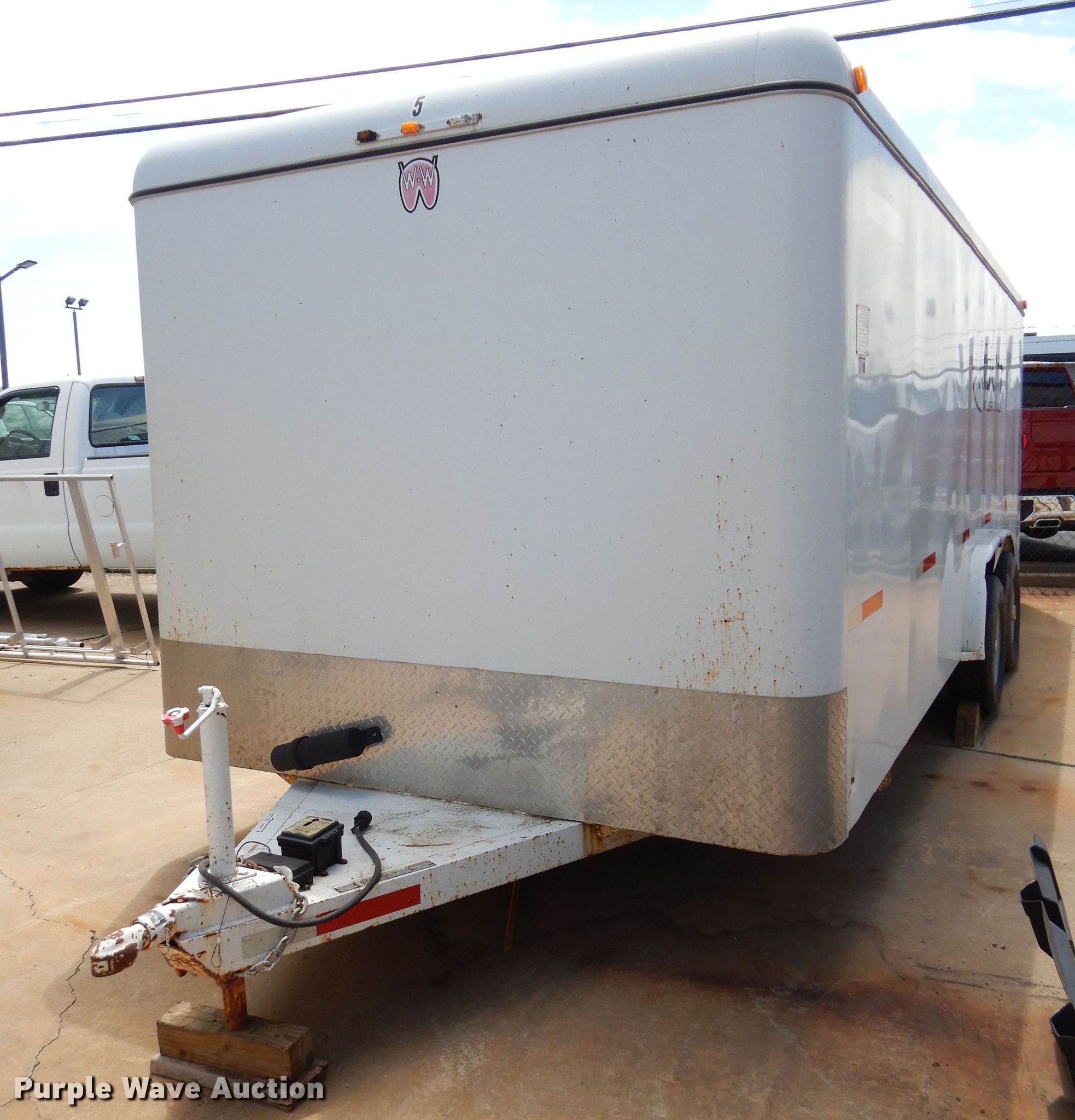 Purple Wave is selling a used Enclosed Cargo Trailer in Oklahoma. This item is a 2013 WW enclosed cargo trailer with the following: 24'L overall, 20'L x 7'W body, Wood deck, Spring suspension, Tandem axle, 225/75R15 tires, GVWR 10,000 lbs