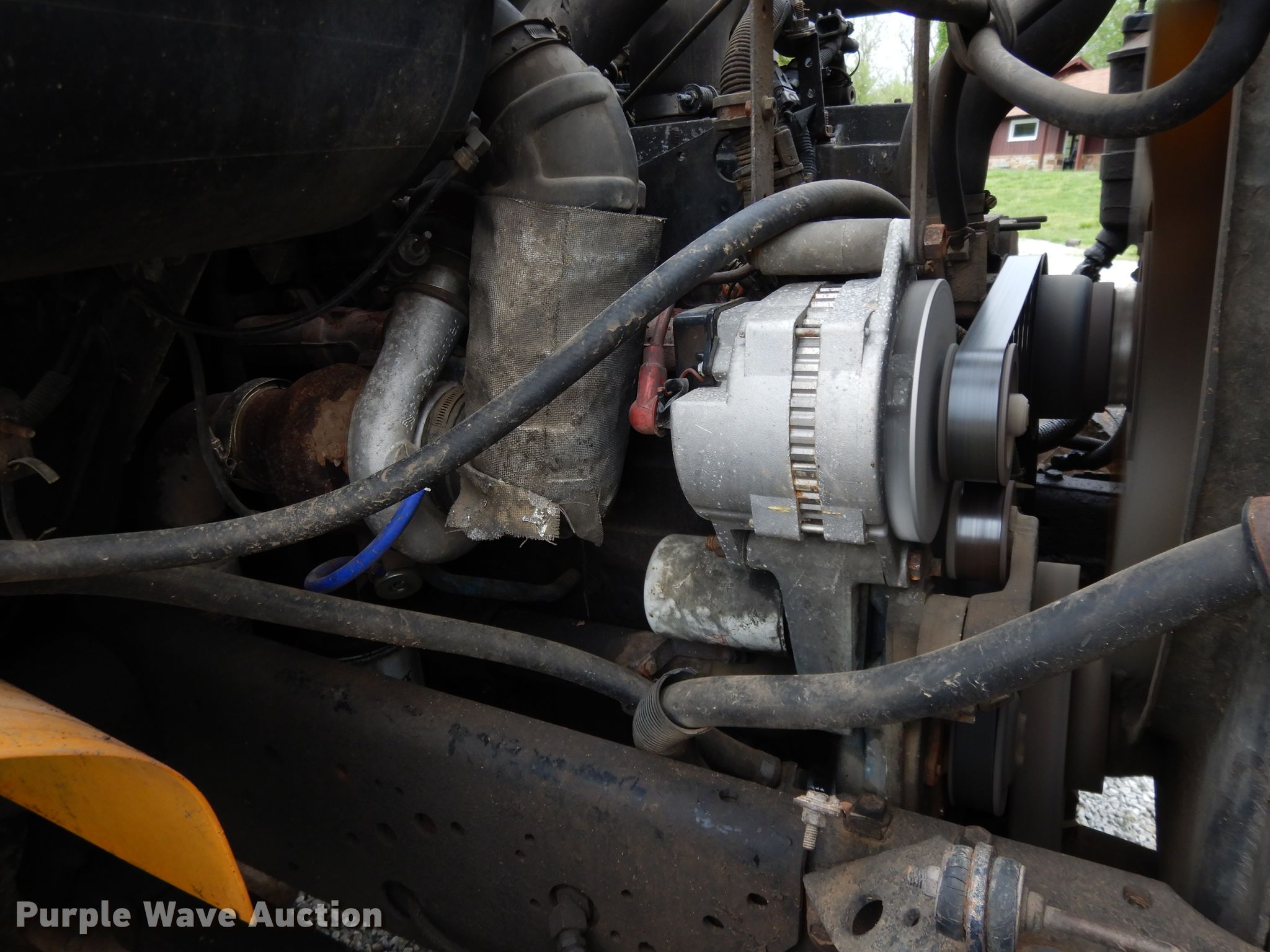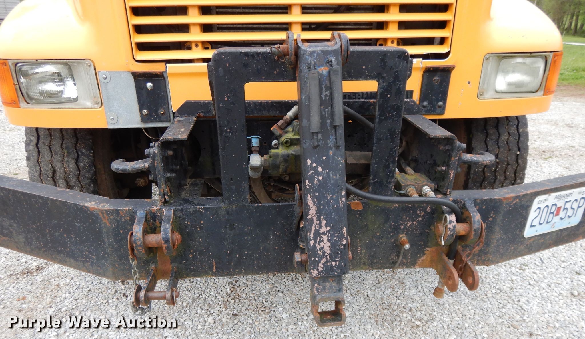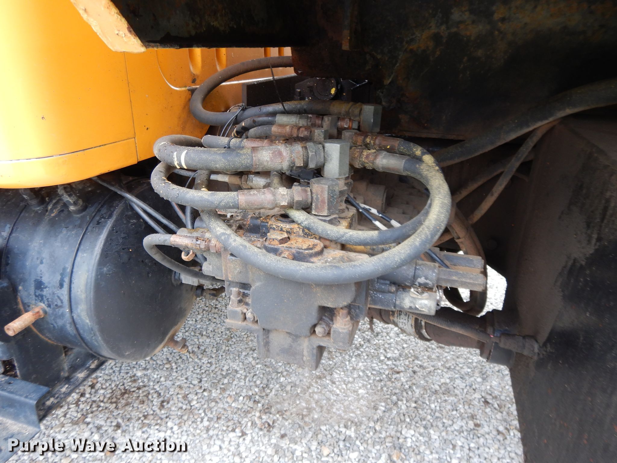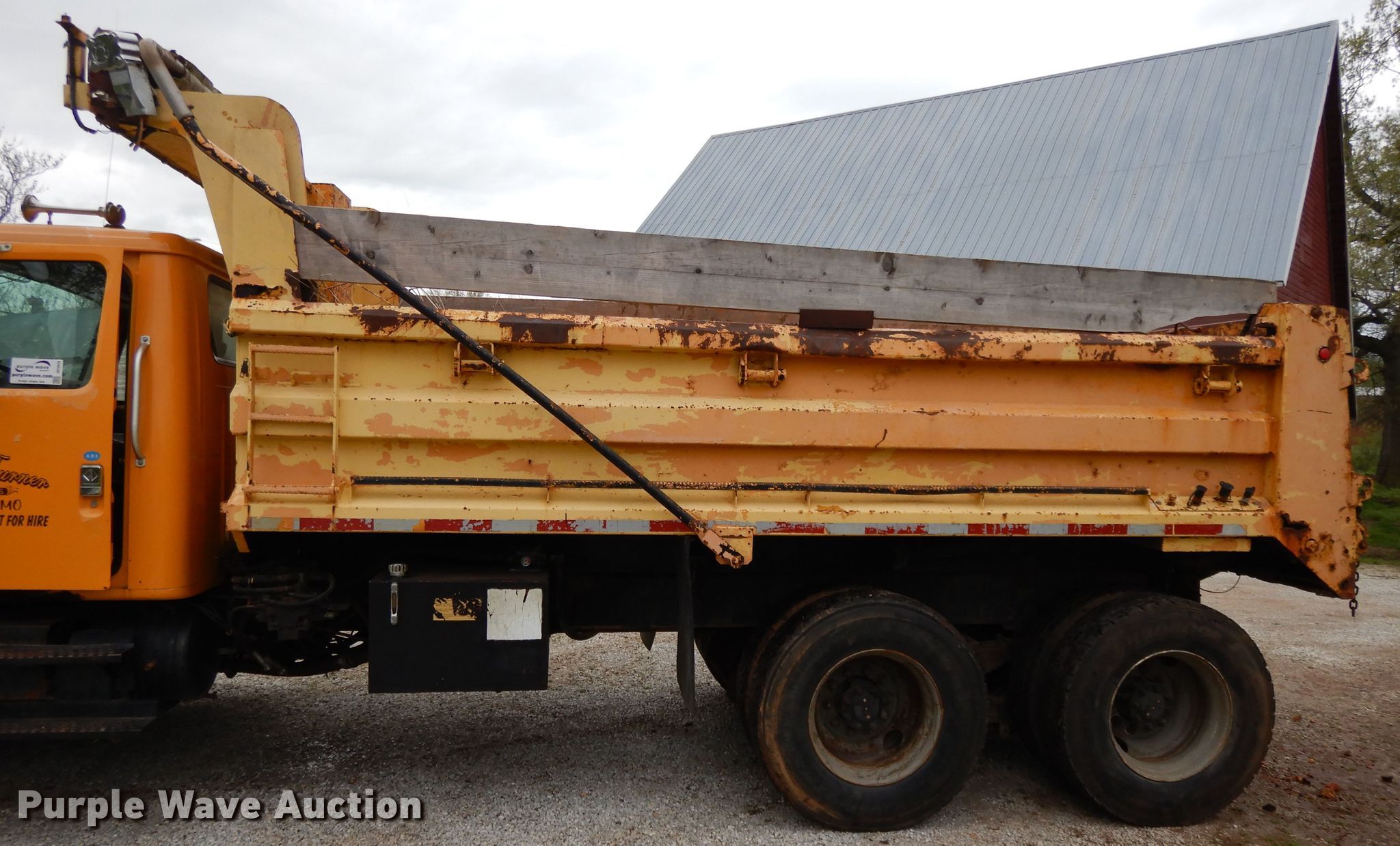 Purple Wave is selling a used Construction Dump Truck in Missouri. This item is a 2000 International 4900 dump truck with the following: 201,314 miles on odometer, 9,978 hours on meter, International 530 8.7L L6 diesel engine, Eight speed manual transmission, Tandem axle, Inter-axle differential lock, Heat, Front mounted PTO, McClain GAlion 502FT steel dump bed, 16'L x 96"W, 34" side height, 12" side board height, Single ram hoist, Manual operated end gate, Roll tarp, Spring suspension, Air brakes, 206" wheelbase, 315/80R22.5 front tires, 11R22.5 rear tires, ABS light on, Water in oil
