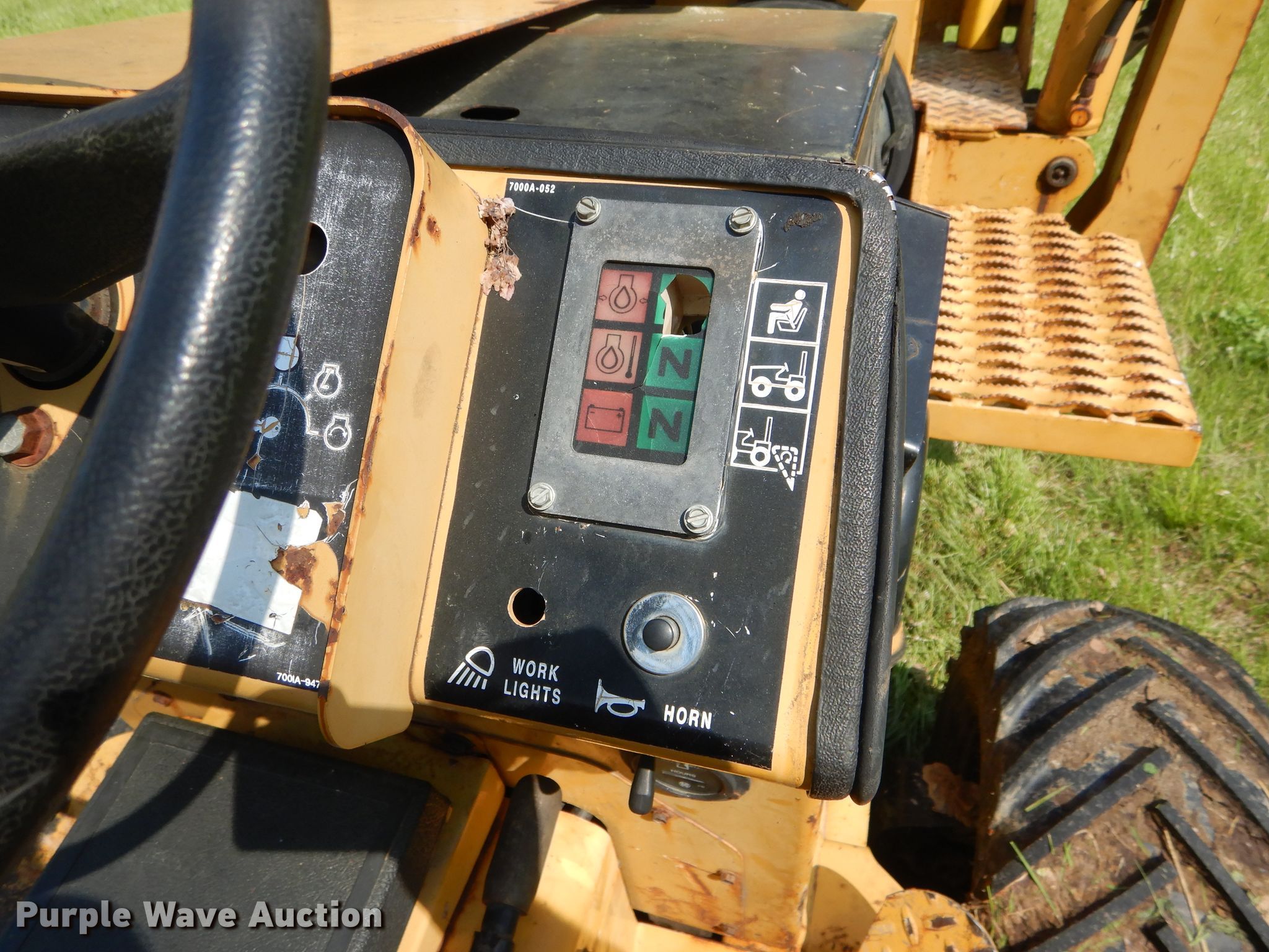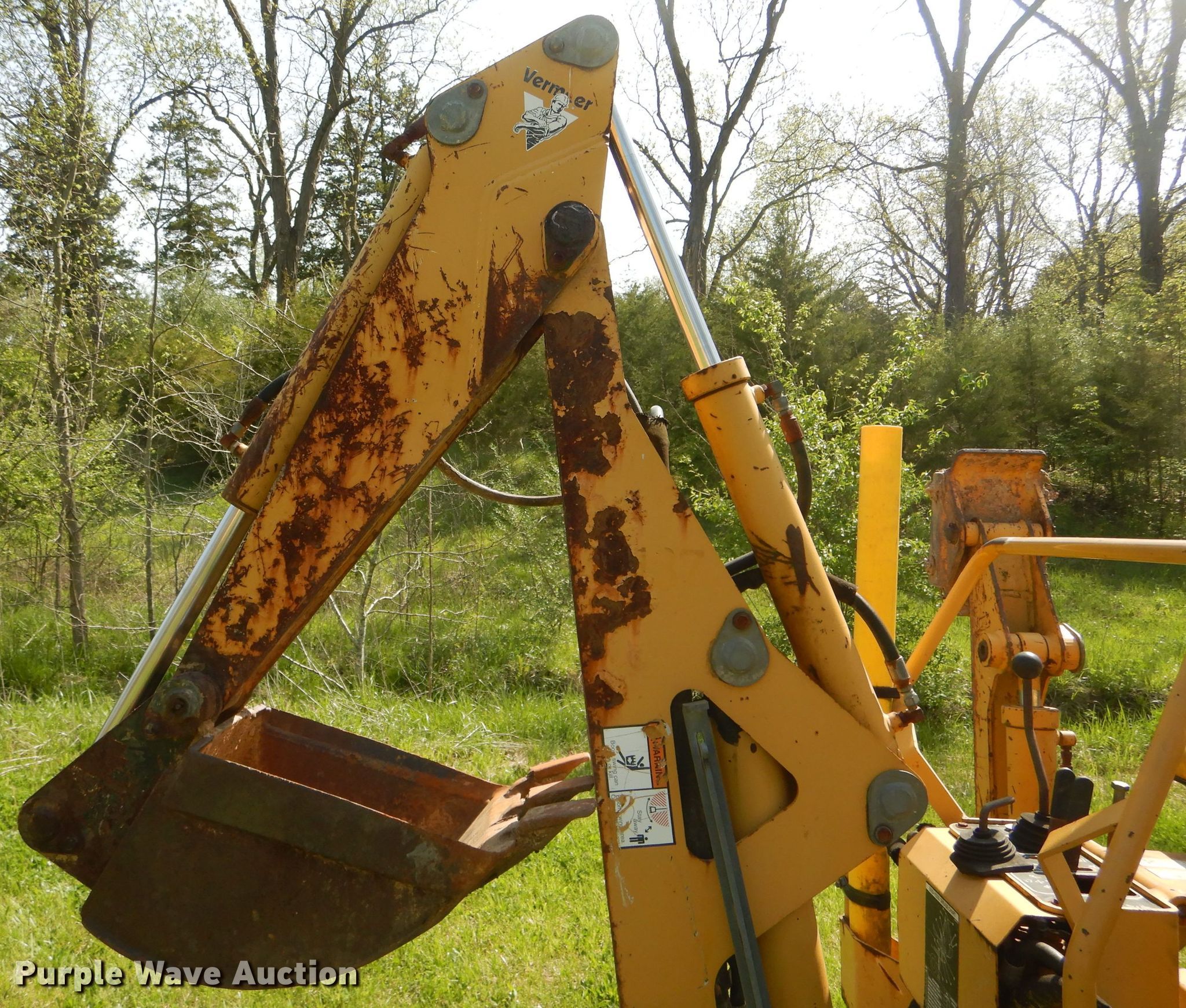Purple Wave is selling a used Cable Plow in Missouri. This item is a 2000 Vermeer V3550A cable plow with the following: 2,386 hours on meter, Hours may vary, unit still in use, Deutz three cylinder diesel engine, Hydrostatic transmission, Four wheel drive, Six-way backfill blade, Vibratory plow model VP3550, 24" digging depth, Serial 1VRP050M5Y1000192, Backhoe model B500, 12"W bucket, Serial 1VRM040M311001192, 26 x 12.00-12 tires, Serial 1VRS072P0Y1001568
