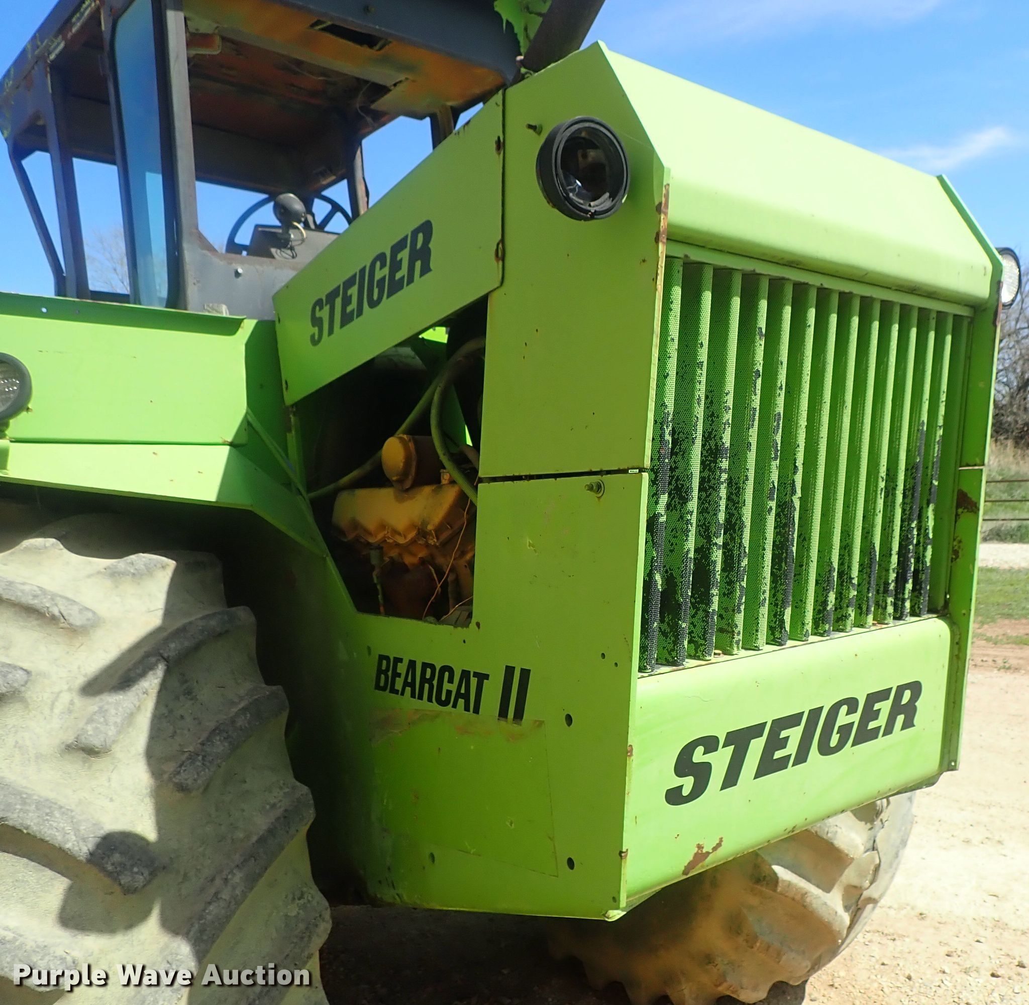 Purple Wave is selling a used Articulated 4-Wheel Drive Tractor in Kansas. This item is a Steiger Bearcat II 4WD tractor with the following: 3,310 hours on meter, Caterpillar 3208 10.4L eight cylinder diesel engine, Manual transmission, 10F-2R gears, (2) rear hydraulic remotes, 30.5-32 tires, Cab bent, Dead battery, Serial 55061