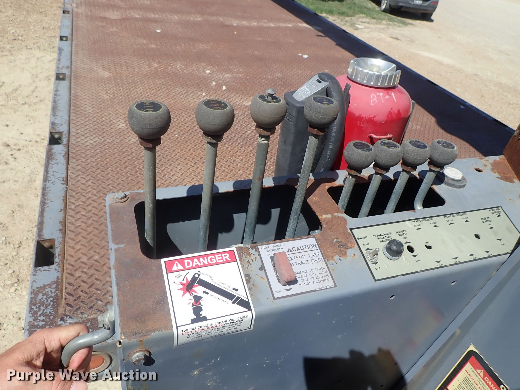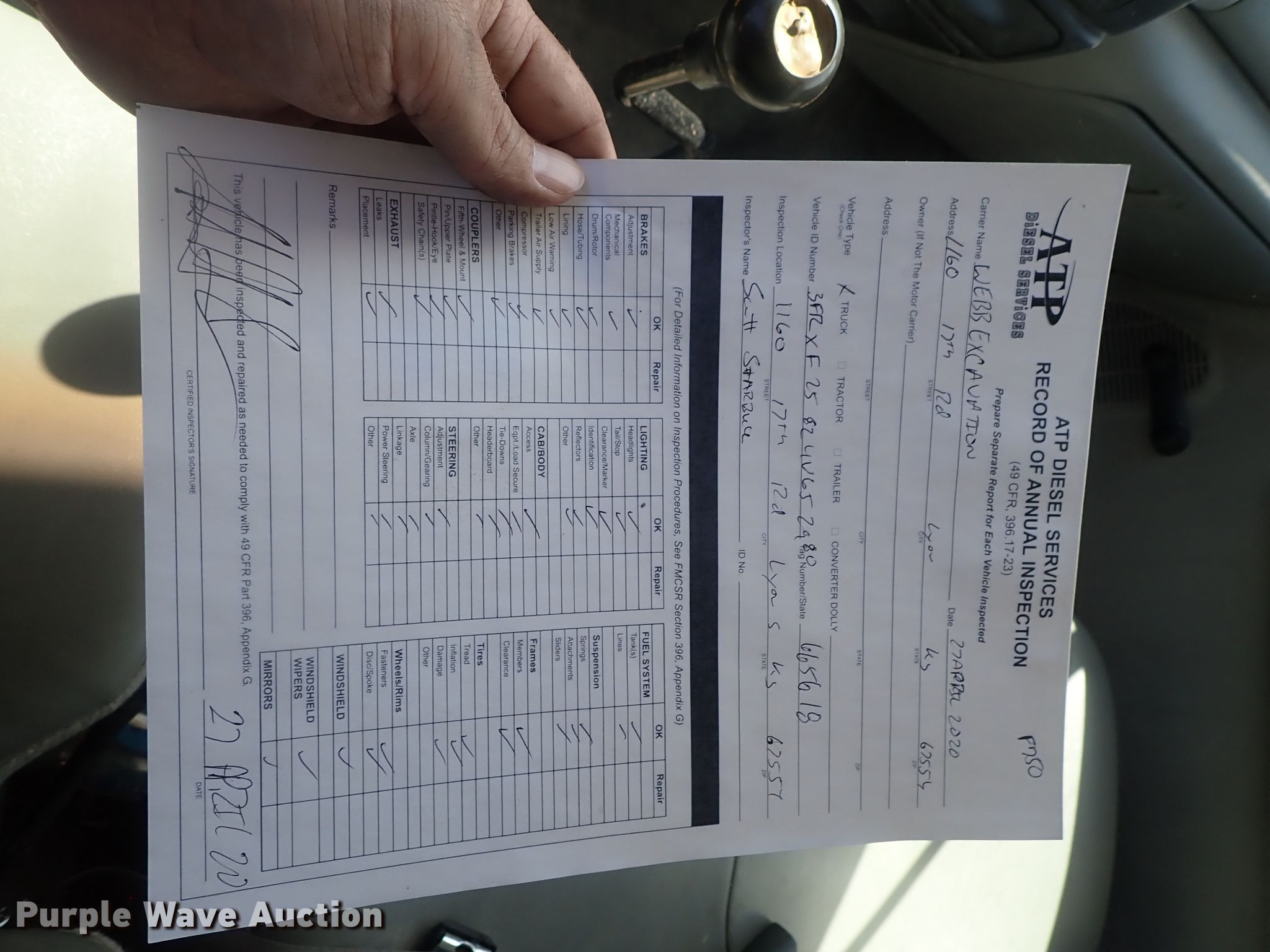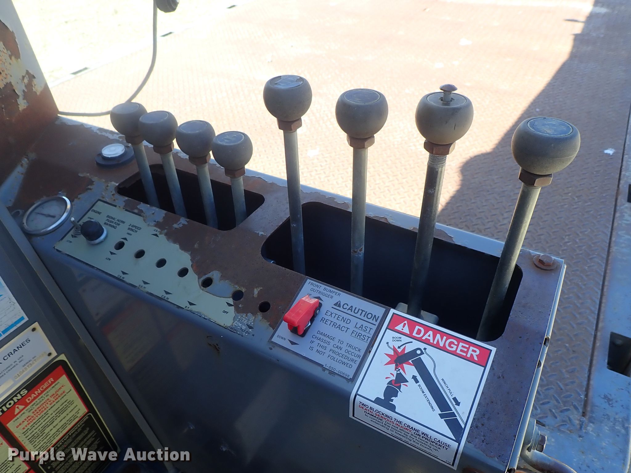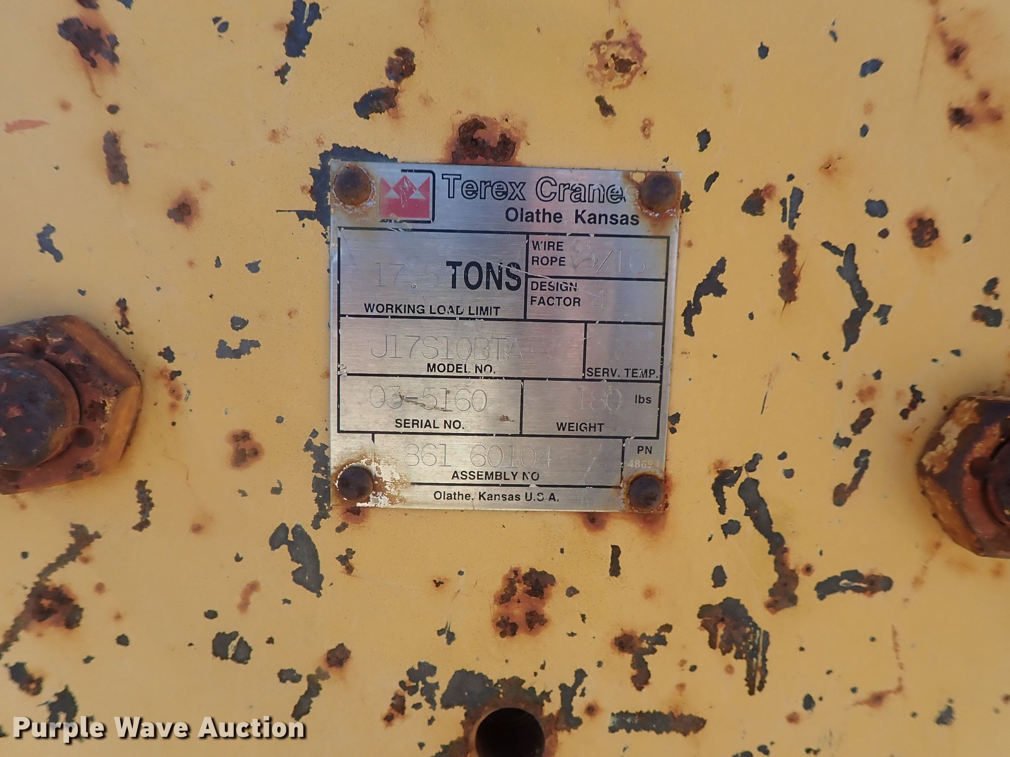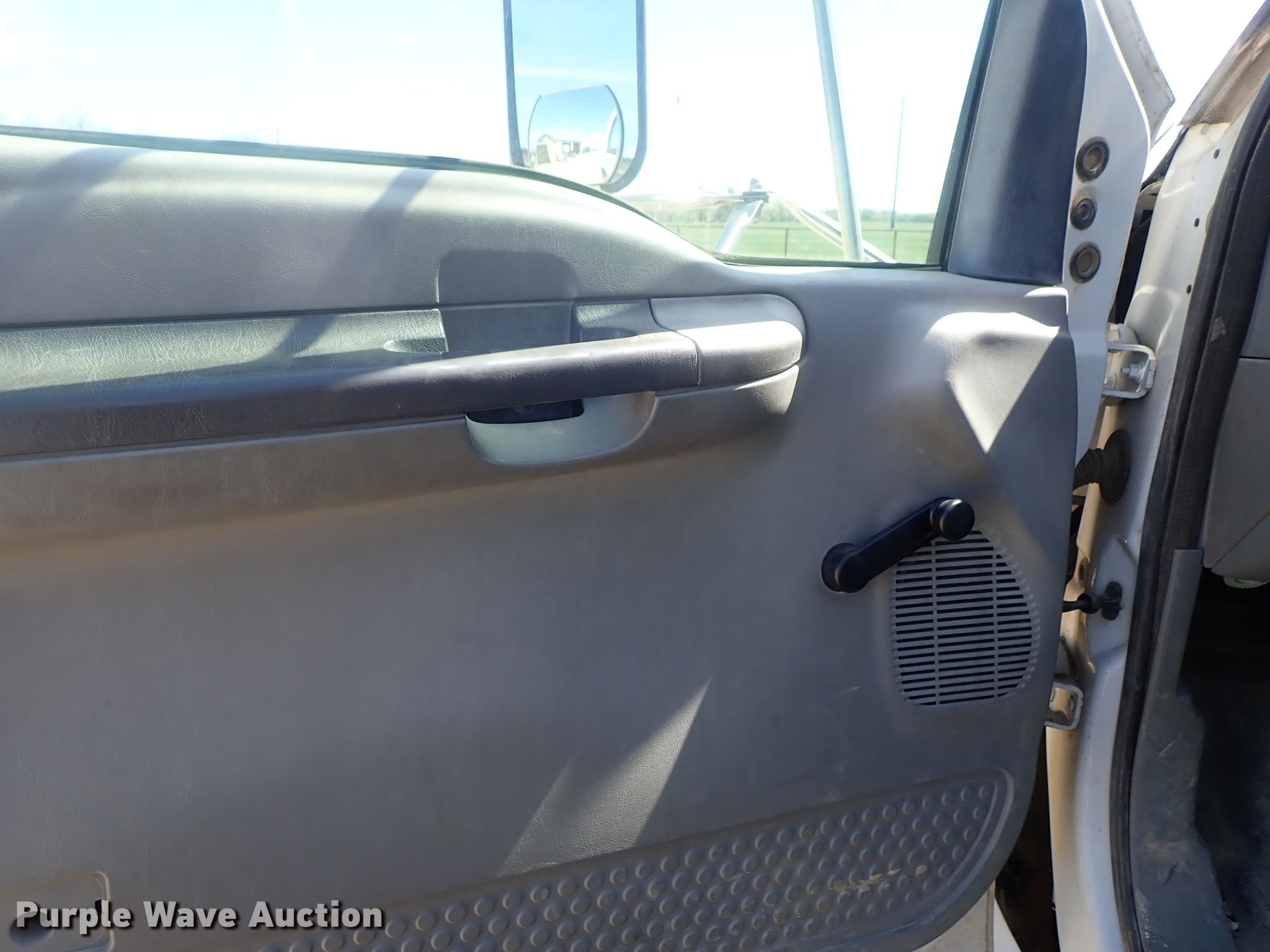 Purple Wave is selling a used Crane Truck in Kansas. This item is a 2004 Ford F750 crane truck with the following: 31,372 miles on odometer, Caterpillar 3126 7.2L L6 diesel engine, Six speed manual transmission, Single axle, AC and heat, PTO, 20'L flatbed, Terex BT-3470 telescopic boom, 70' boom length, 34,000 lbs maximum lift capacity, Ground boom controls, Crane block, Lift chart, Serial 0104BT3470585, Spring suspension, Air brakes, 11R22.5 tires, GVWR 33,000 lbs