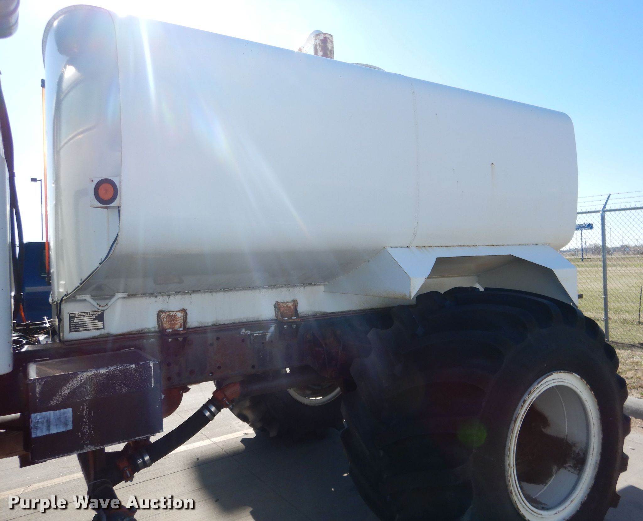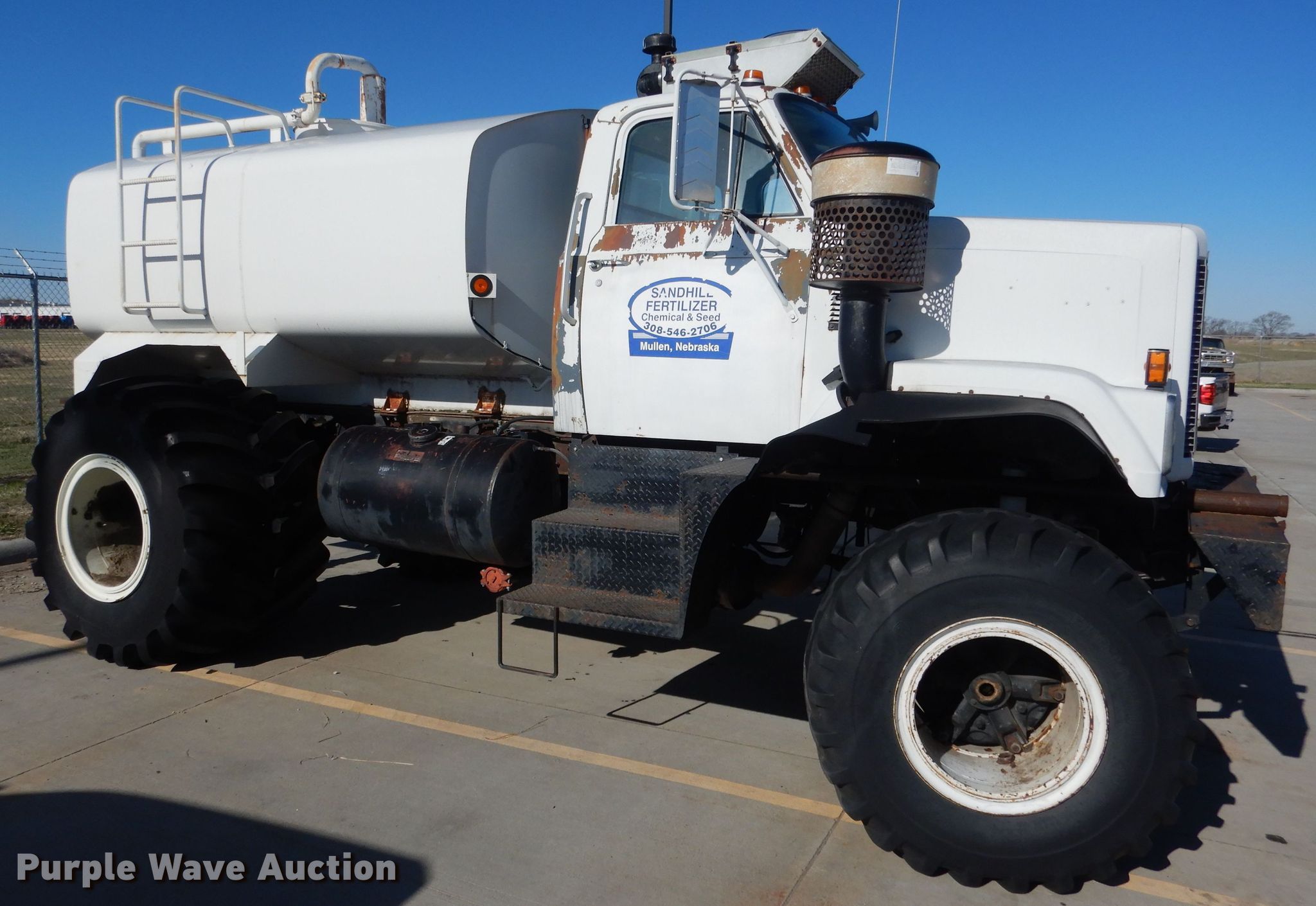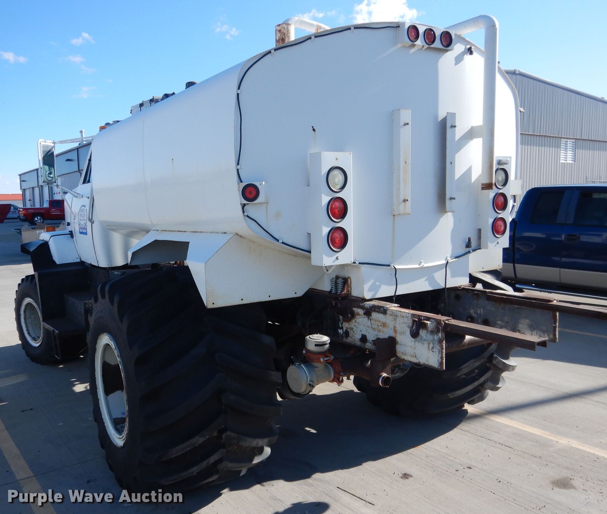 Purple Wave is selling a used Tank Truck or Water Truck in Nebraska. This item is a 1984 GMC Brigadier tank truck with the following: 69,484 miles on odometer, Detroit Diesel 671 C.I.D. six cylinder diesel engine, Automatic transmission, Single axle, AC and heat, PTO, Auxiliary controls, 9'L tank, 2,000 gallon capacity, Front and rear spray bar, Side discharge, Top fill, Sight tube, 3" diameter rear drain, Serial SD106642K, Spring suspension, Air brakes, Firestone 48 x 25.00 front tires, Firestone 54 x 37.00-25 rear tires, No transmission, No rear differential, Drive shaft unattached, but included, Non-operational unit, Unit must be towed or hauled
