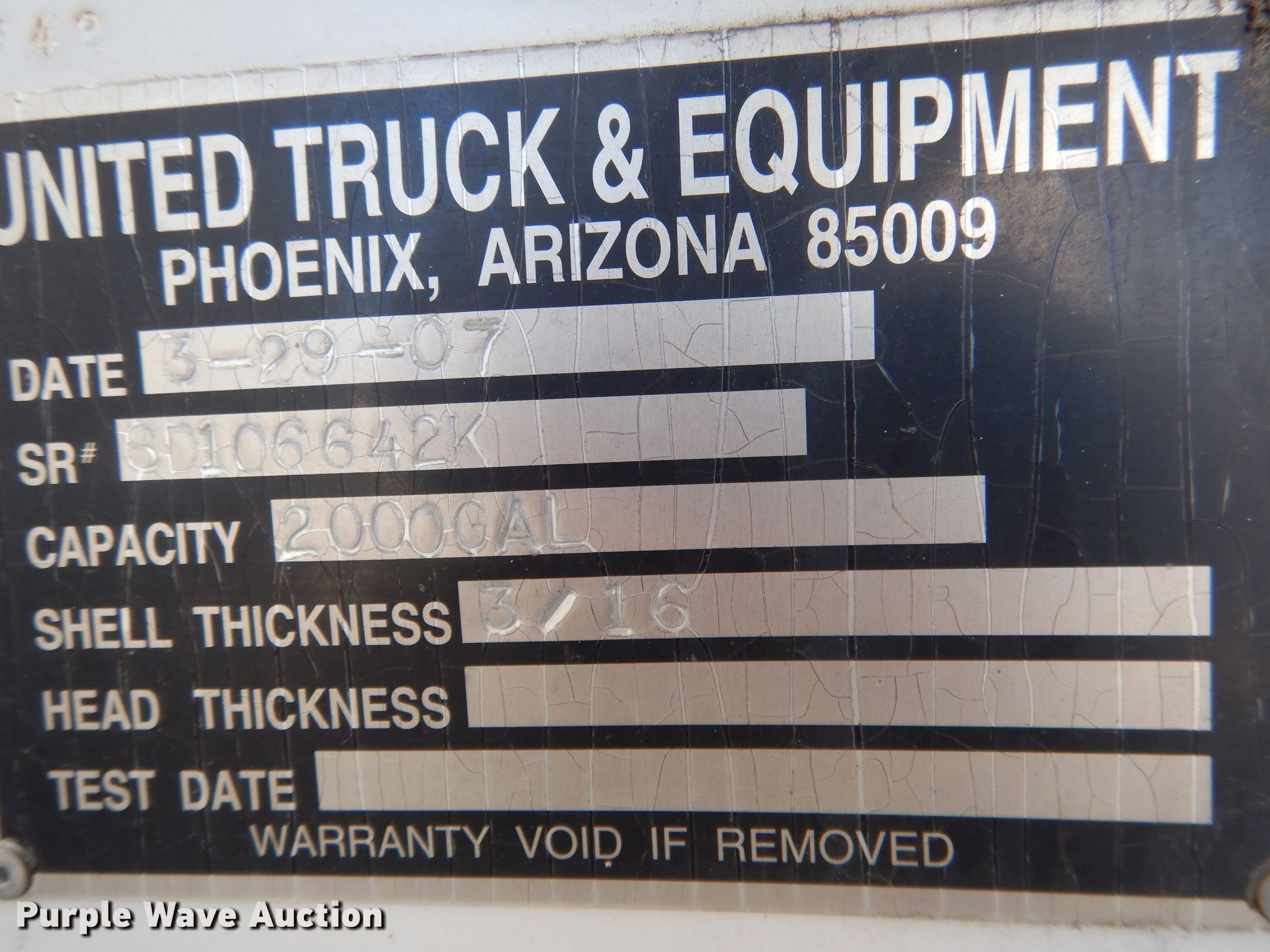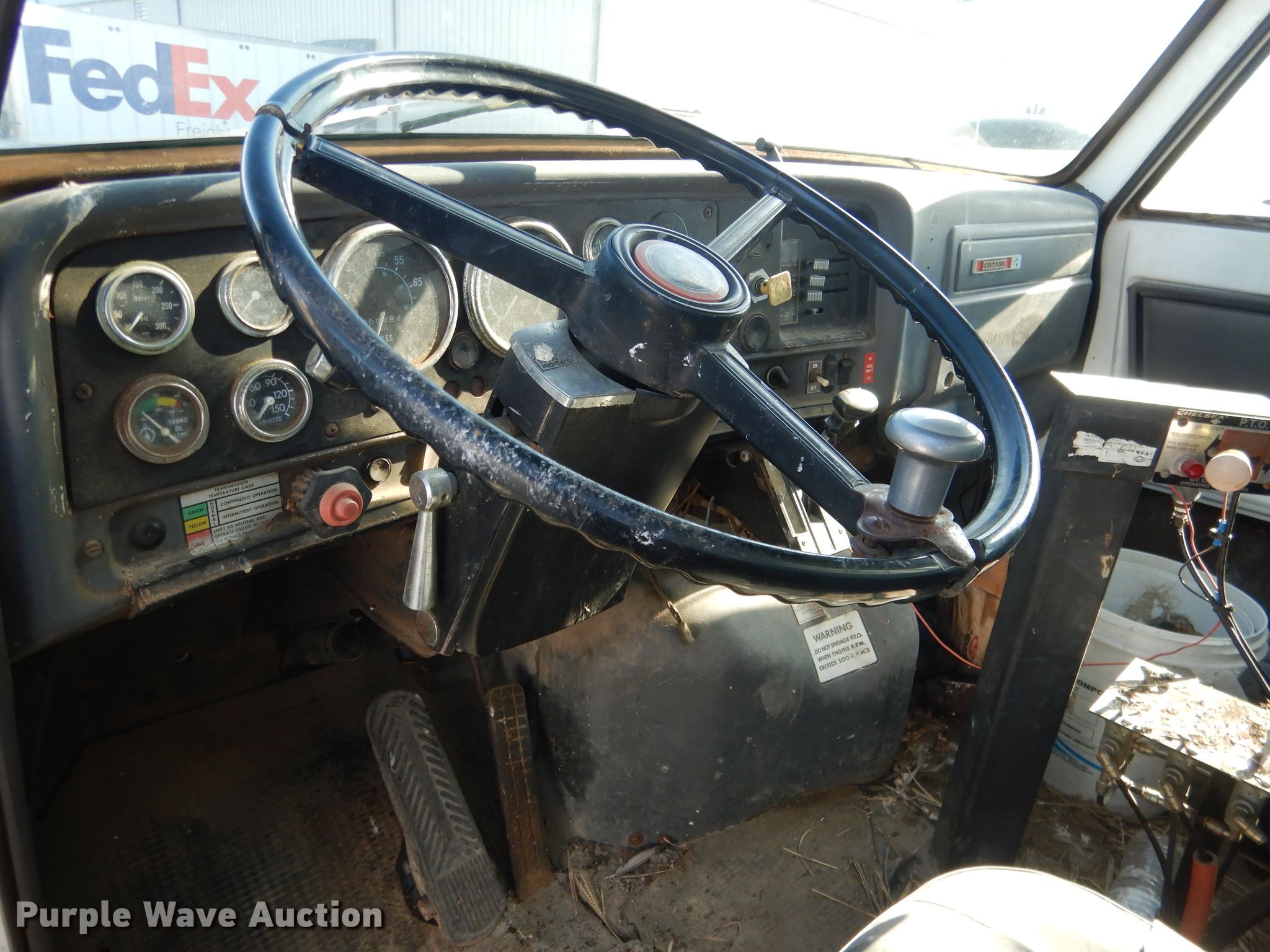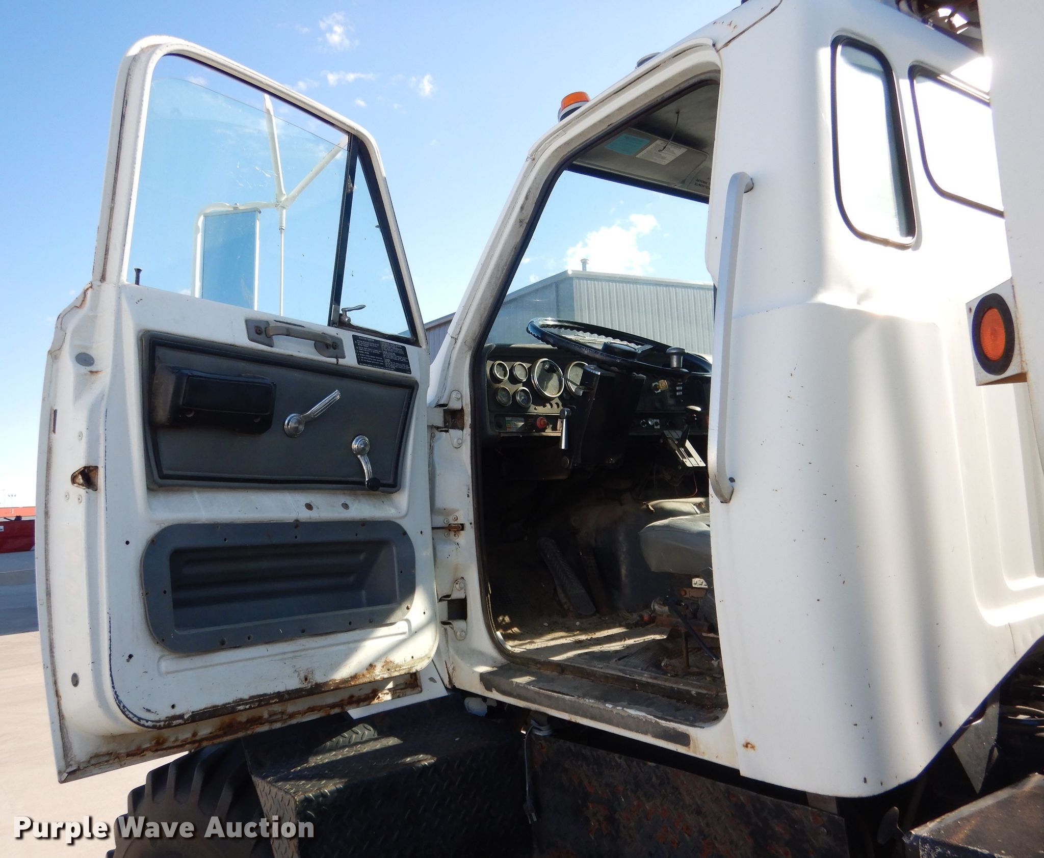 Purple Wave is selling a used Tank Truck or Water Truck in Nebraska. This item is a 1984 GMC Brigadier tank truck with the following: 69,484 miles on odometer, Detroit Diesel 671 C.I.D. six cylinder diesel engine, Automatic transmission, Single axle, AC and heat, PTO, Auxiliary controls, 9'L tank, 2,000 gallon capacity, Front and rear spray bar, Side discharge, Top fill, Sight tube, 3" diameter rear drain, Serial SD106642K, Spring suspension, Air brakes, Firestone 48 x 25.00 front tires, Firestone 54 x 37.00-25 rear tires, No transmission, No rear differential, Drive shaft unattached, but included, Non-operational unit, Unit must be towed or hauled