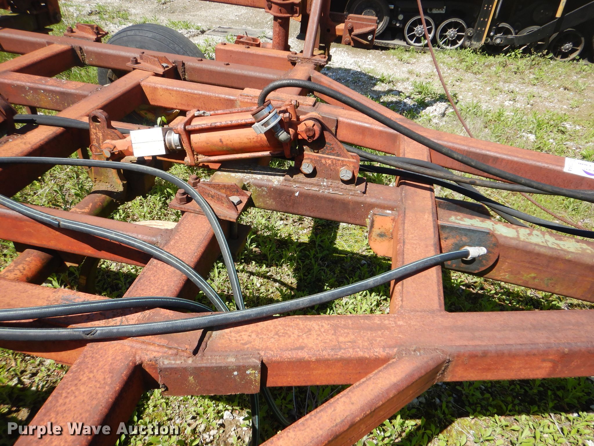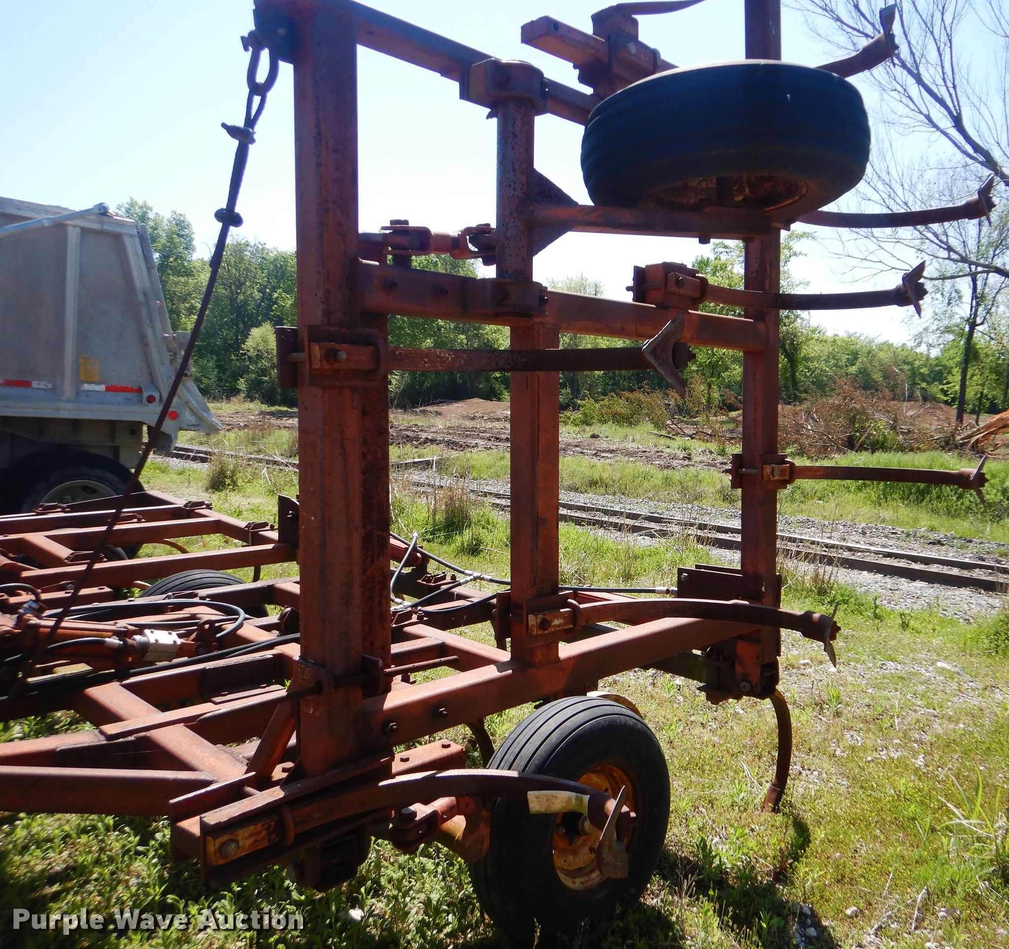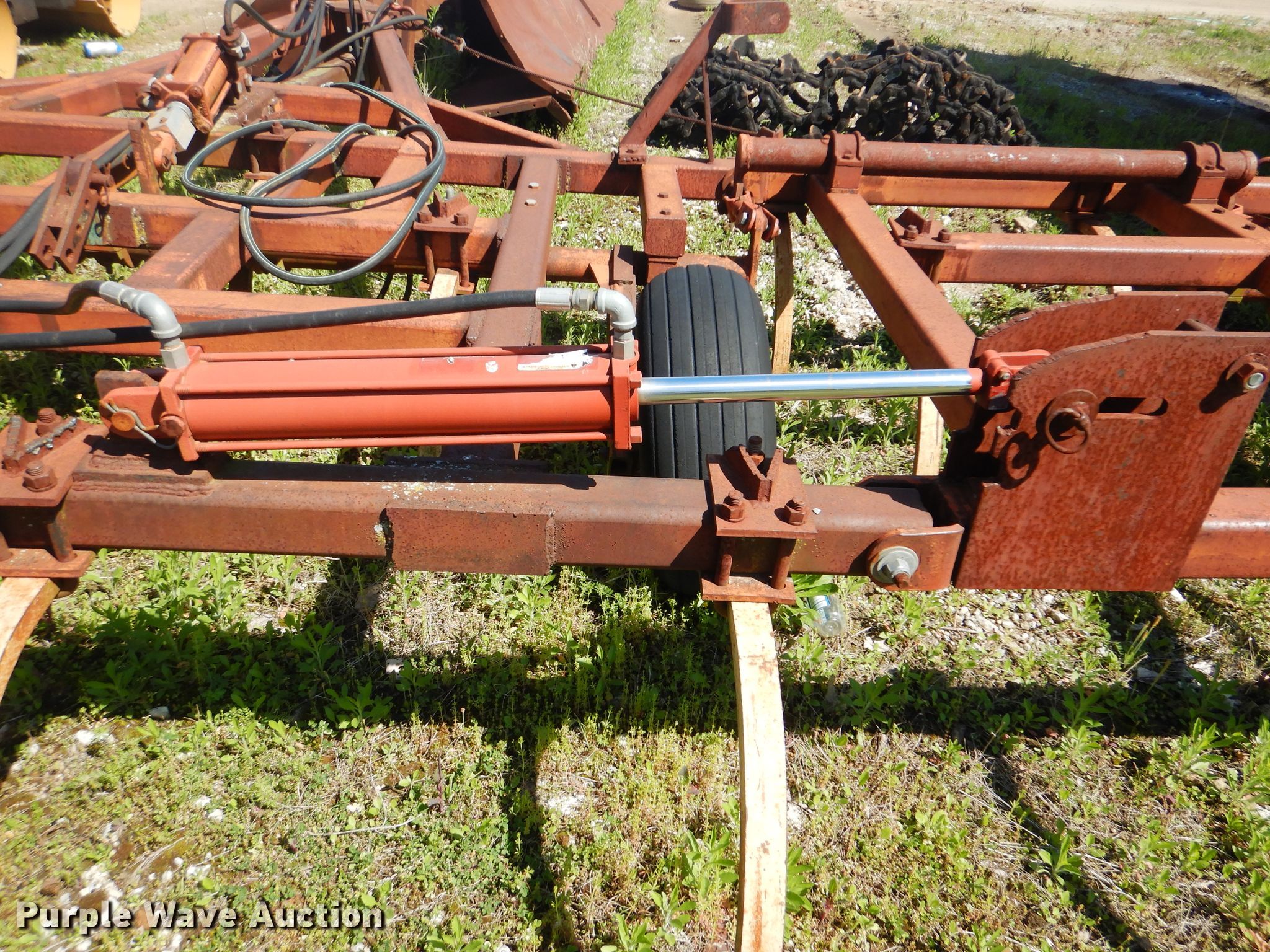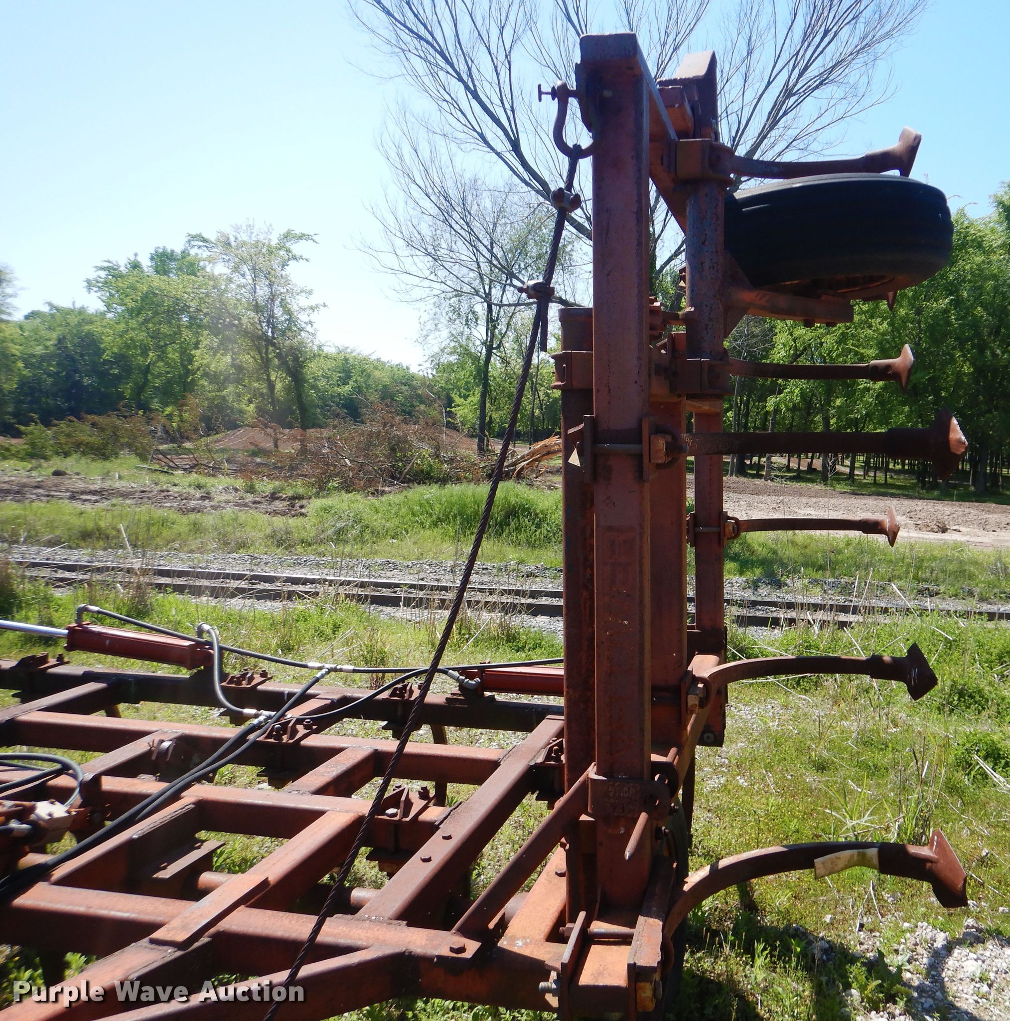 Purple Wave is selling a used Tillage Other in Oklahoma. This item is a Sunflower chisel with the following: 28' overall width, Hydraulic lift and fold, Three bar tine harrow, (22) shanks, 11L-15SL tires